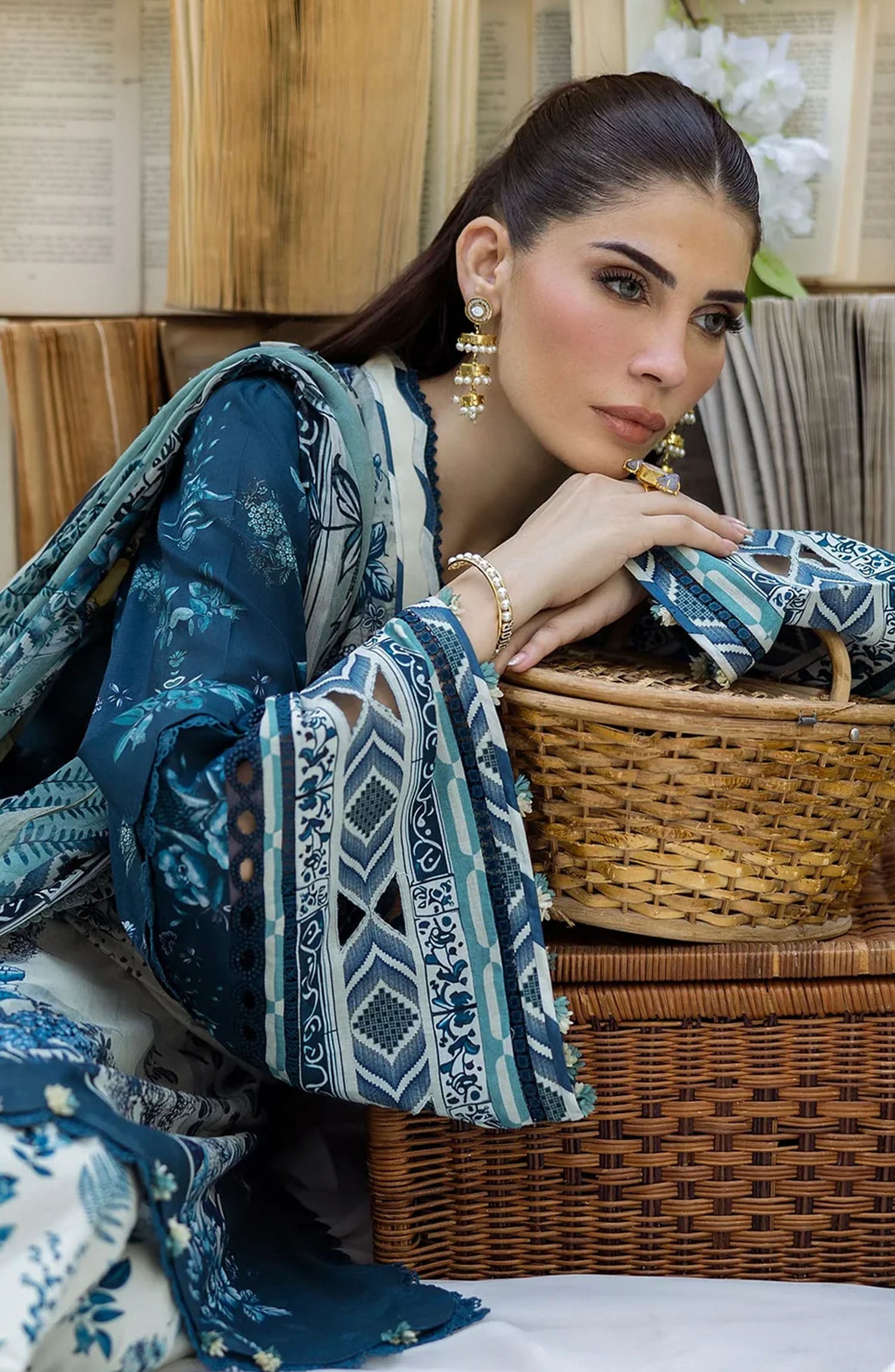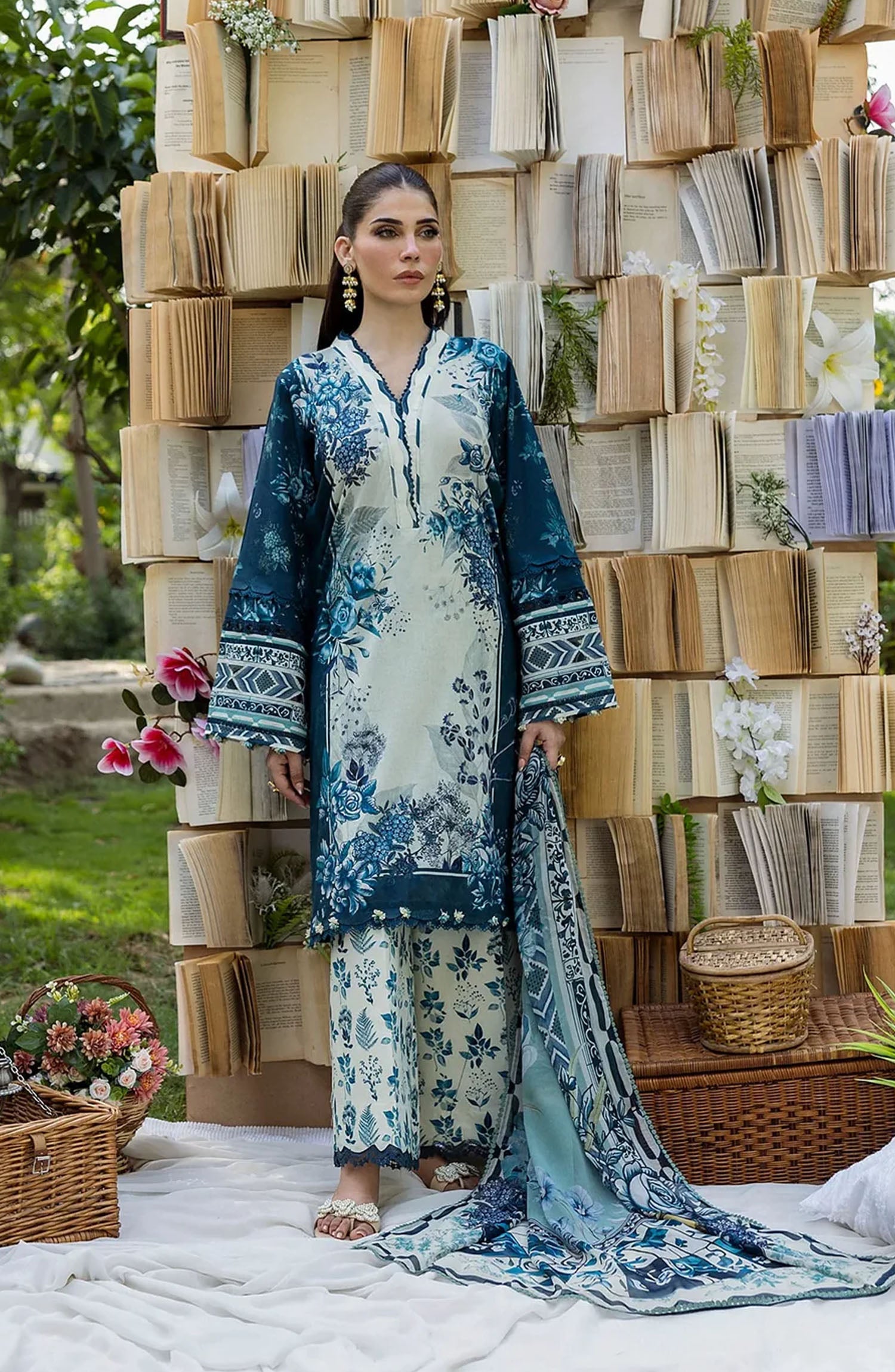 Elaf Printed Lawn Unstitched 3 Piece Suit - ECD-7A FLOREYA - EL25PRN - Blue - Summer Collection