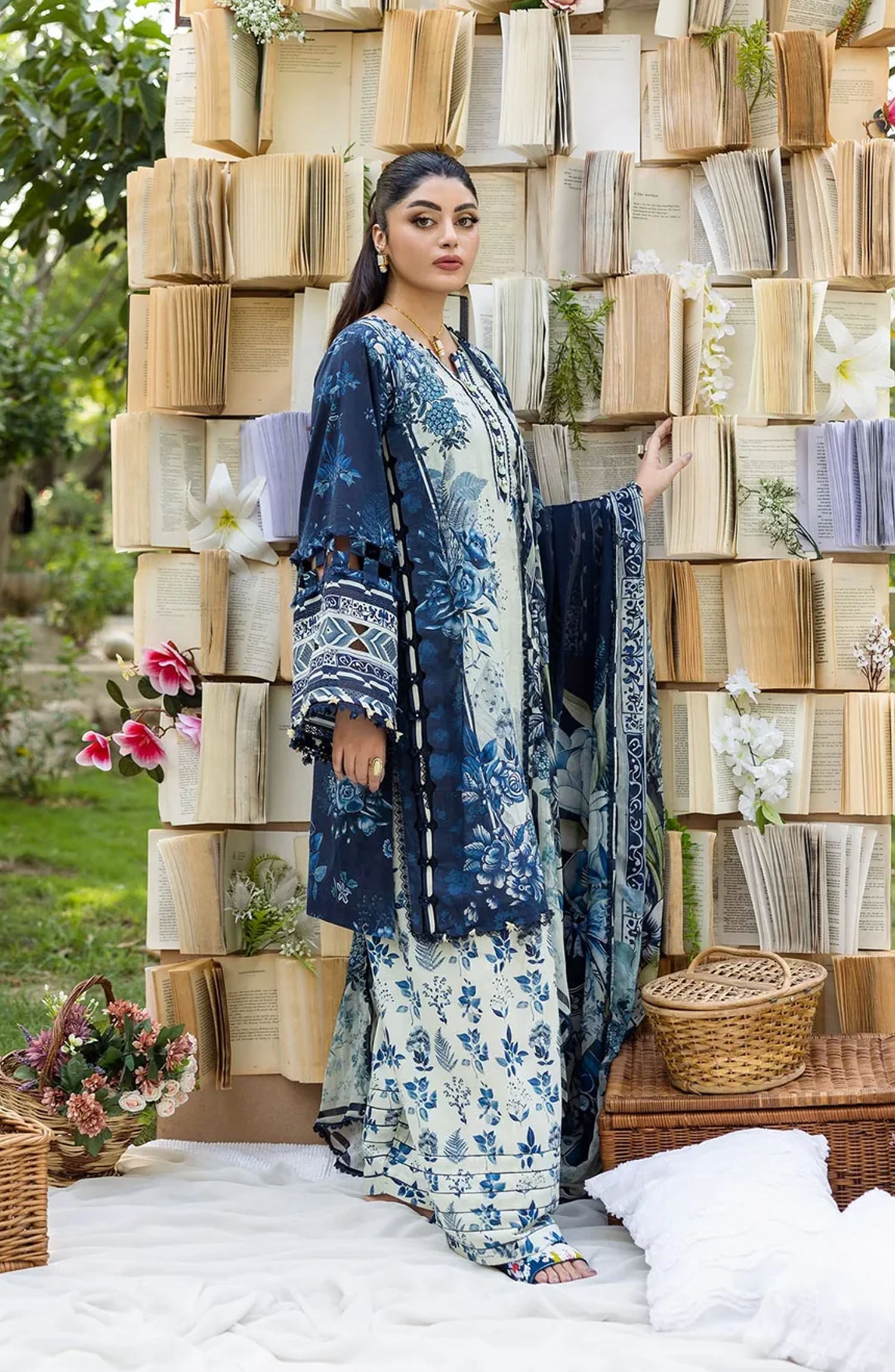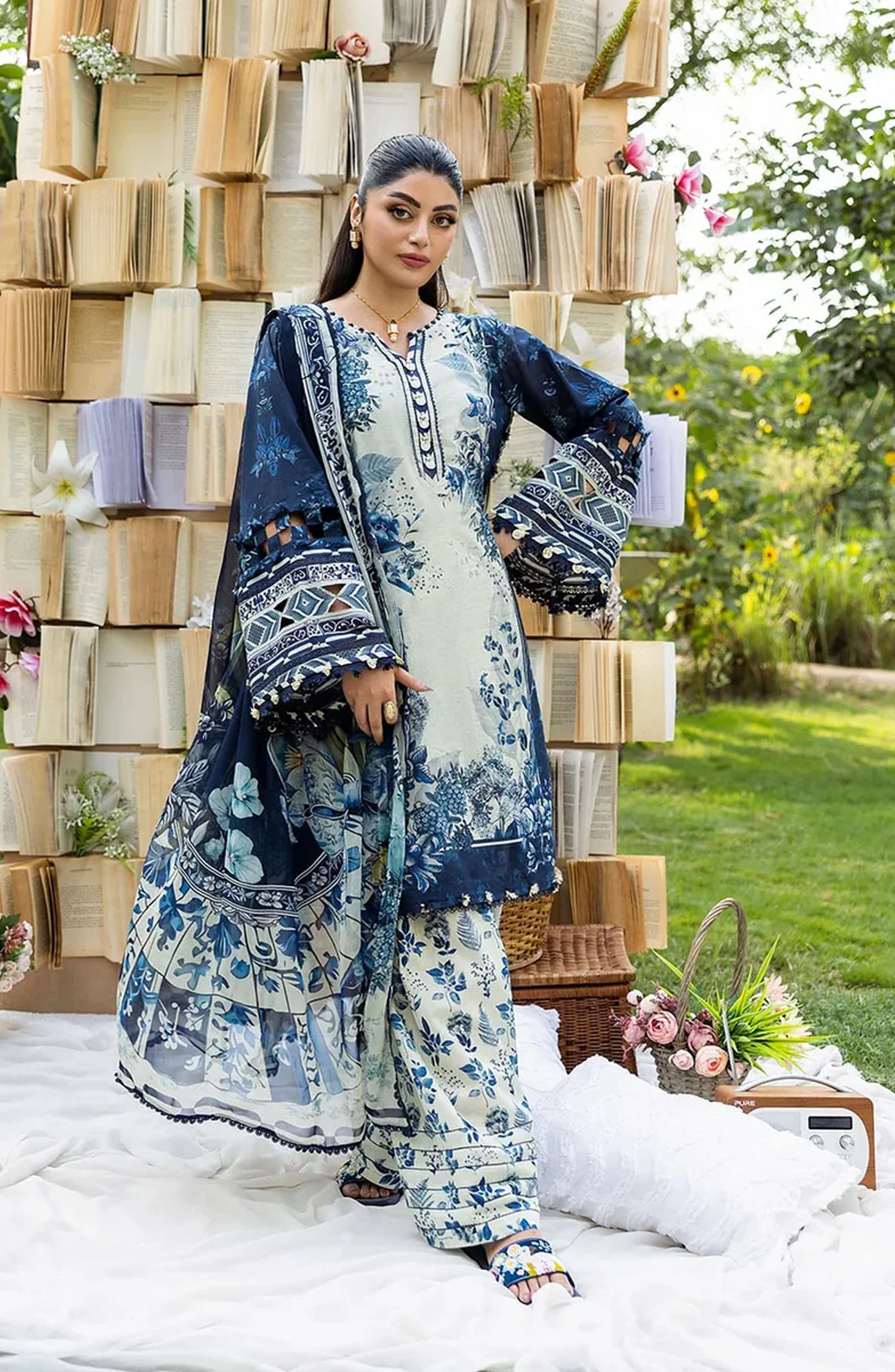 Elaf Printed Lawn Unstitched 3 Piece Suit - ECD-7B BLOOMSTELLA - EL25PRN - Blue - Summer Collection