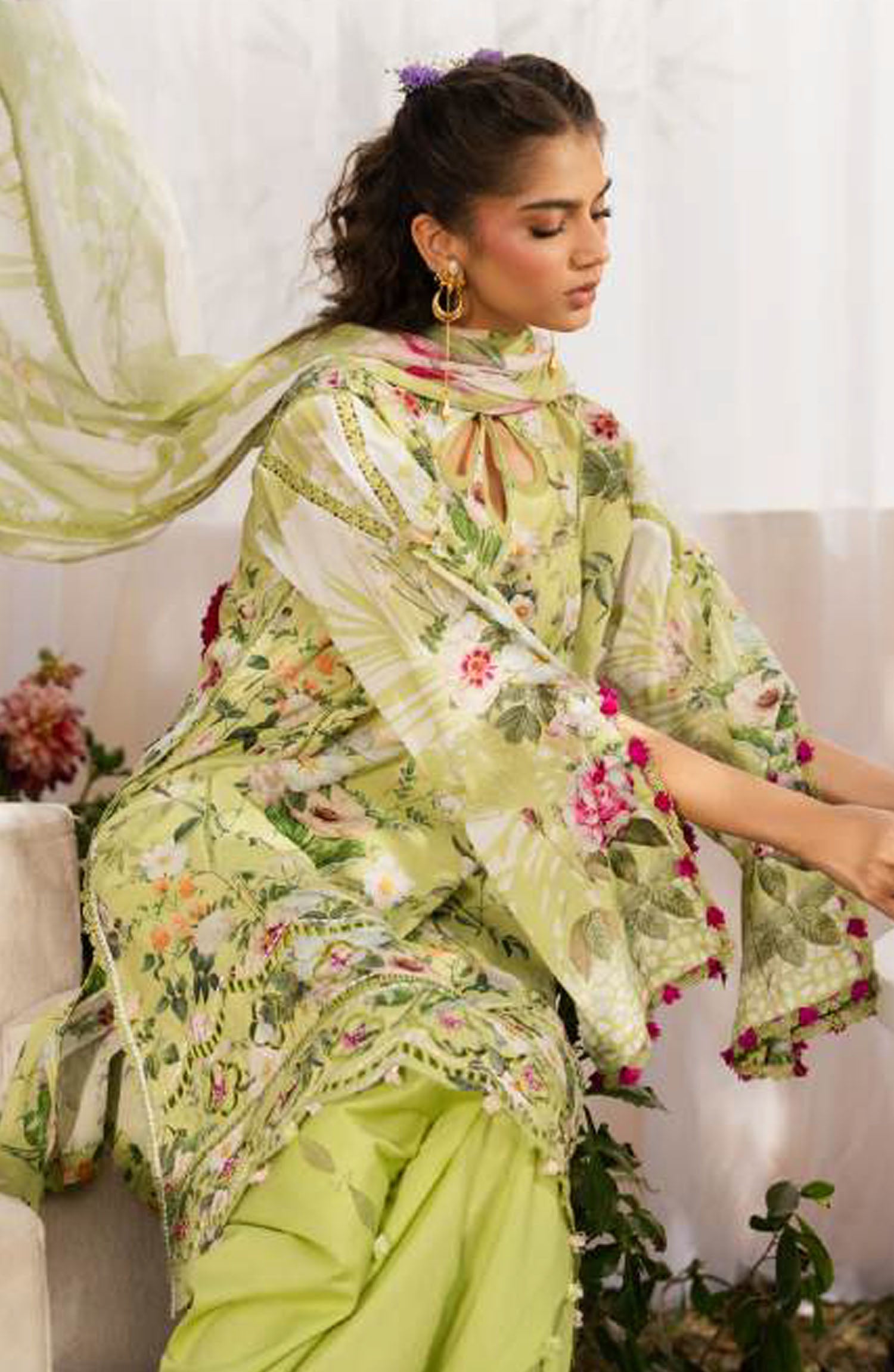 Elaf Printed Lawn Unstitched 3 Piece Suit - EPS-5A LUSH RADIANCE - EL25ELPV2 - Green - Summer Collection