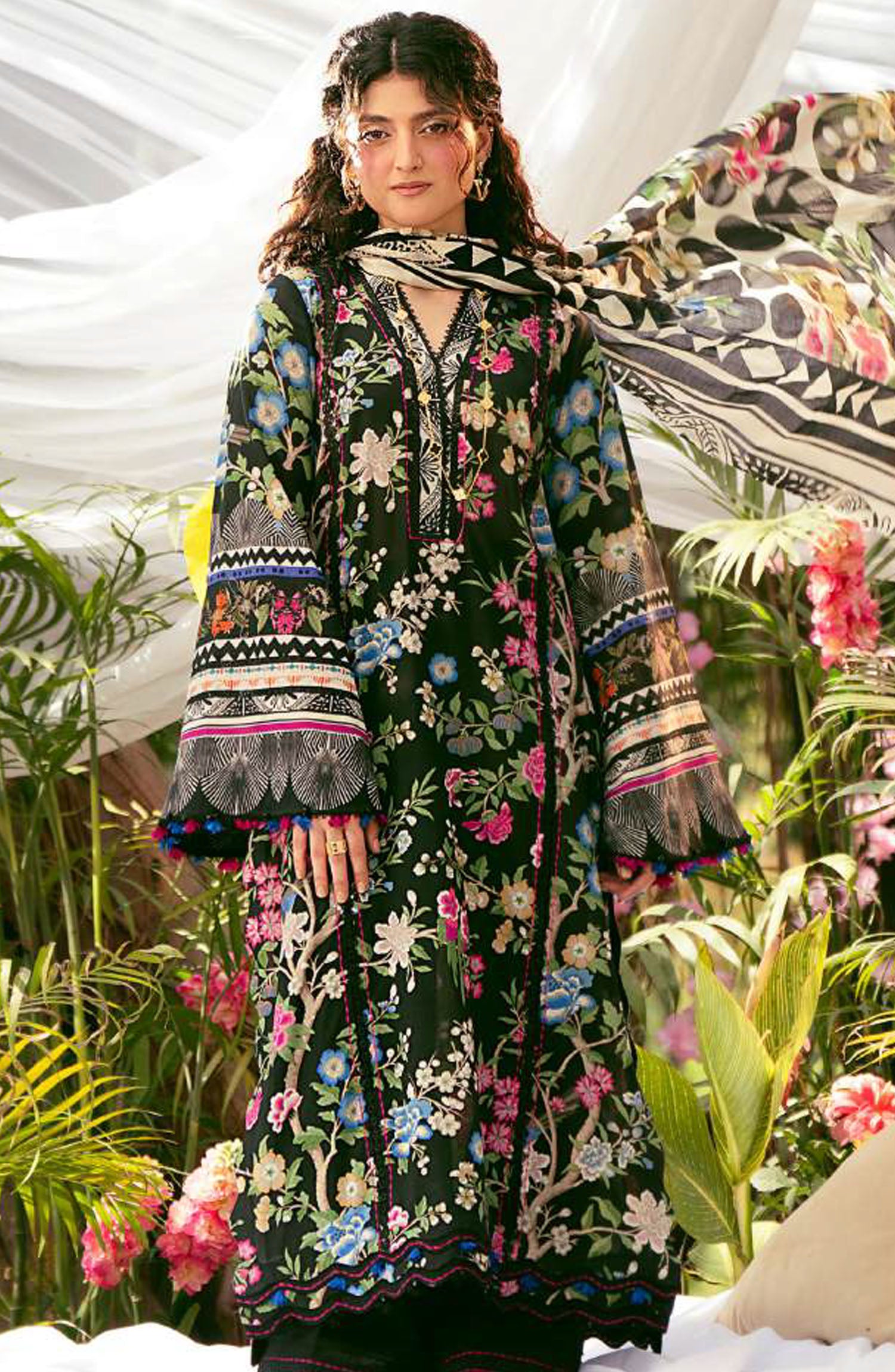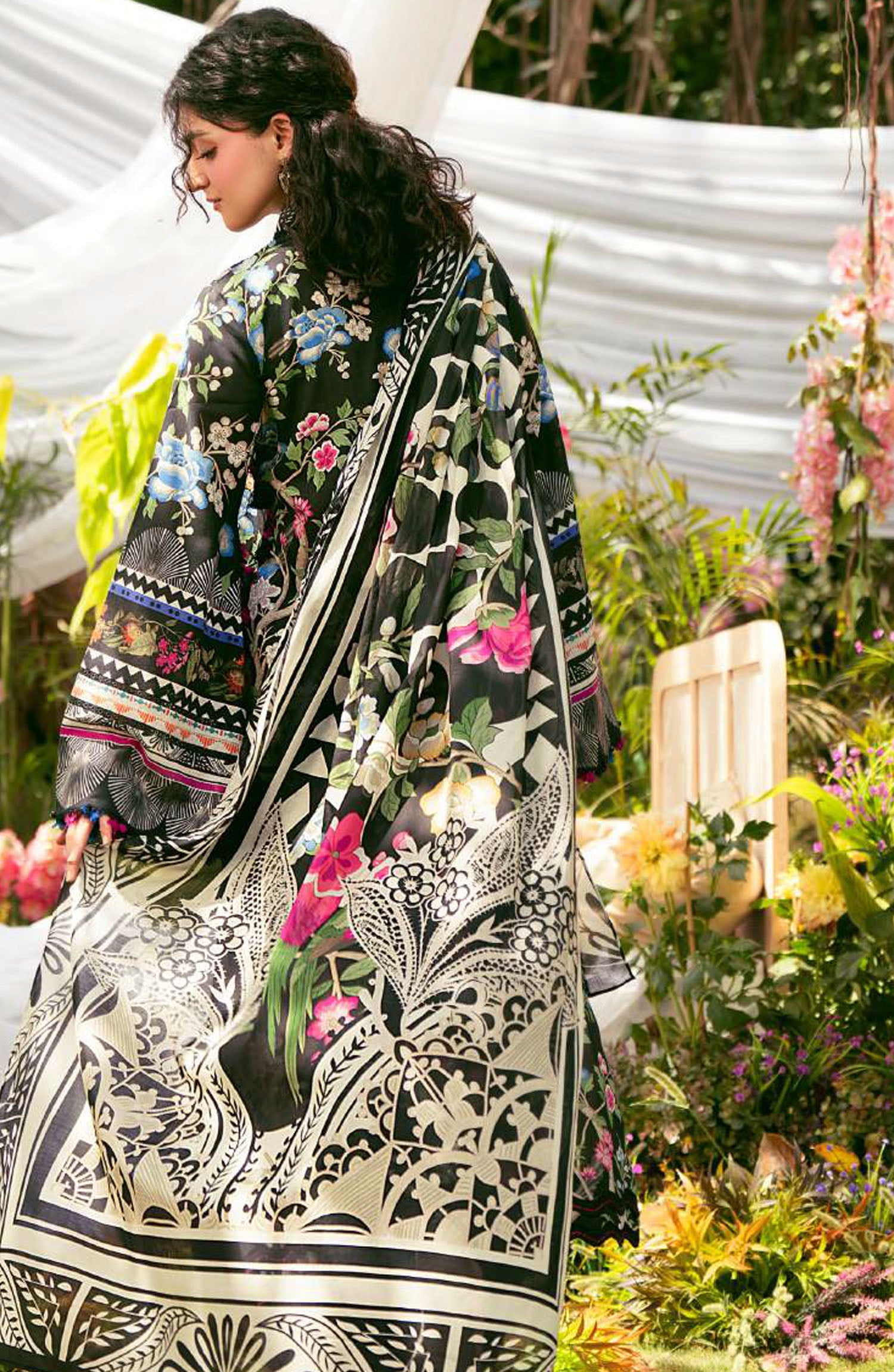 Home Elaf Printed Lawn Unstitched 3 Piece Suit - EPS-8B ELAROSE - EL25ELPV2 - Black - Summer Collection