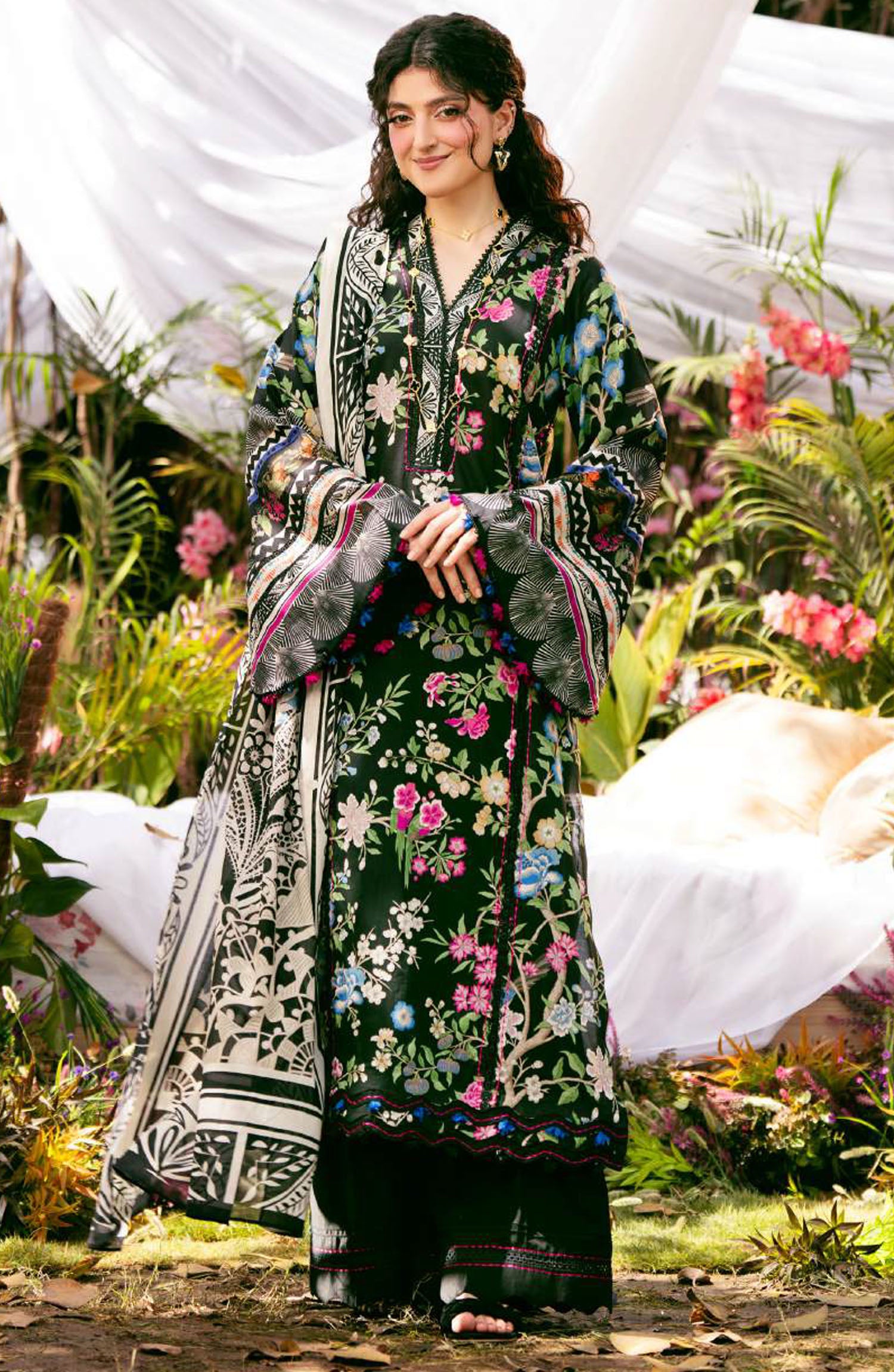 Elaf Printed Lawn Unstitched 3 Piece Suit - EPS-8B ELAROSE - EL25ELPV2 - Black - Summer Collection