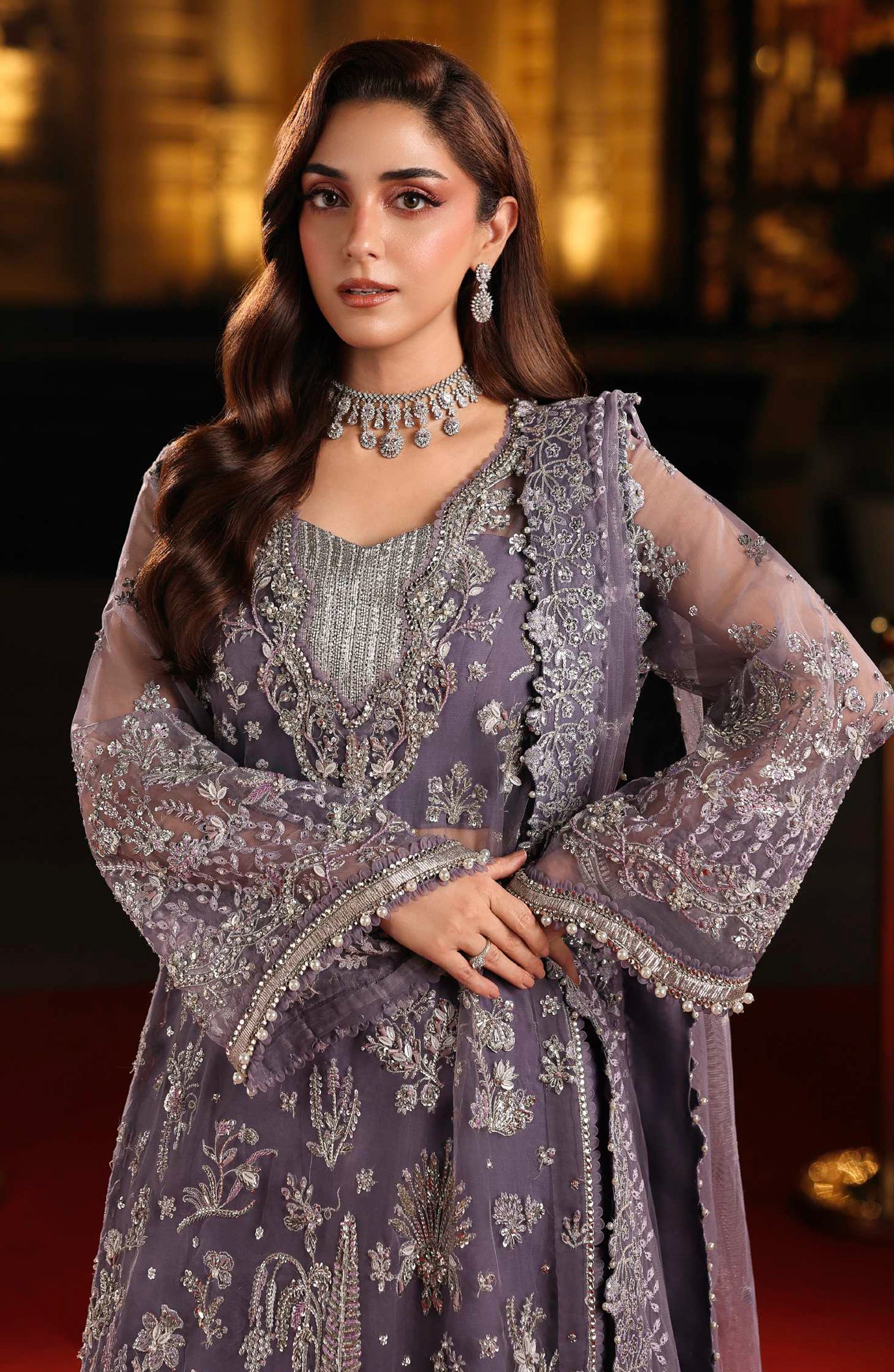 Elaf Stardom Formal Embroidered Organza Unstitched 3 Piece Suit - ESH-04 - EL25STR - Purple - Luxury Collection