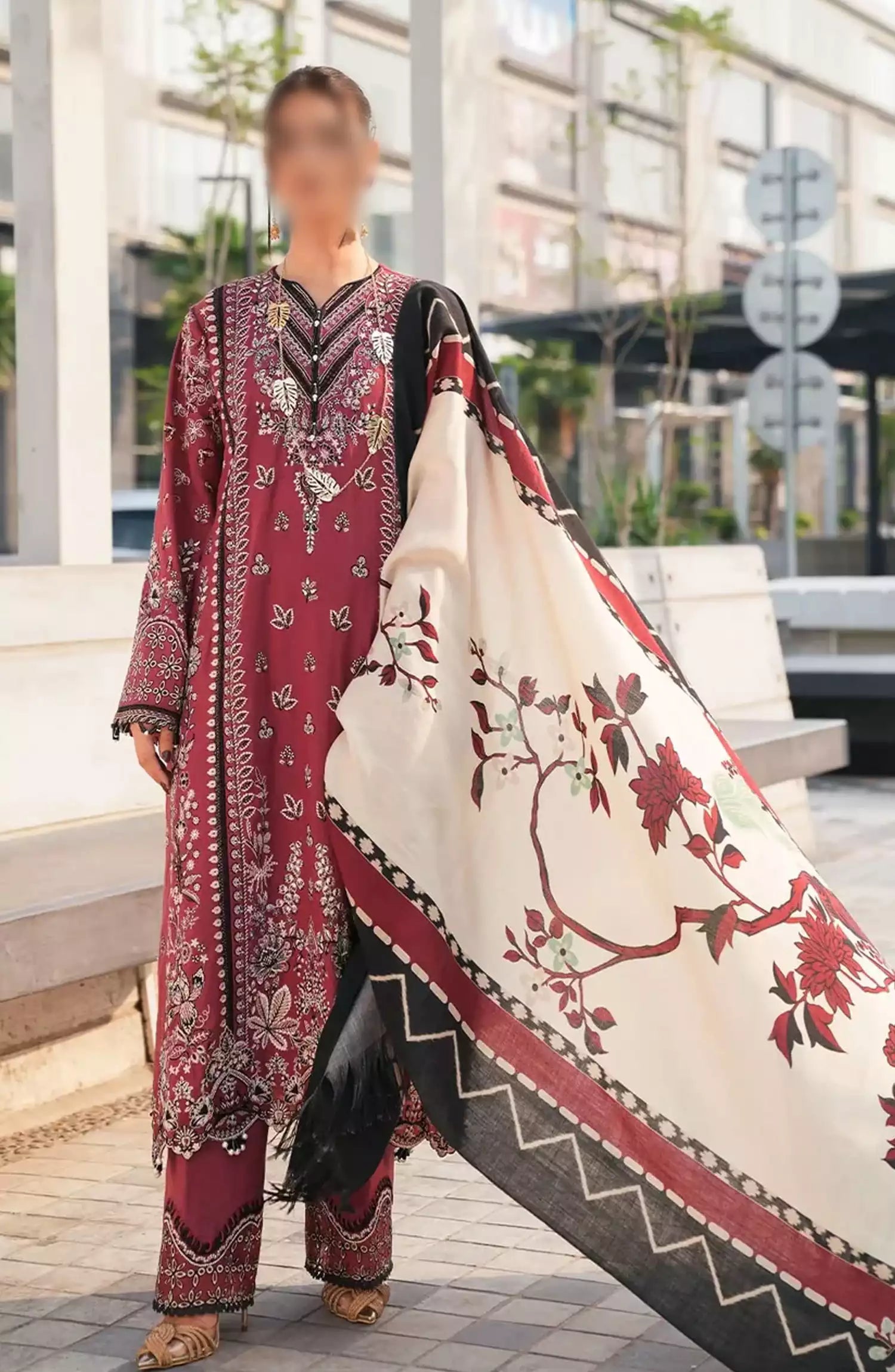 Elaf Winter Pashmina Shawl Collection 2024 has been styled in the image for photography and illustrative purposes.