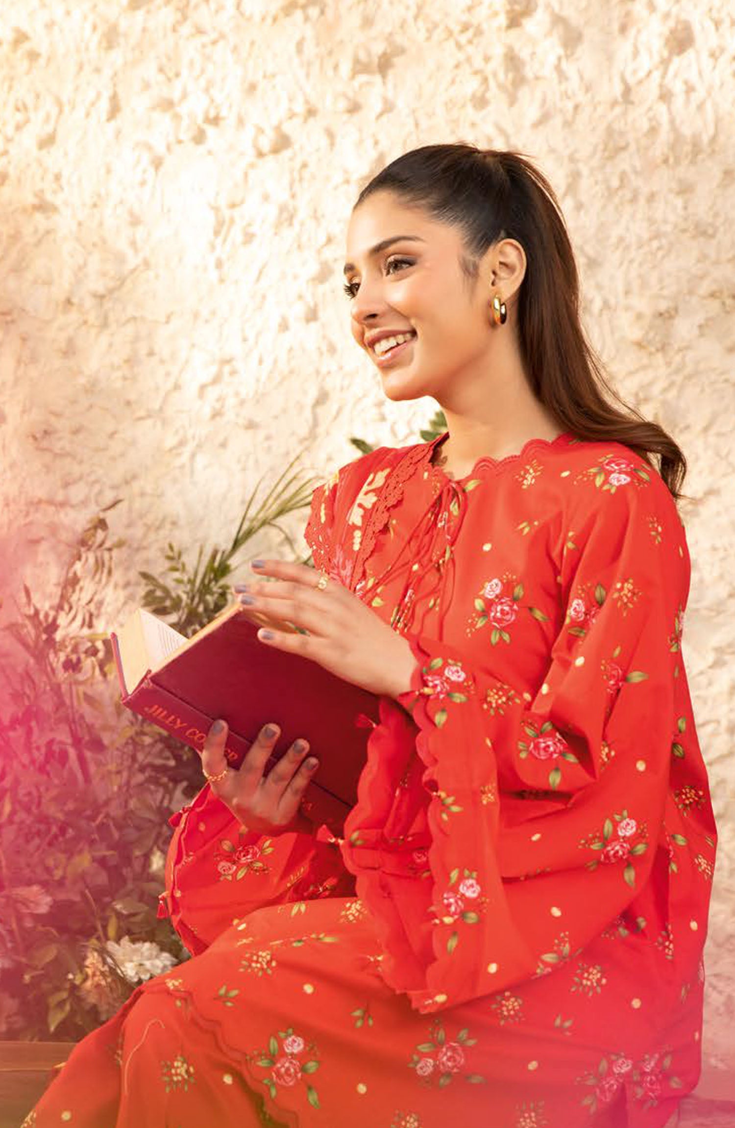 Home Elaheh by Mbasic Printed Lawn Unstitched 3 Piece Suit - MB-ELHV1-01 - MB25ECL - Red - Casual Collection