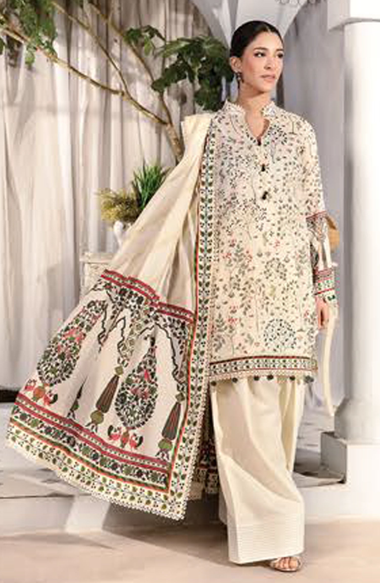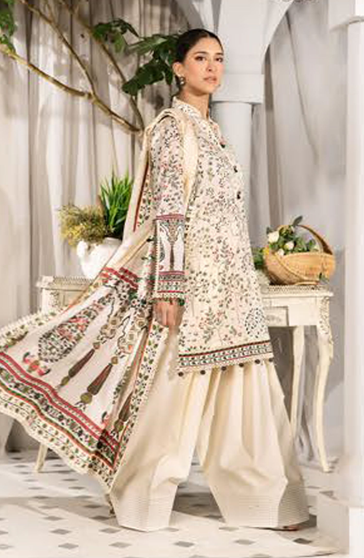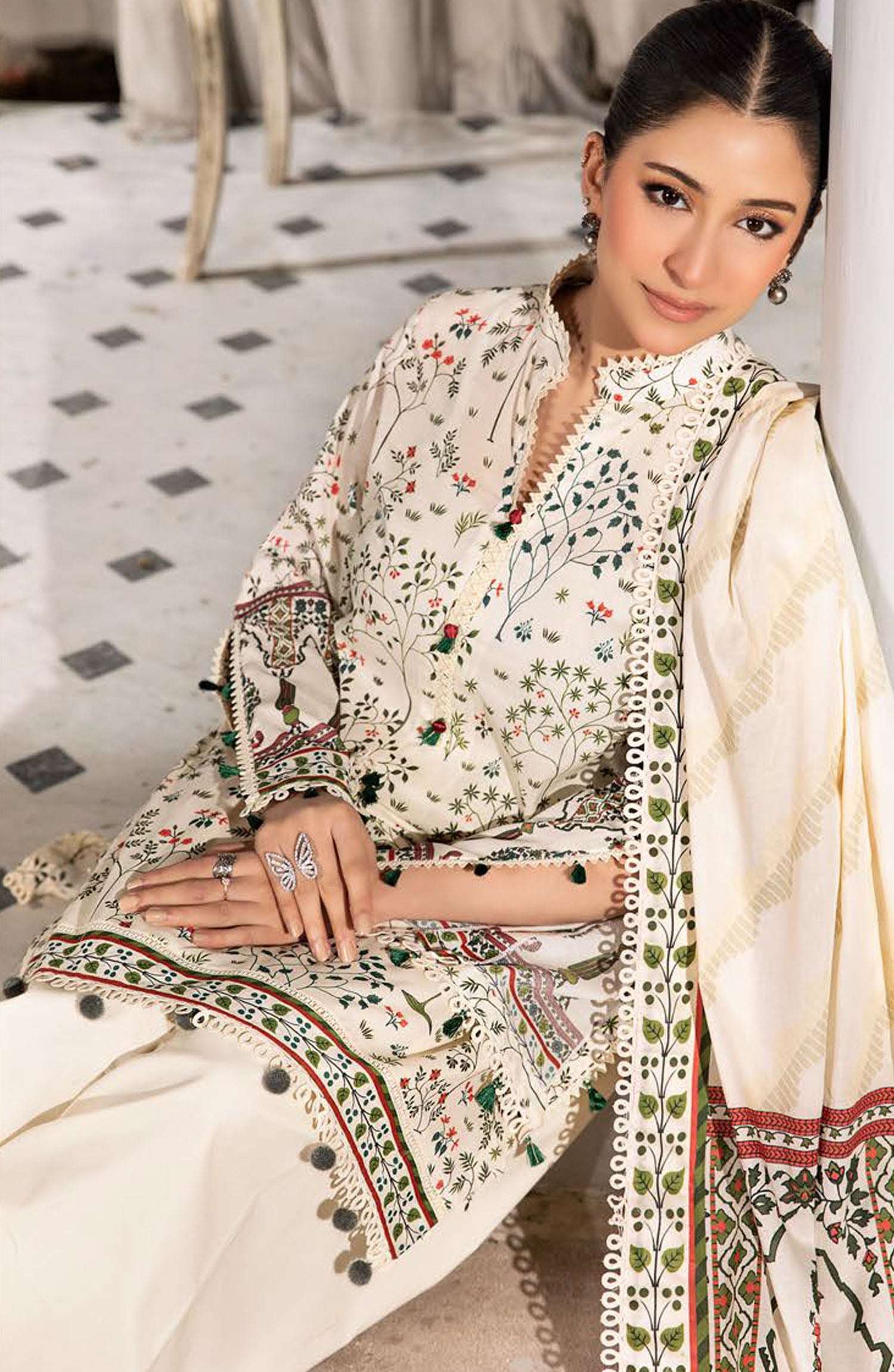 Home Elaheh by Mbasic Printed Lawn Unstitched 3 Piece Suit - MB-ELHV1-02 - MB25ECL - Beige - Casual Collection