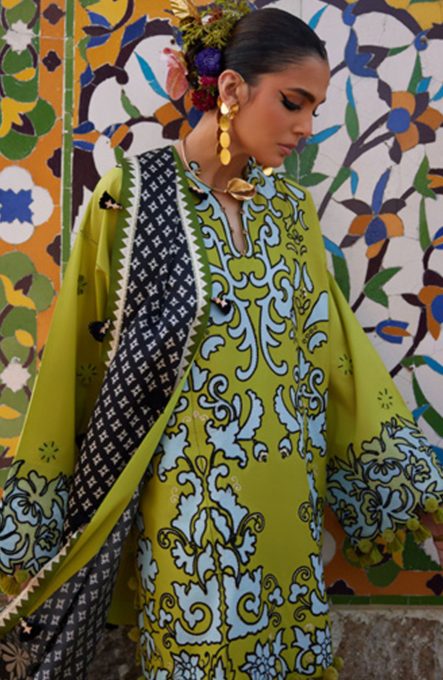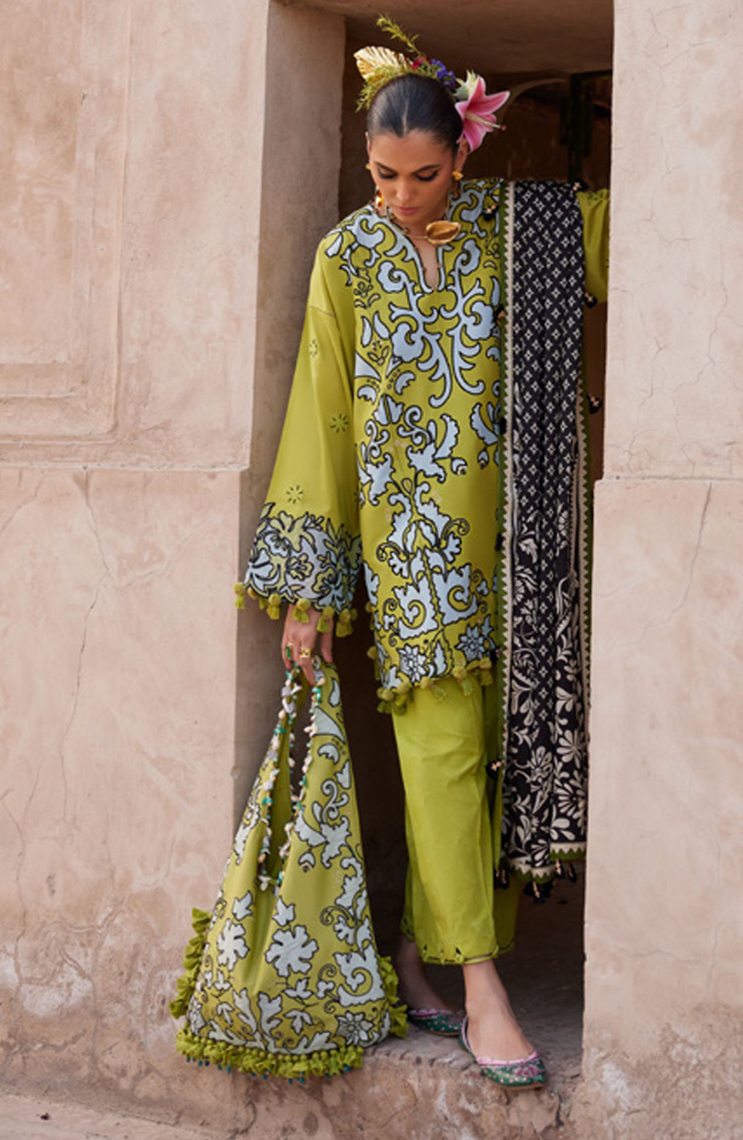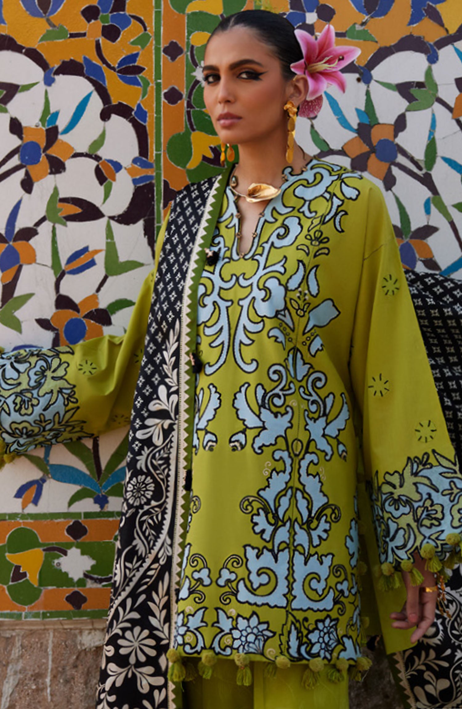 Elan Embroidered Lawn Unstitched 3 Piece Suit - D-03 A - EL25ULL - Green - Summer Collection