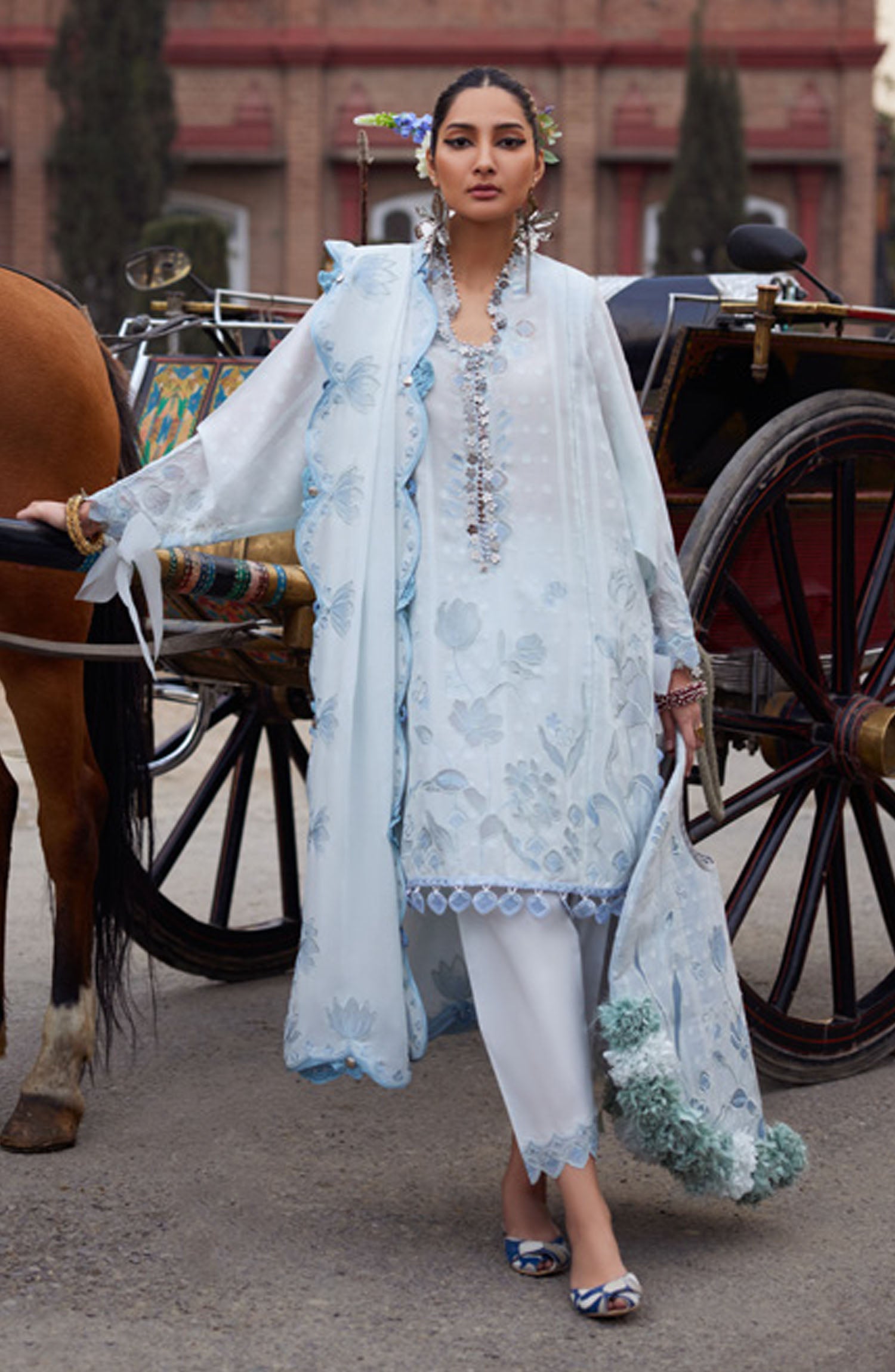 Ochre Embroidered Cotton Silk Stitched 3 Piece Suit - INMHD-12 - OCH25VEL - Ice Blue - Girls Festive Collection