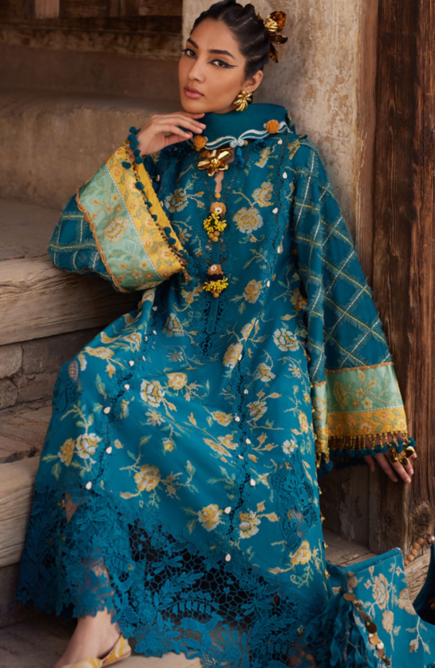 Elan Embroidered Lawn Unstitched 3 Piece Suit - D-10 A - EL25ULL - Blue - Summer Collection
