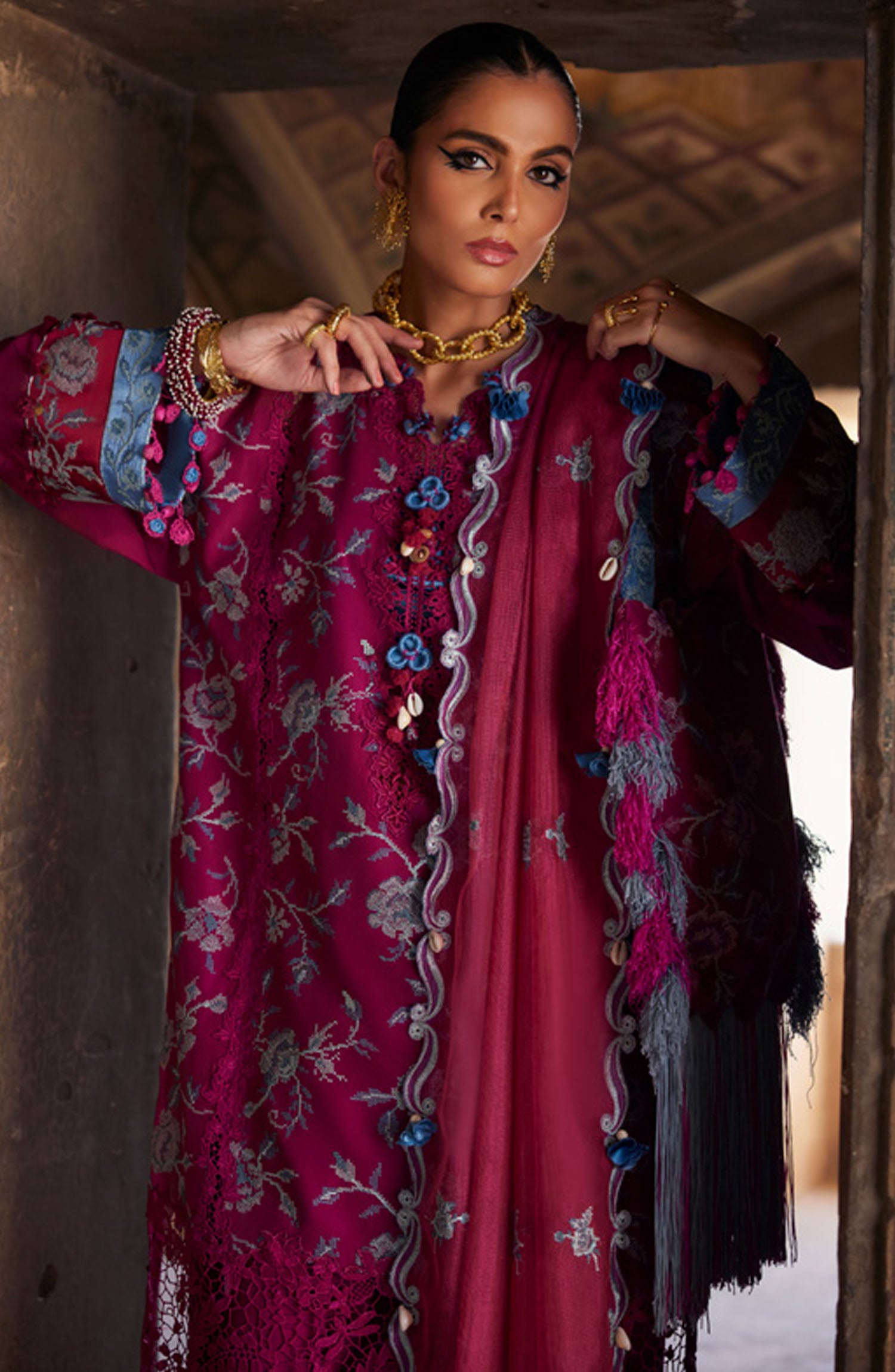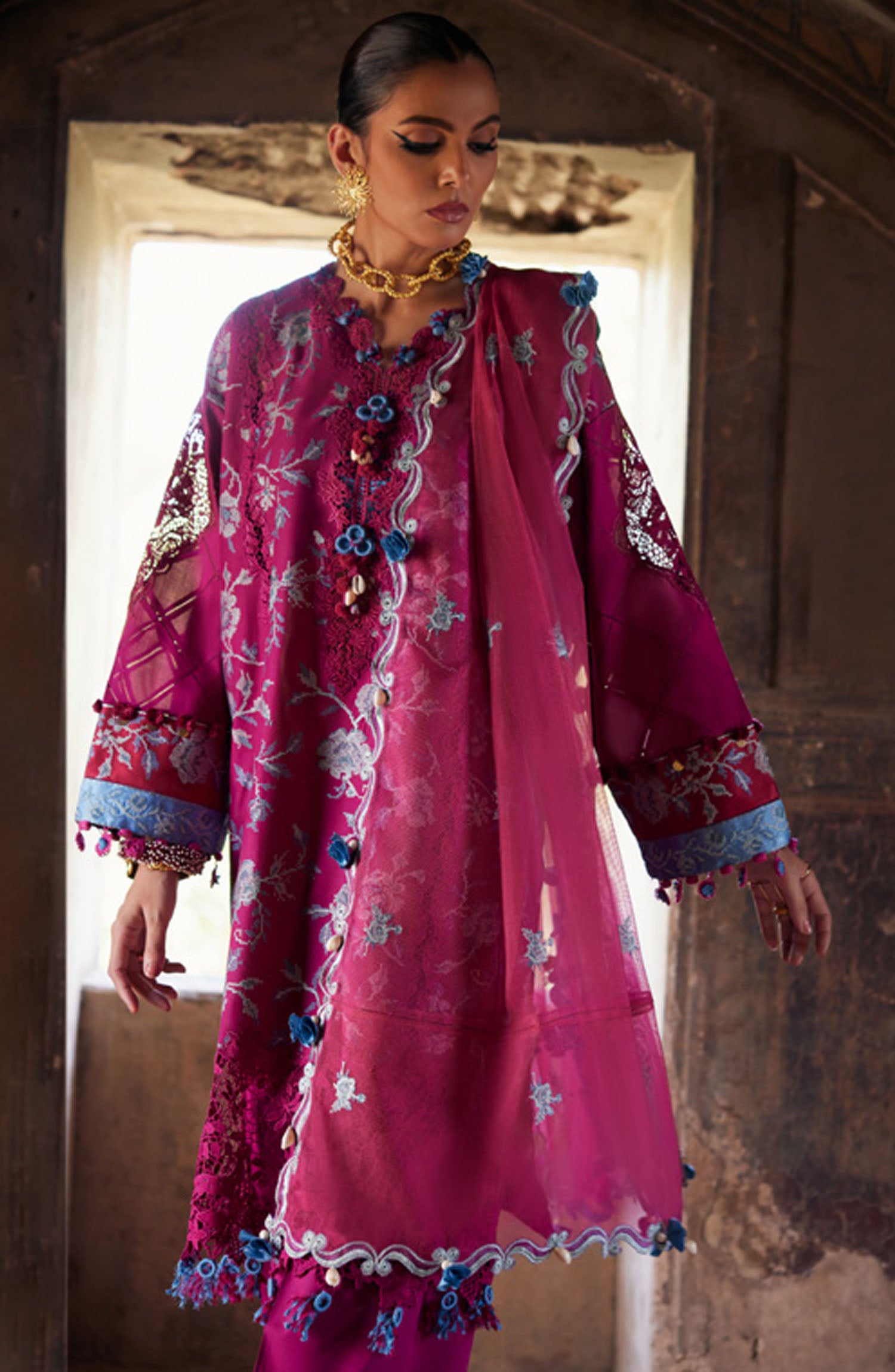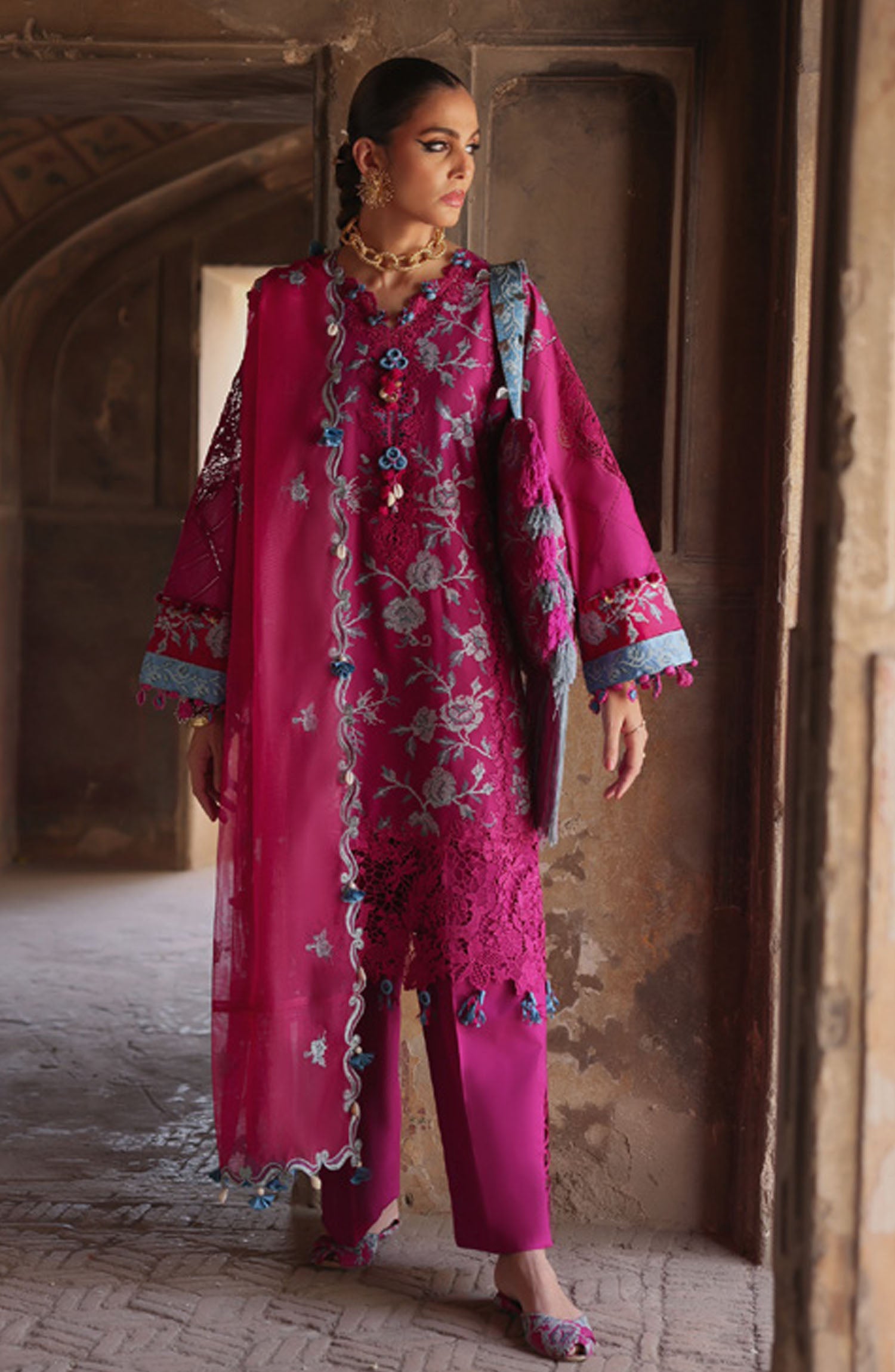 Elan Embroidered Lawn Unstitched 3 Piece Suit - D-10 B - EL25ULL - Magenta - Summer Collection