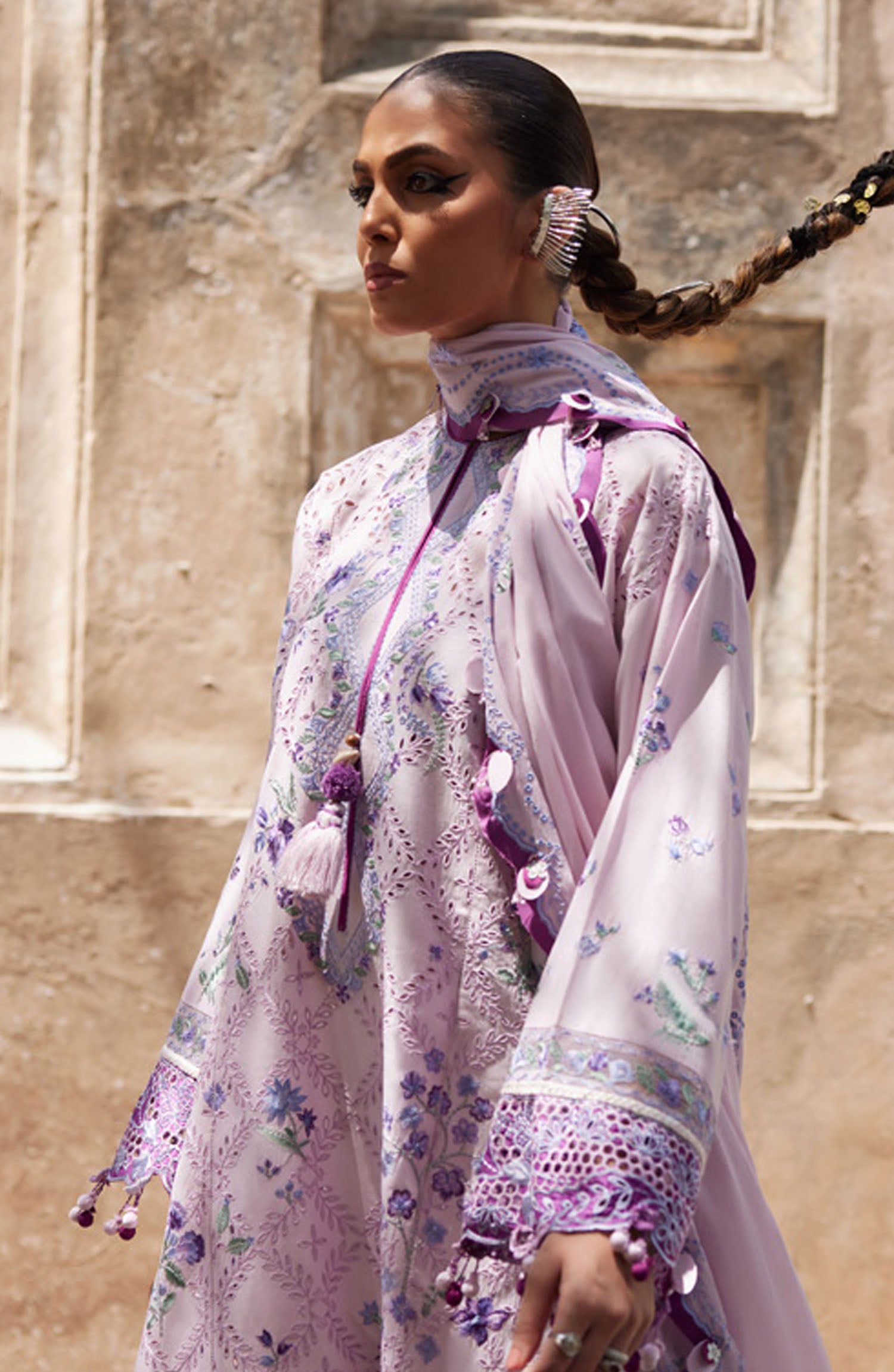 Baroque Chantelle Embroidered Chiffon Unstitched 3 Piece Suit - V14-D07 - BQ25CHN - Purple - Formal Collection