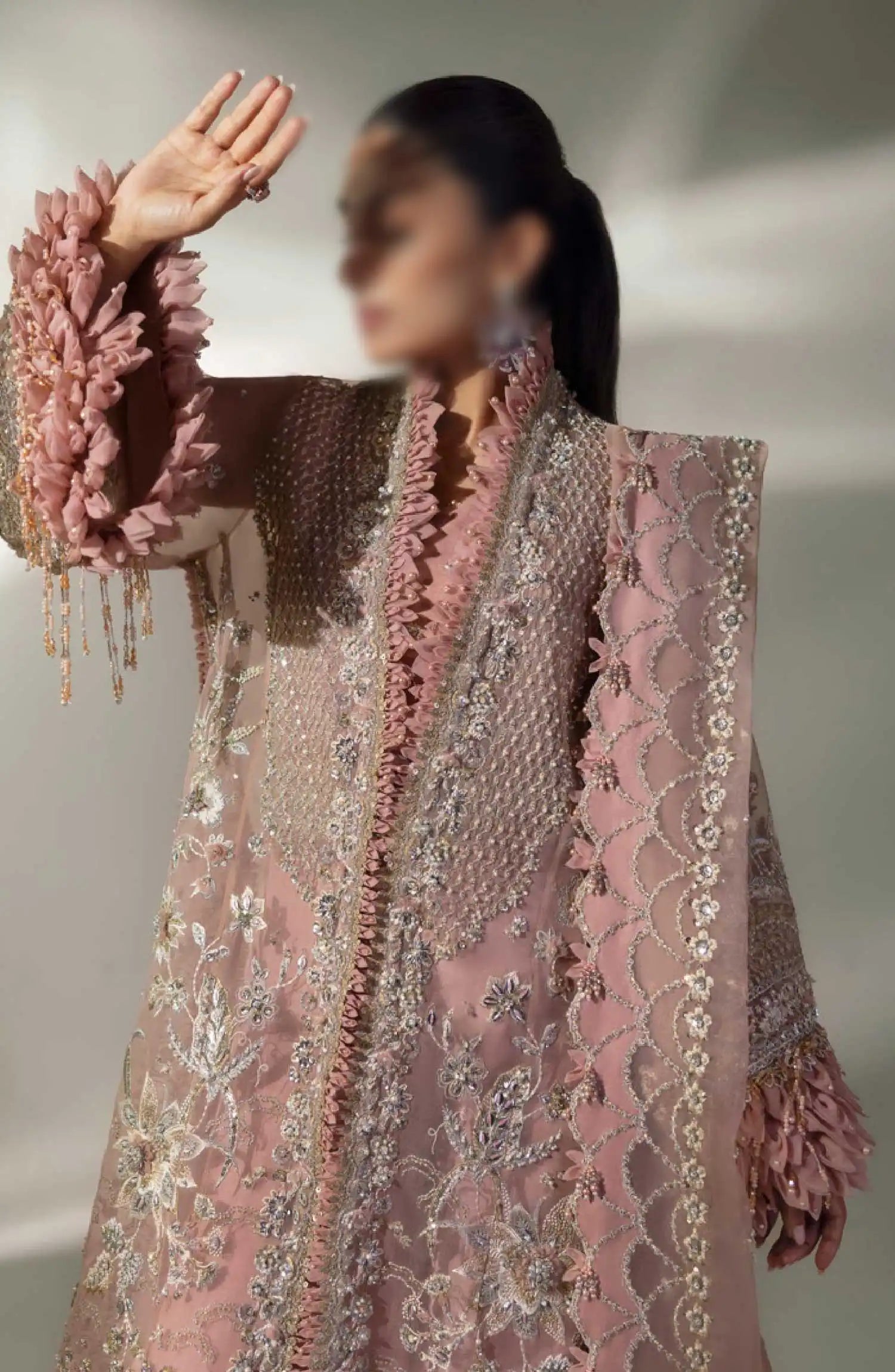 Elan Unstitched 3 Piece Wedding Festive Collection 2024 has been styled in the image for photography and illustrative purposes.