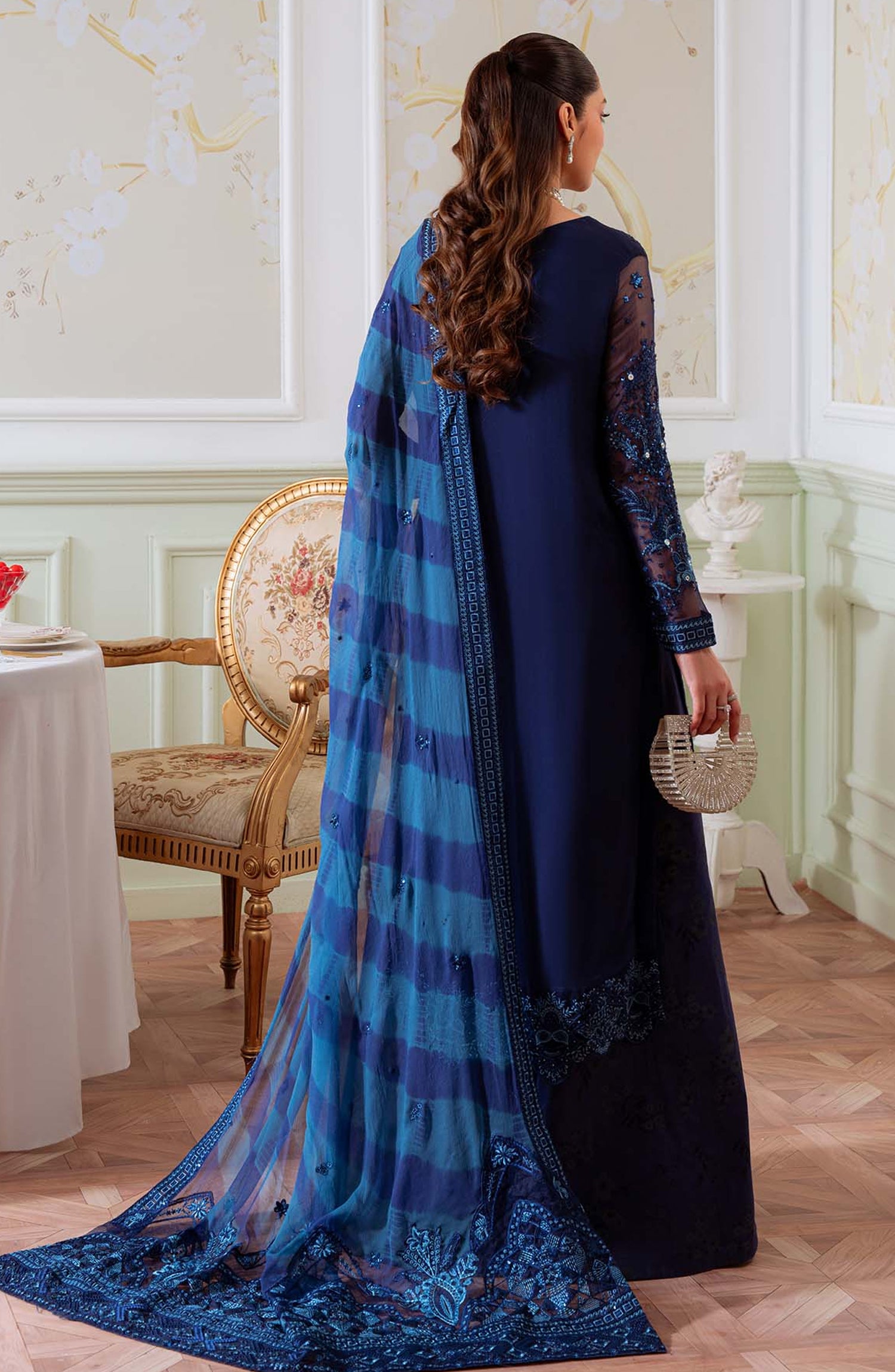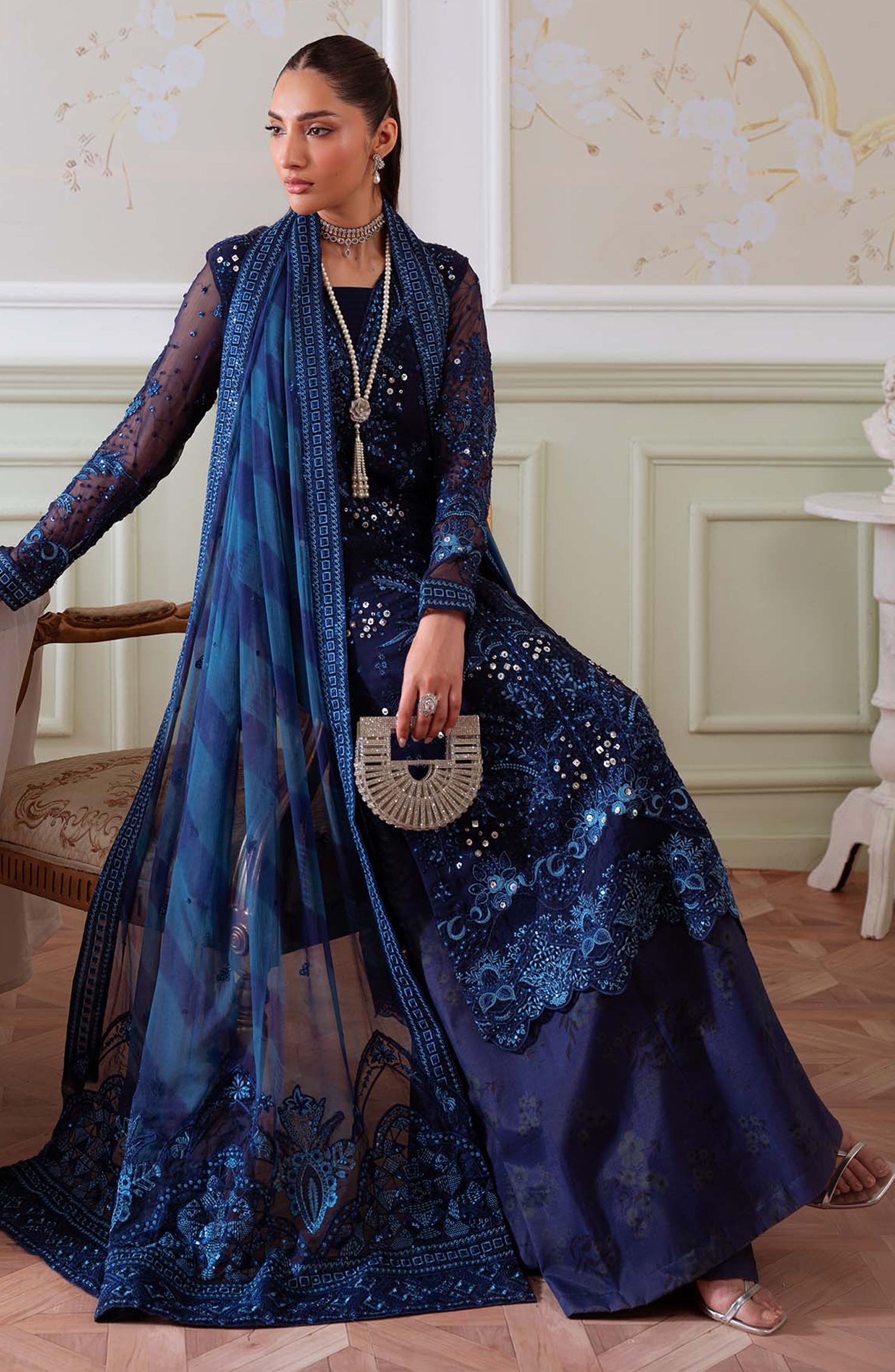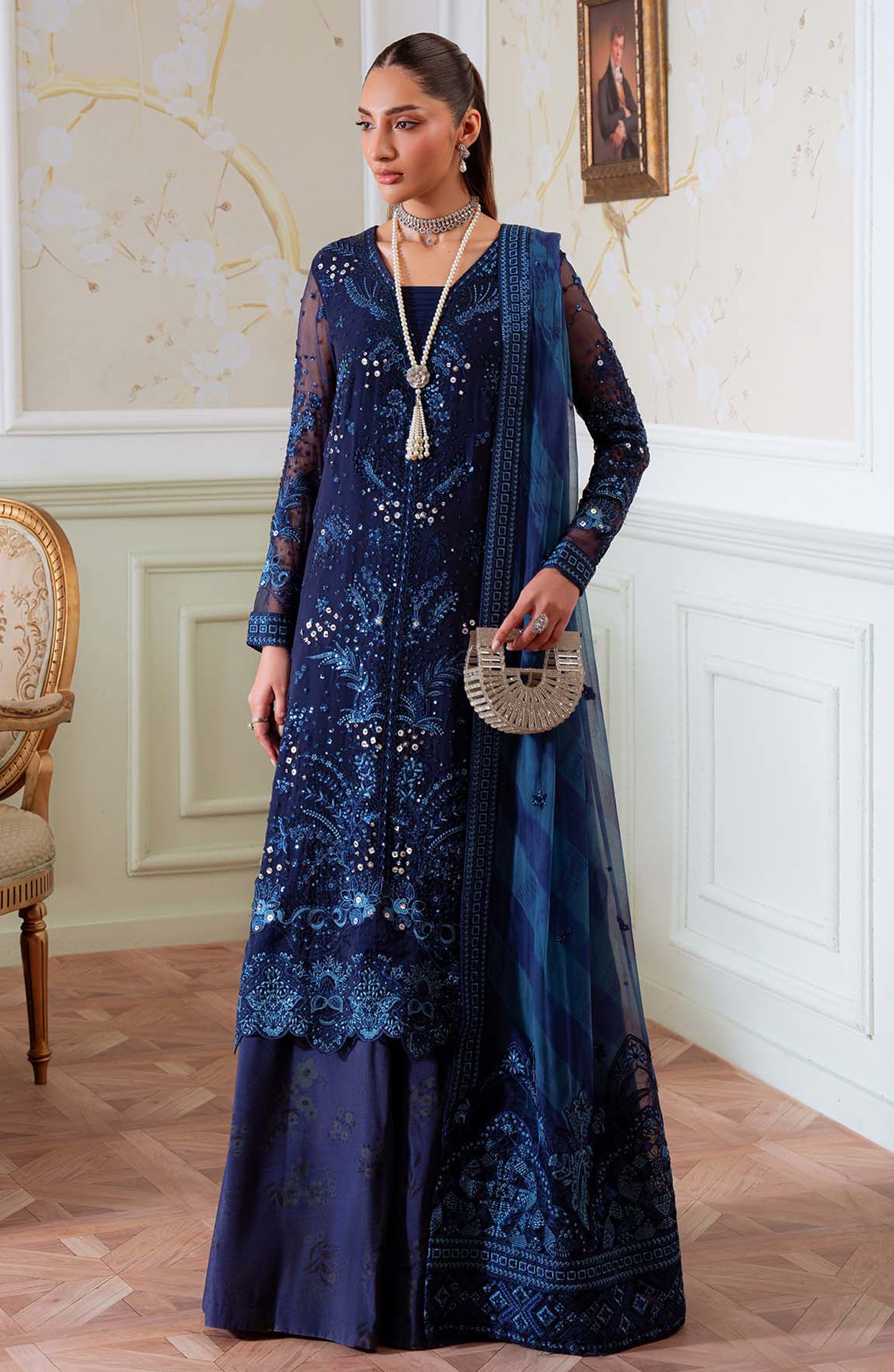 Elanora by Nureh Embroidered Chiffon Unstitched 3 Piece Suit - NEL-79 - NU25ELN - Blue - Formals Collection