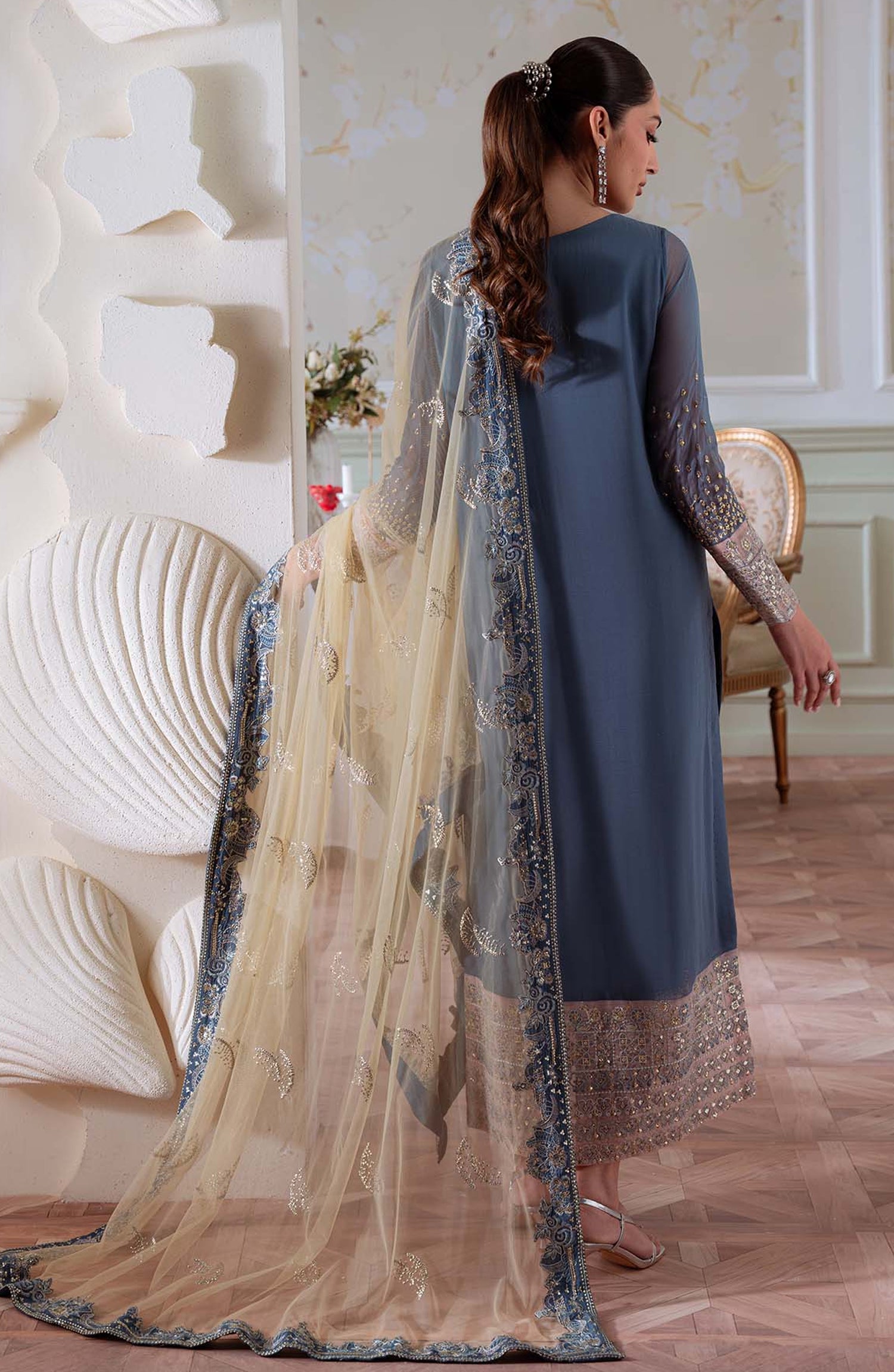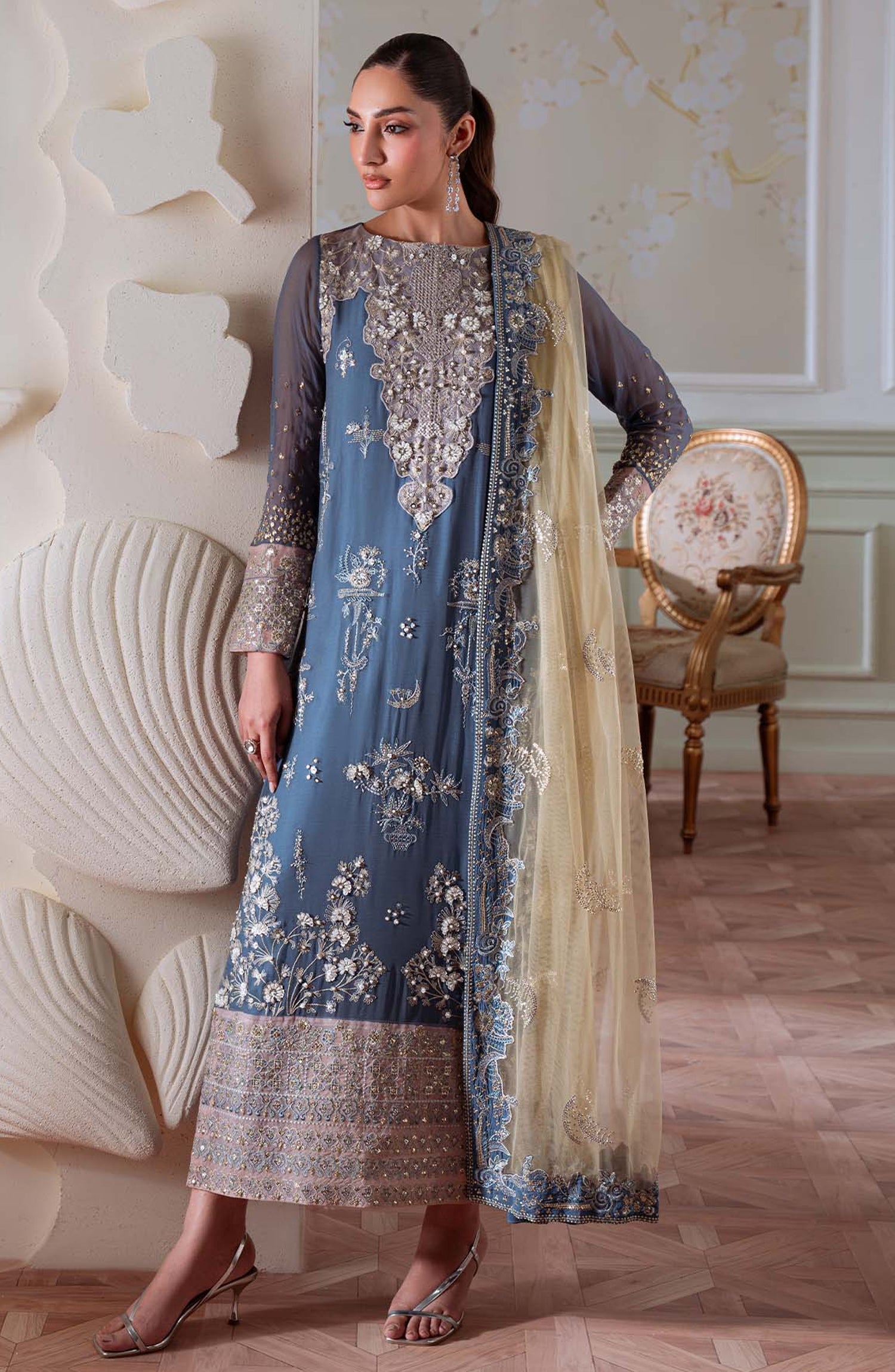 Elanora by Nureh Embroidered Chiffon Unstitched 3 Piece Suit - NEL-82 - NU25ELN - Blue - Formals Collection