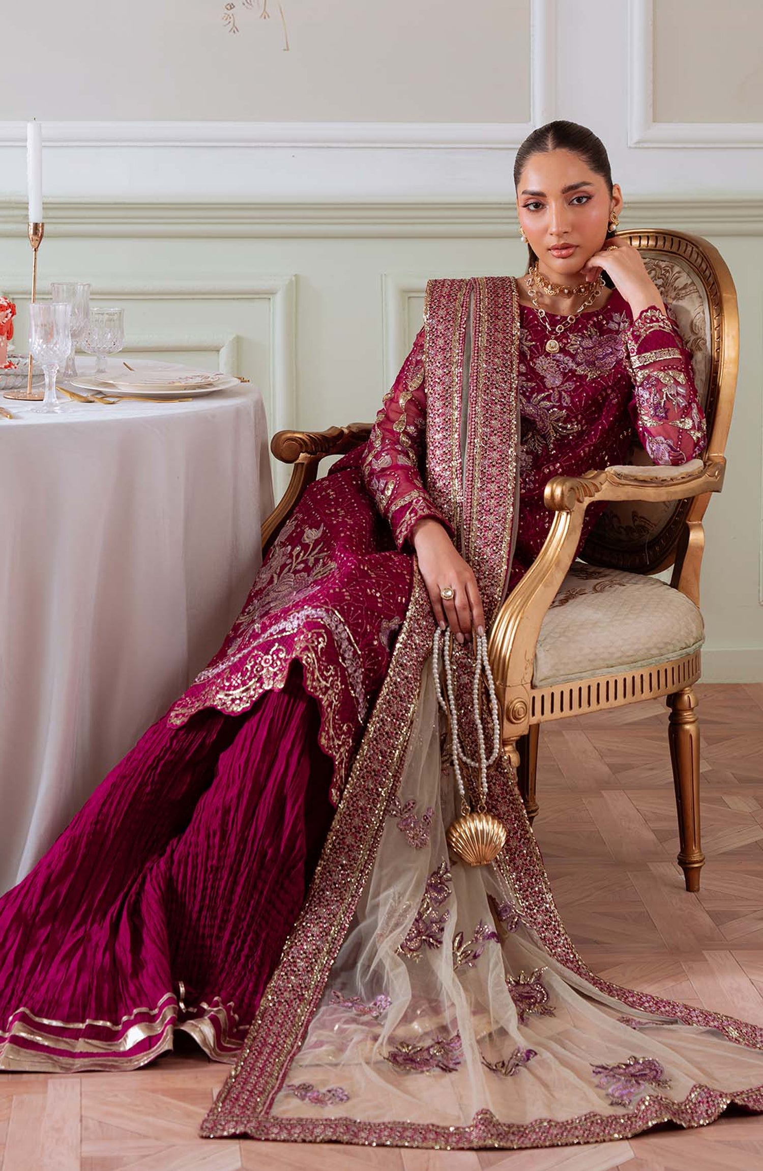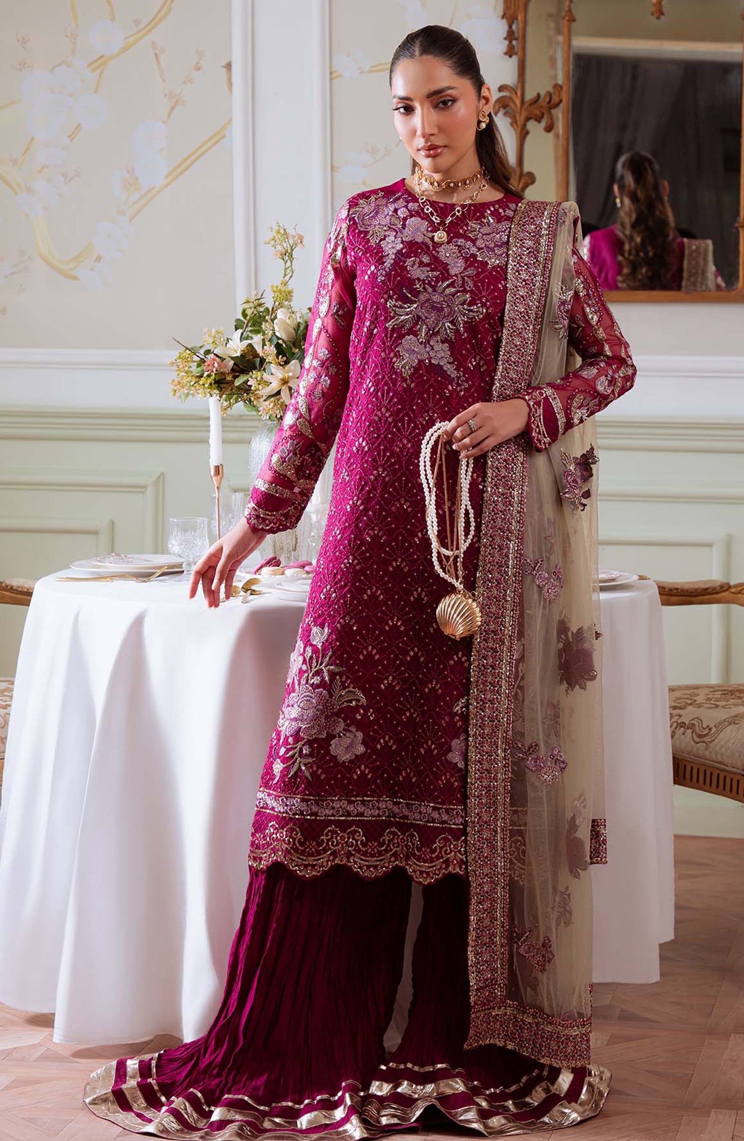 Elanora by Nureh Embroidered Organza Unstitched 3 Piece Suit - NEL-78 - NU25ELN - Pink - Formals Collection