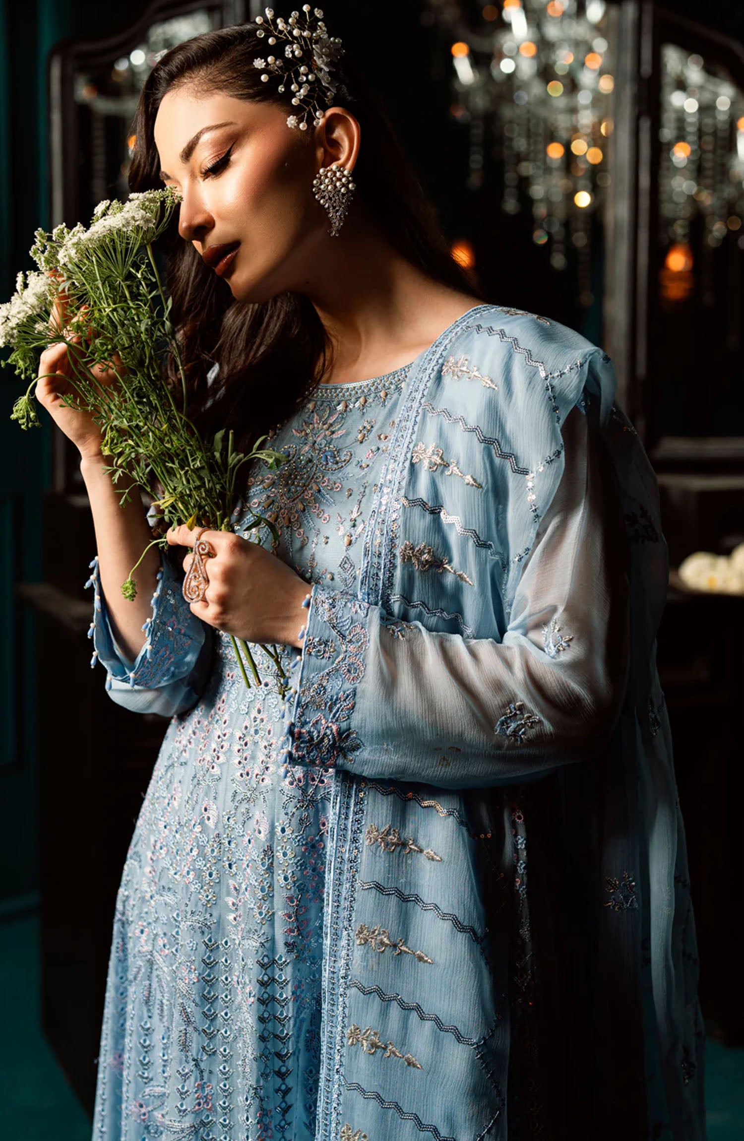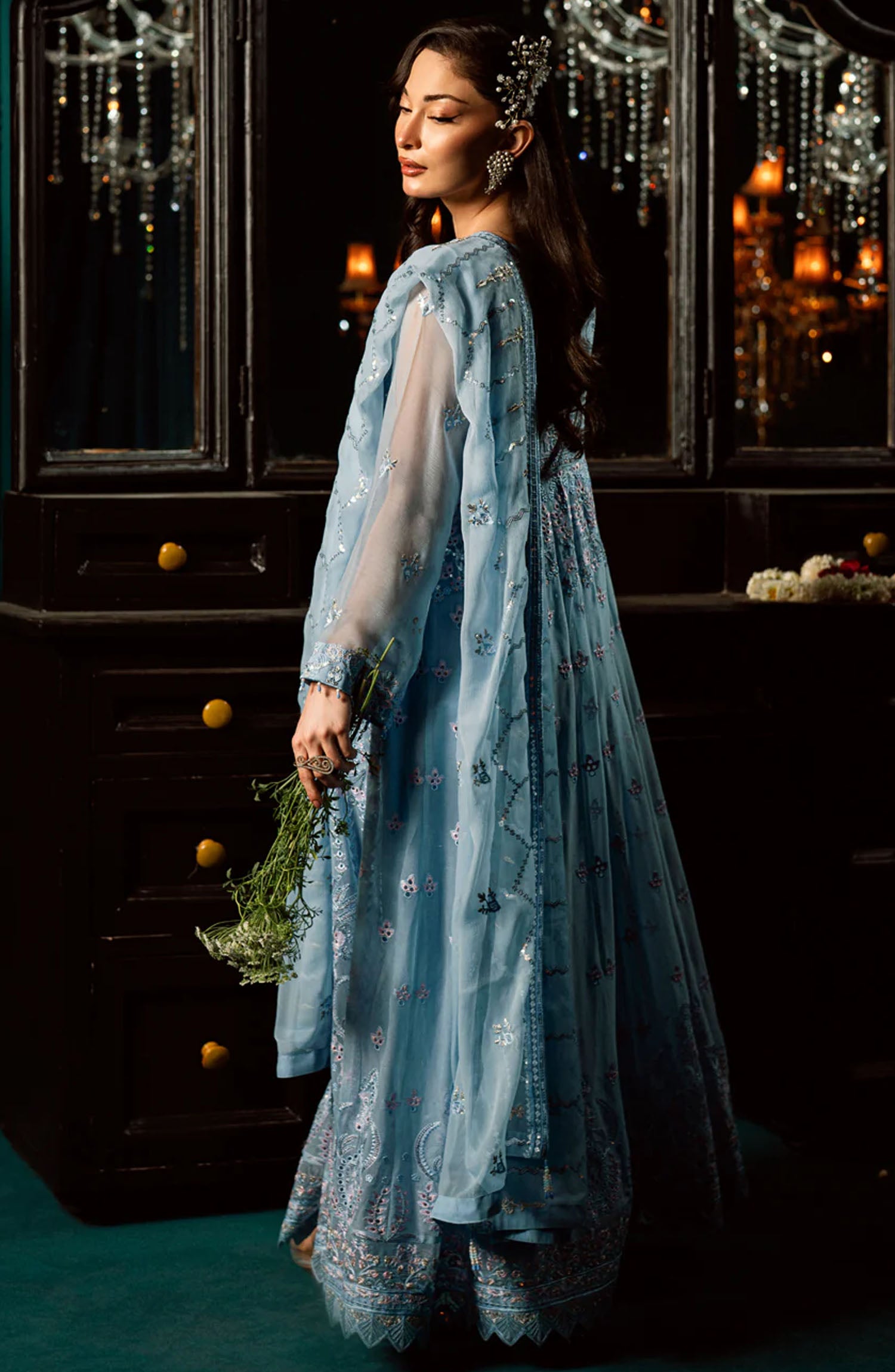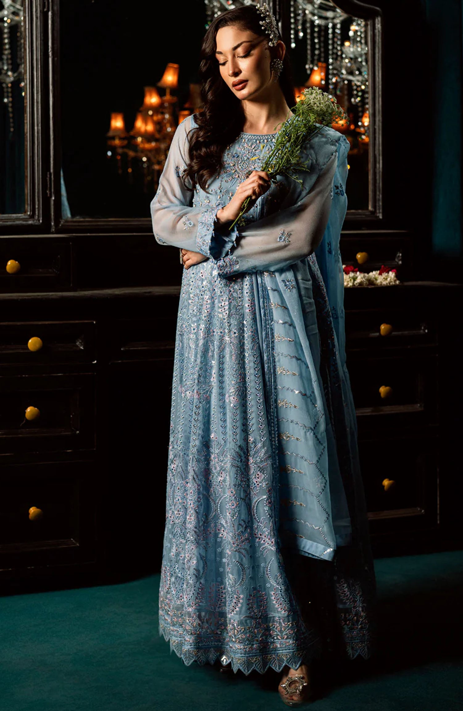Embroidered Organza Border All over Embroidered Chiffon Sleeves
