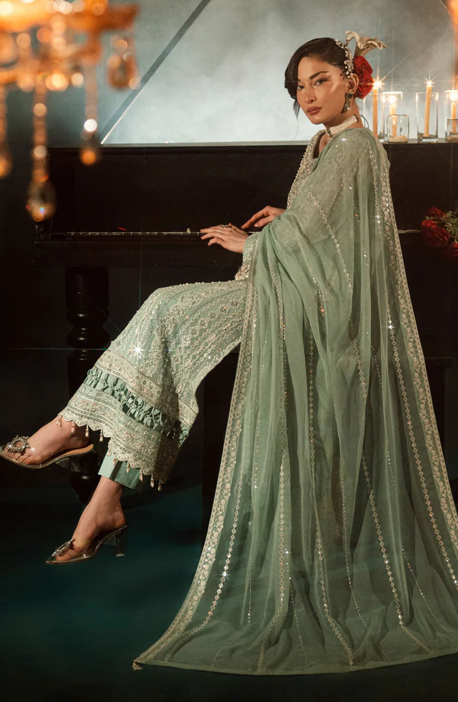 Embroidered Chiffon Sleeves with Embellish Organza Patch