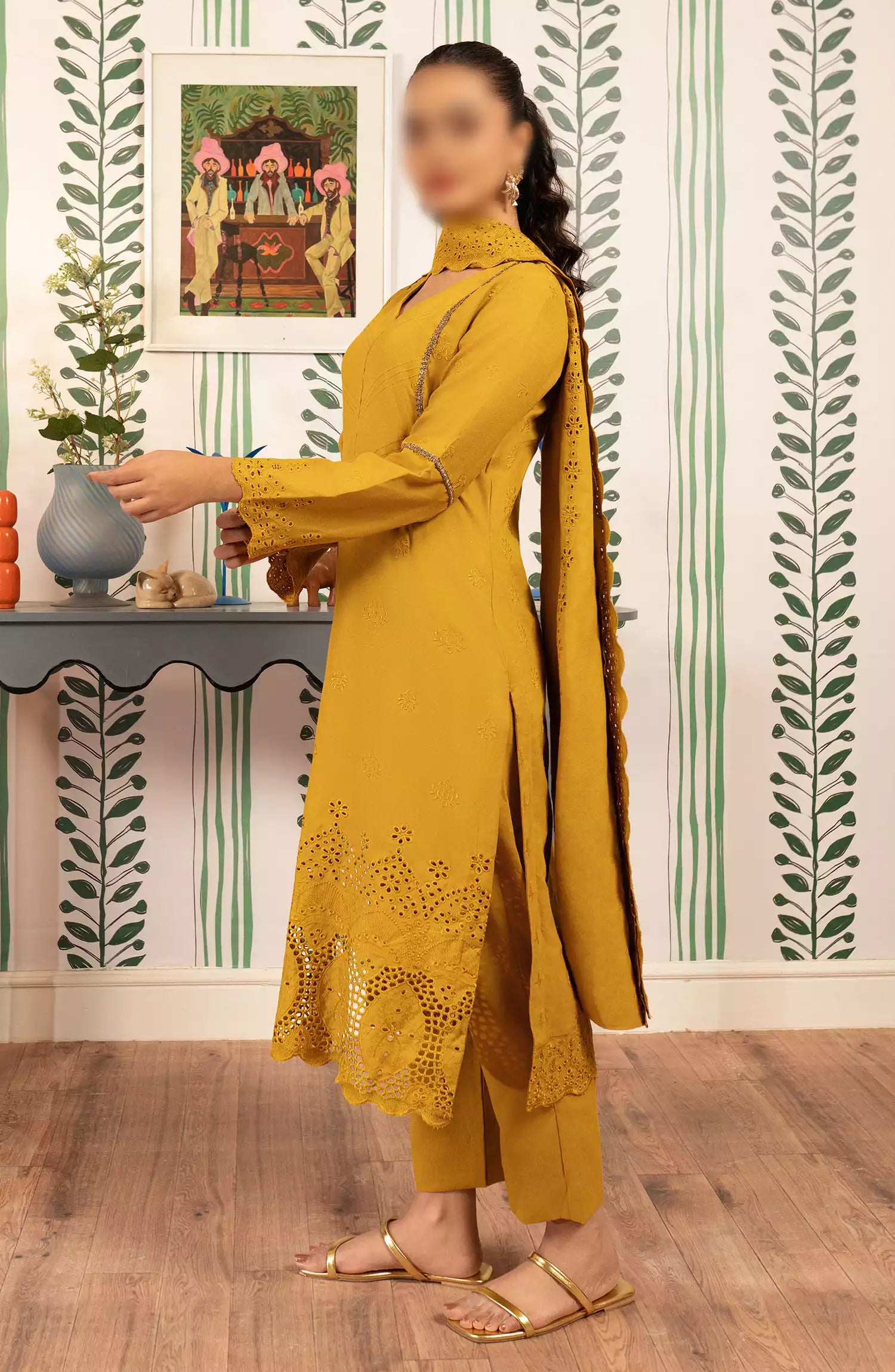 ELARA – Unstitched 3PC Linen Collection 2024 - 01-GOLDEN SUNSHINE