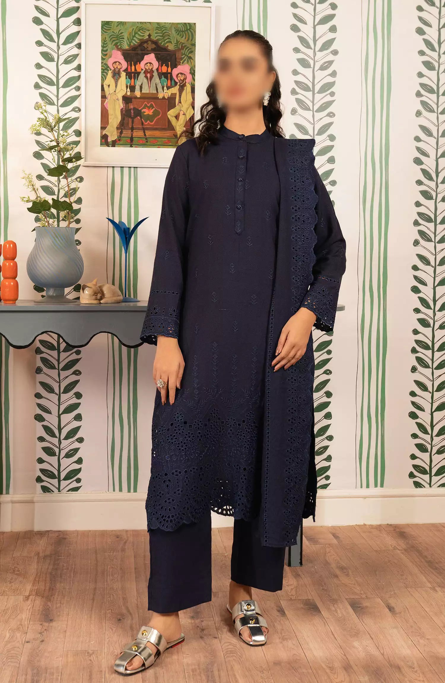 ELARA â Unstitched 3PC Linen Collection 2024 has been styled in the image for photography and illustrative purposes.