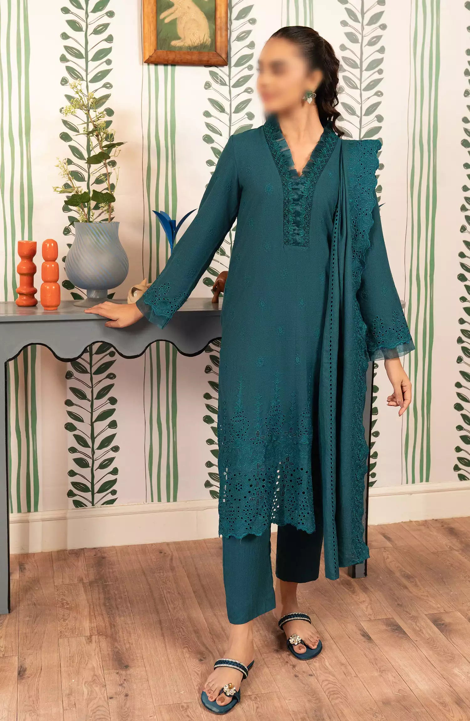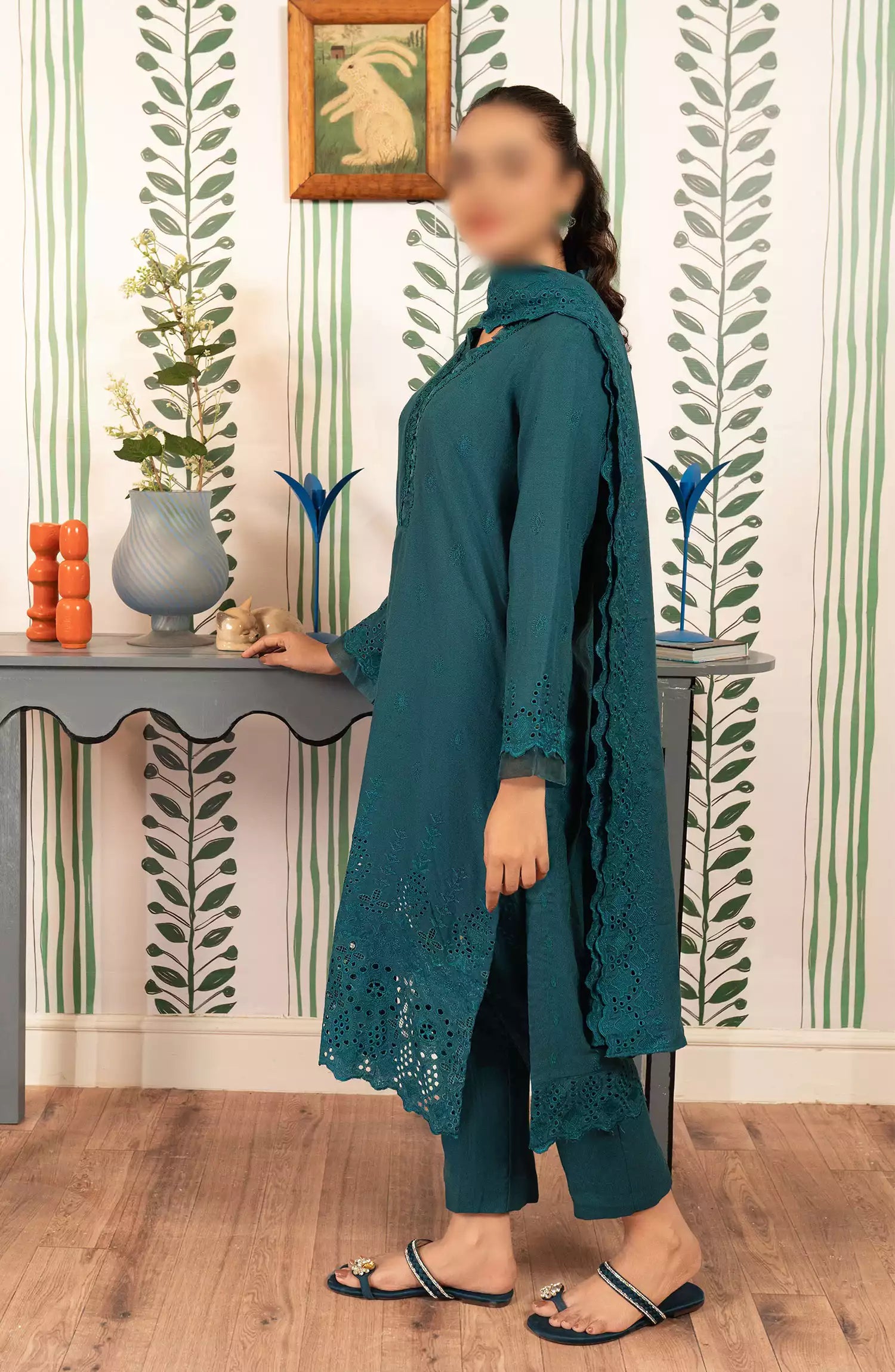 ELARA – Unstitched 3PC Linen Collection 2024 has been styled in the image for photography and illustrative purposes.