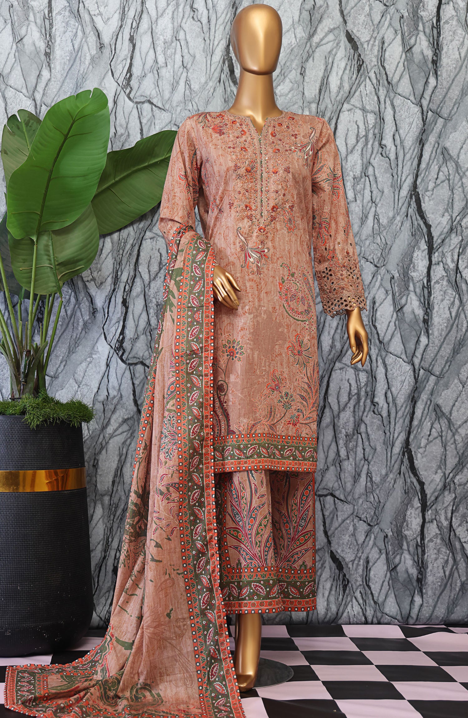Premium Digital Printed Lawn Shirt with Embroidered Neck and Sleeves