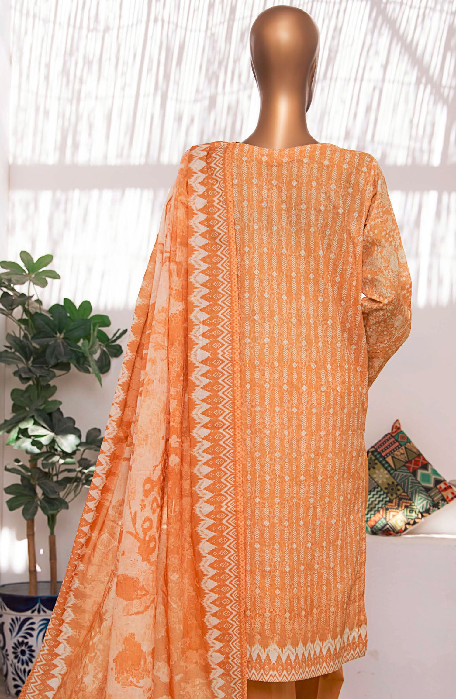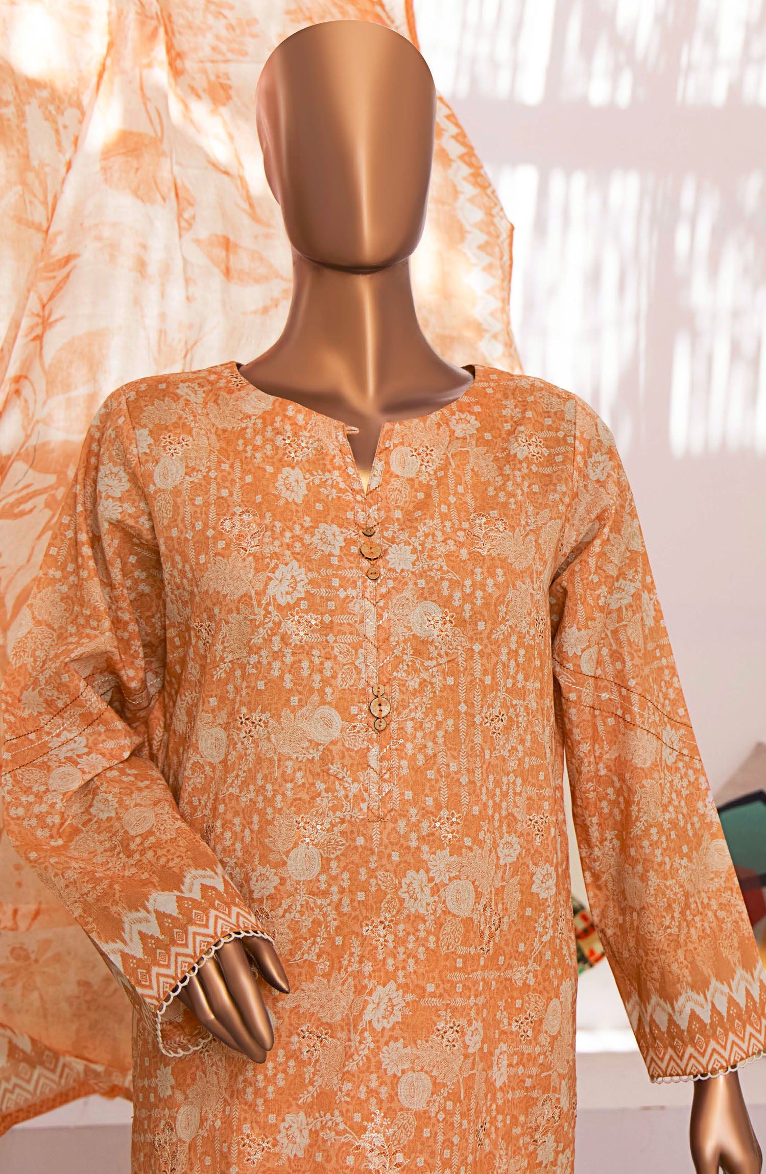 Elegant by HZ Textile Embroidered Lawn Unstitched 3 Piece Suit - EC-928 - HZ25EEL - Orange - Summer Collection