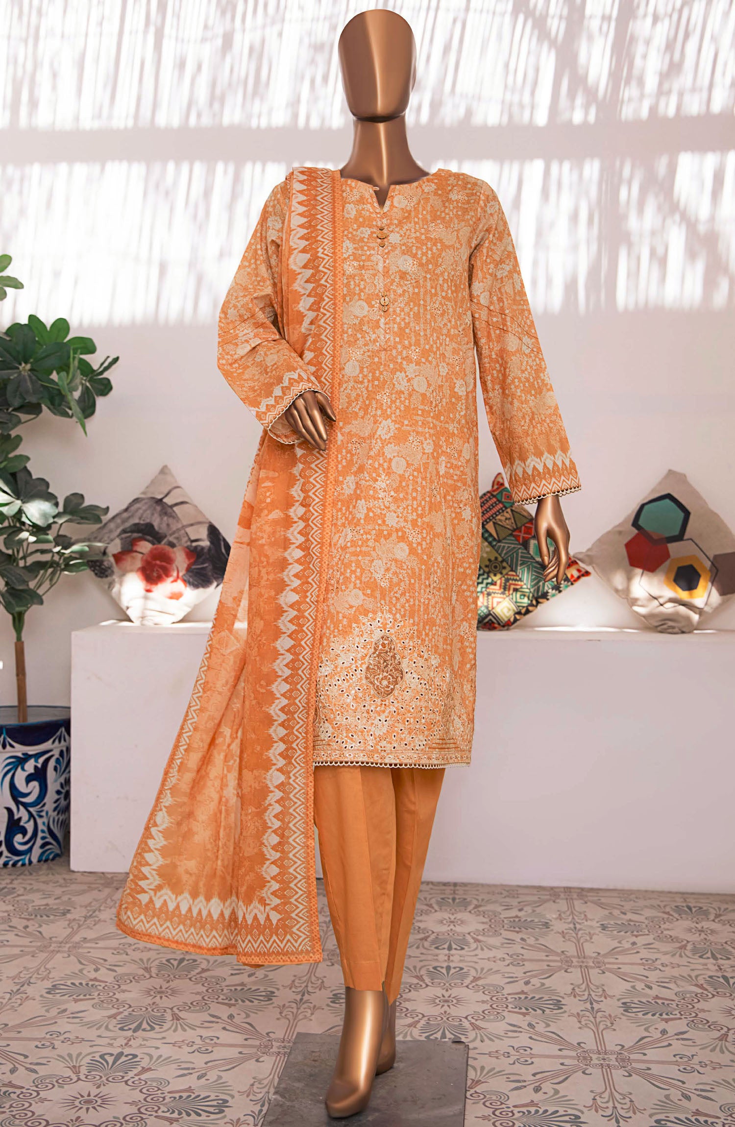 Home Elegant by HZ Textile Embroidered Lawn Unstitched 3 Piece Suit - EC-928 - HZ25EEL - Orange - Summer Collection