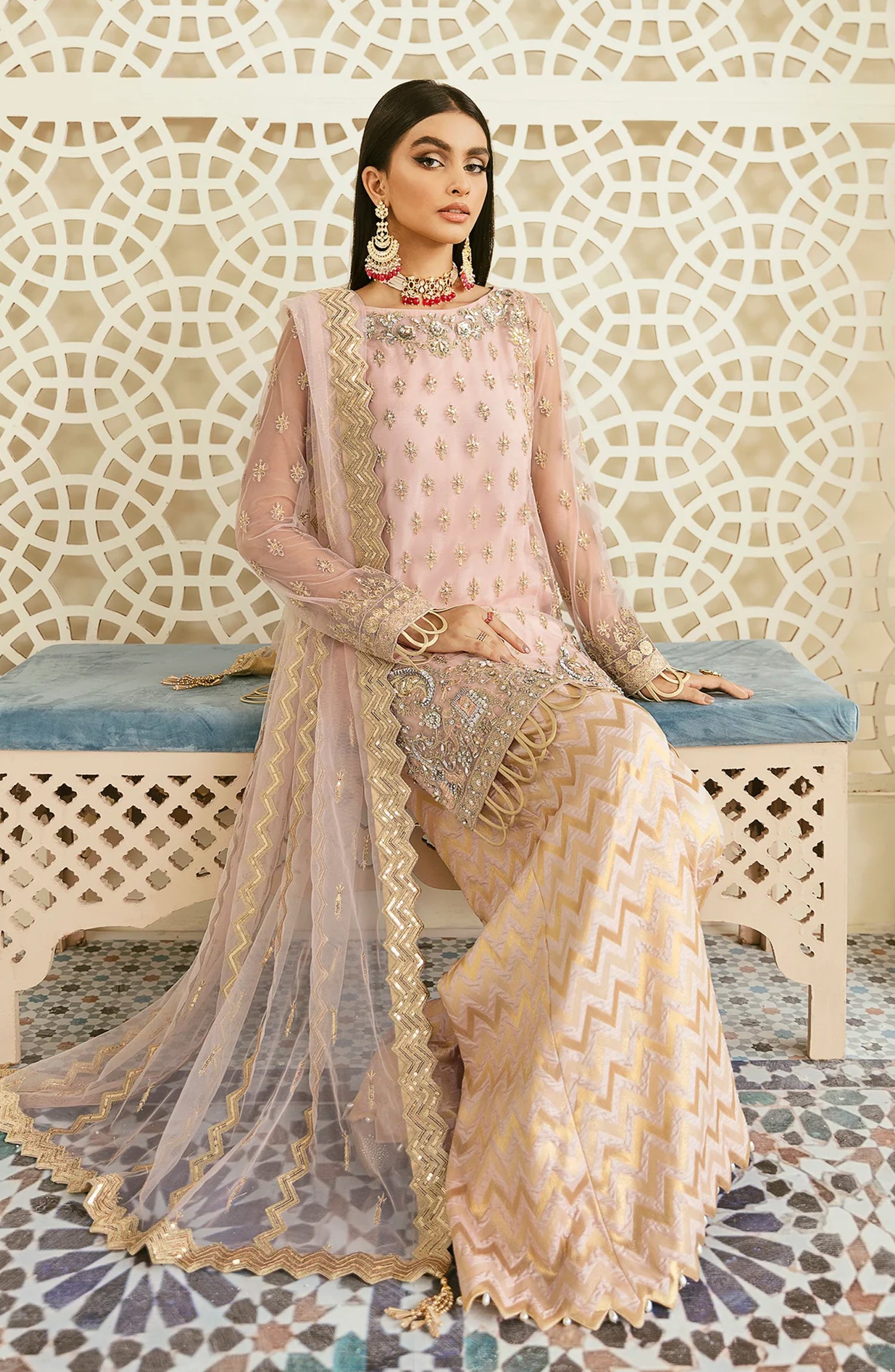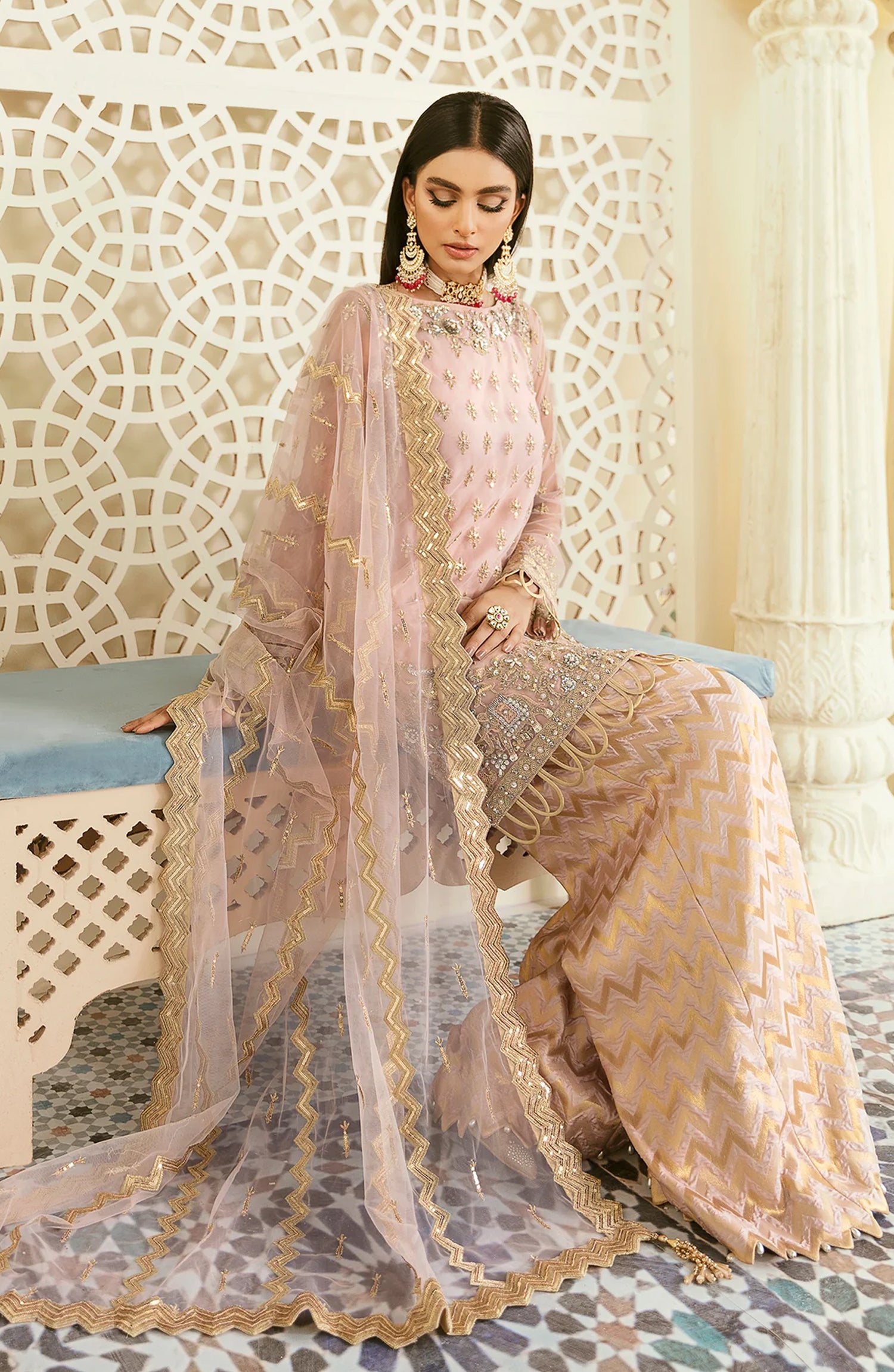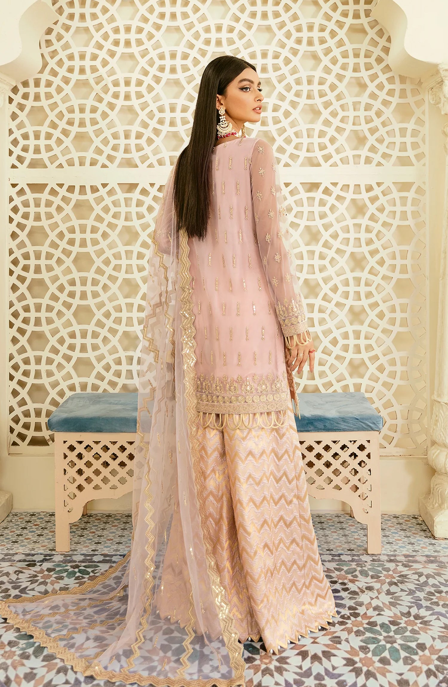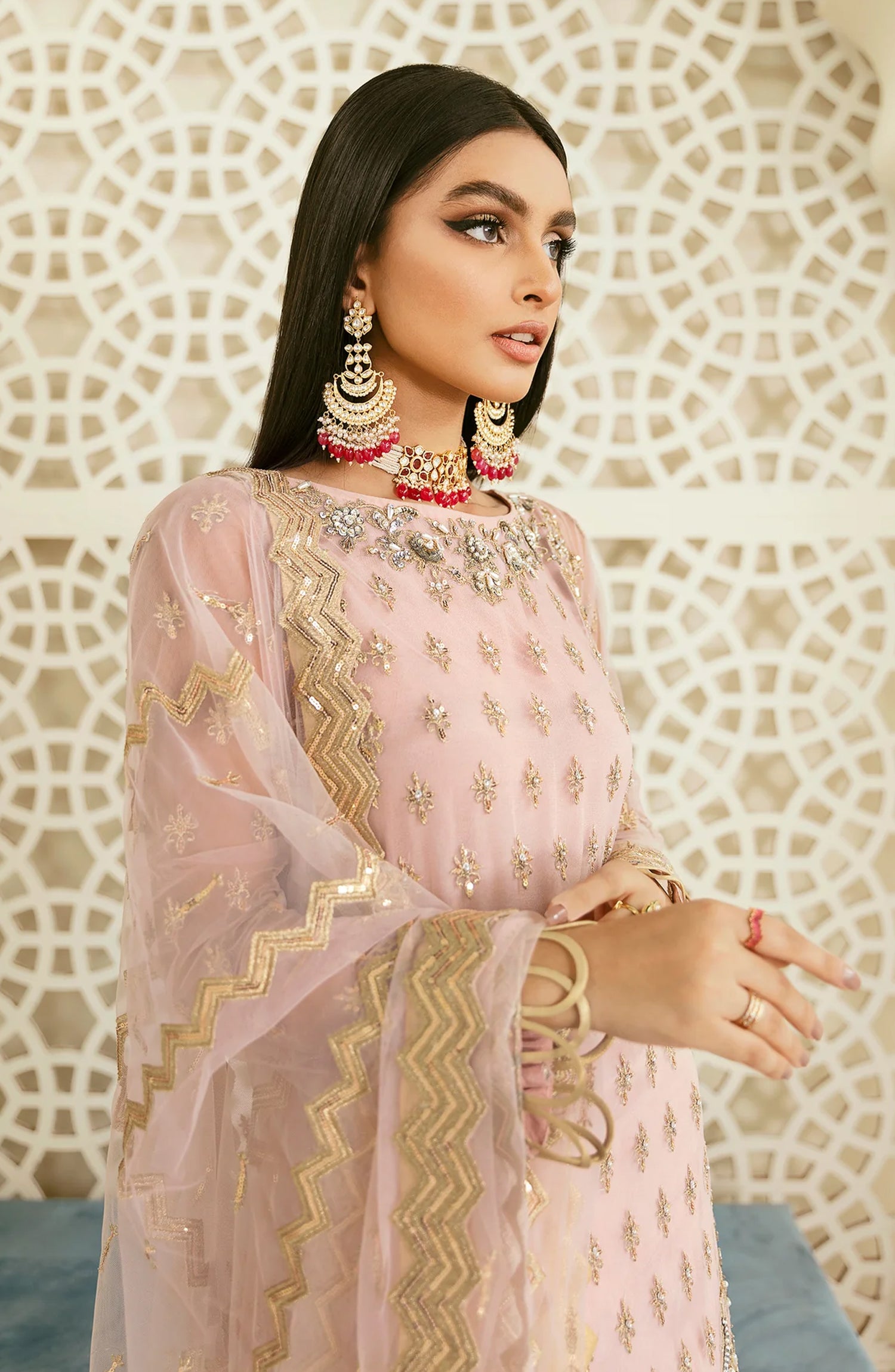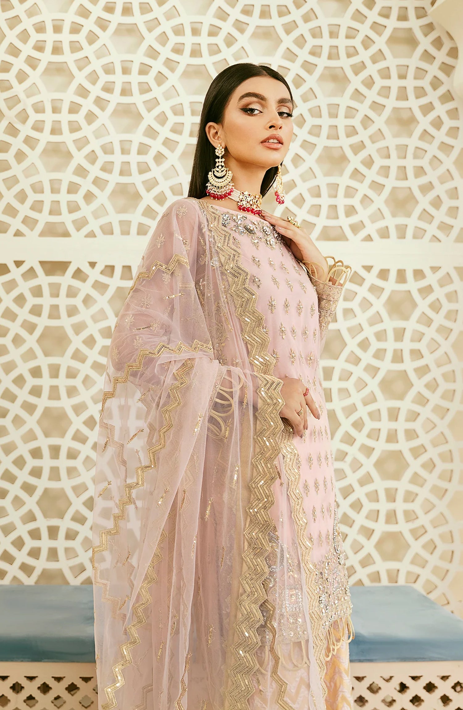 Elinor by Akbar Aslam Luxury Embroidered Net Unstitched 3 Piece Suit - Oriole - AKA25ELN - Pink - Festive Collection