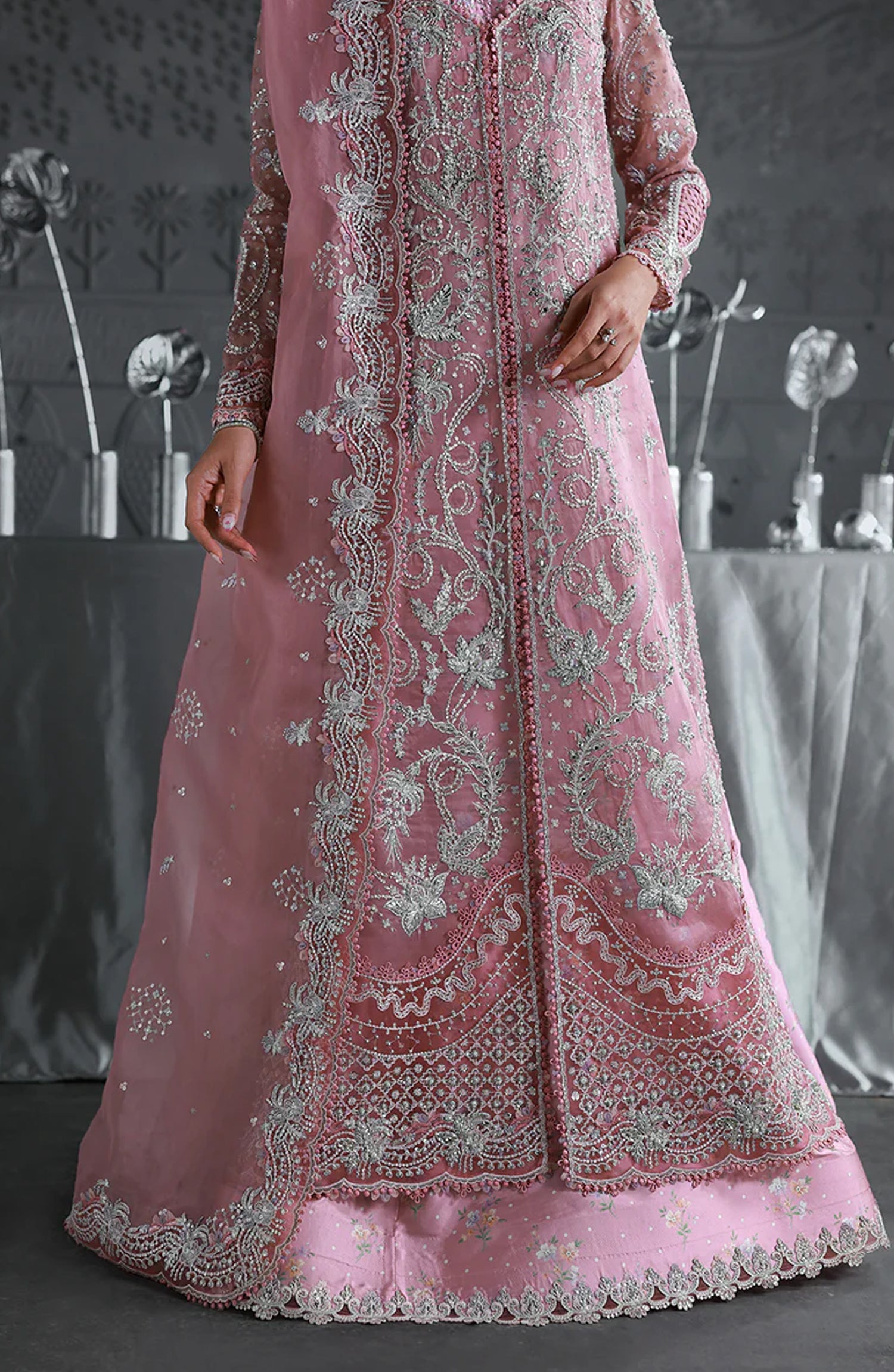 Embroidered Border (Front & Sleeves) (Hand Made)