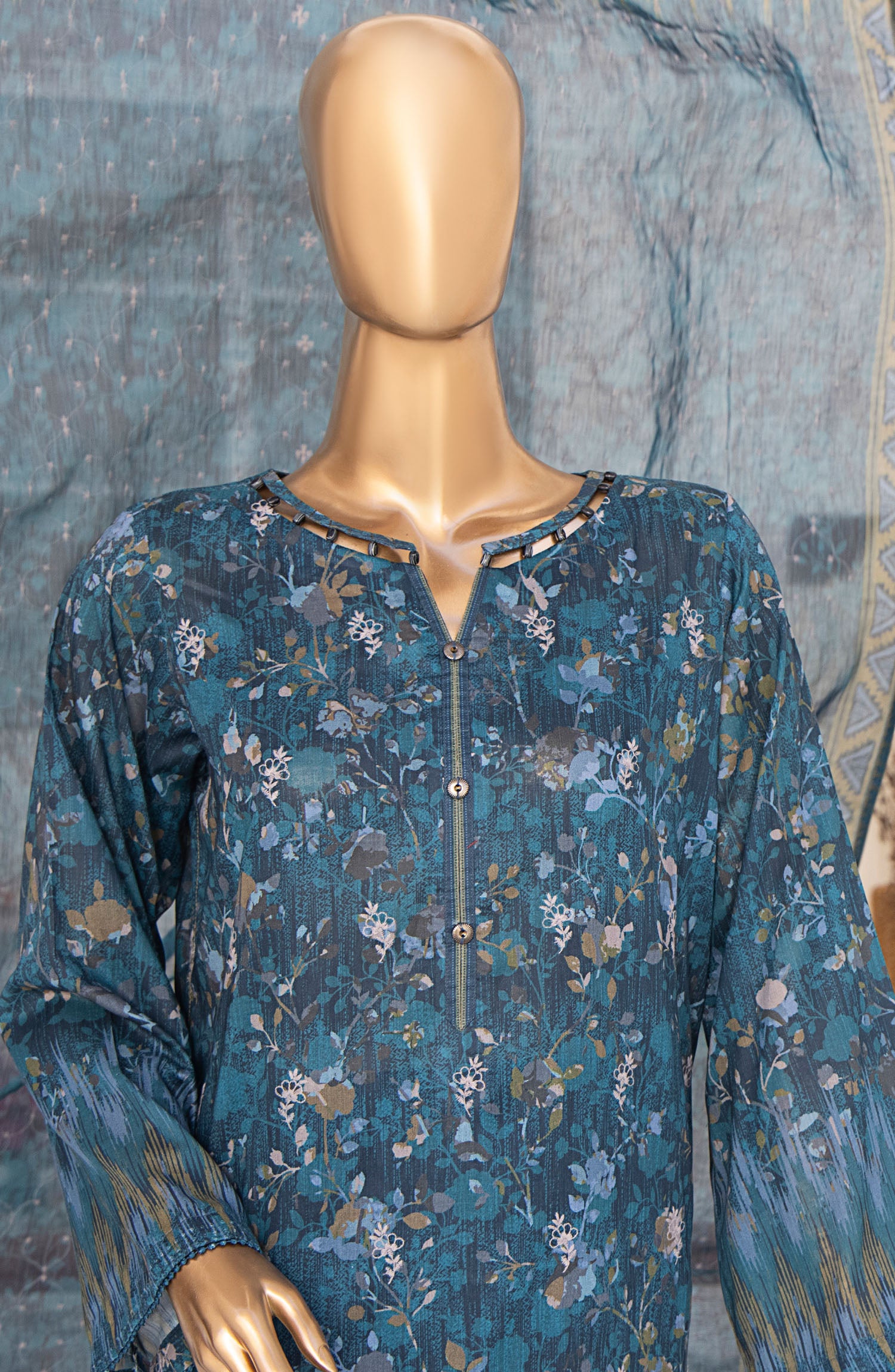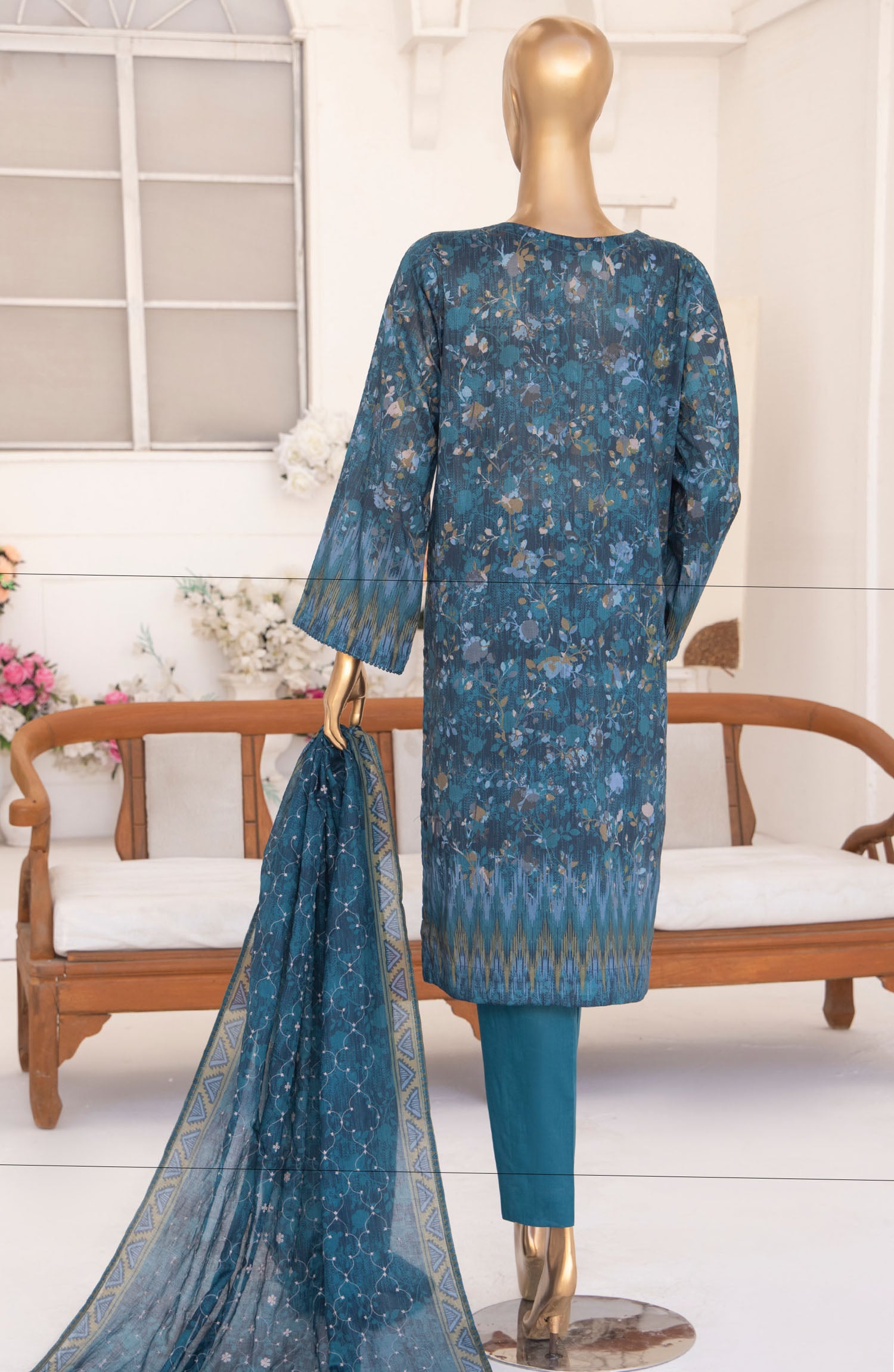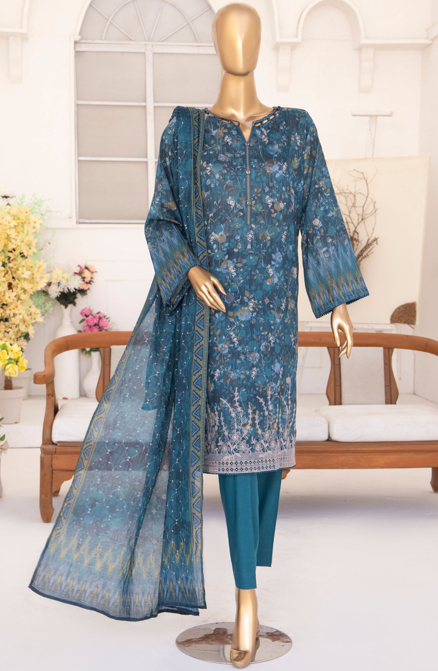HZ Textile Digital Printed Linen Slub Unstitched 3 Piece Suit - LSD-308 - HZ25LNSL - Blue - Winter Collection