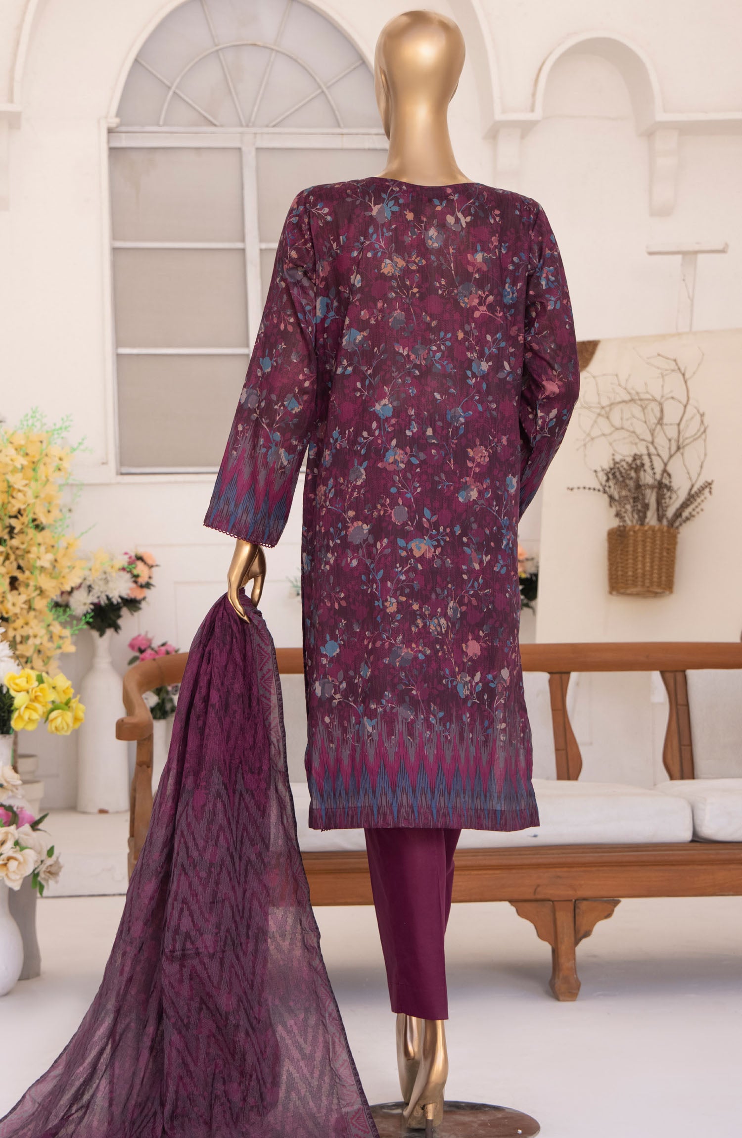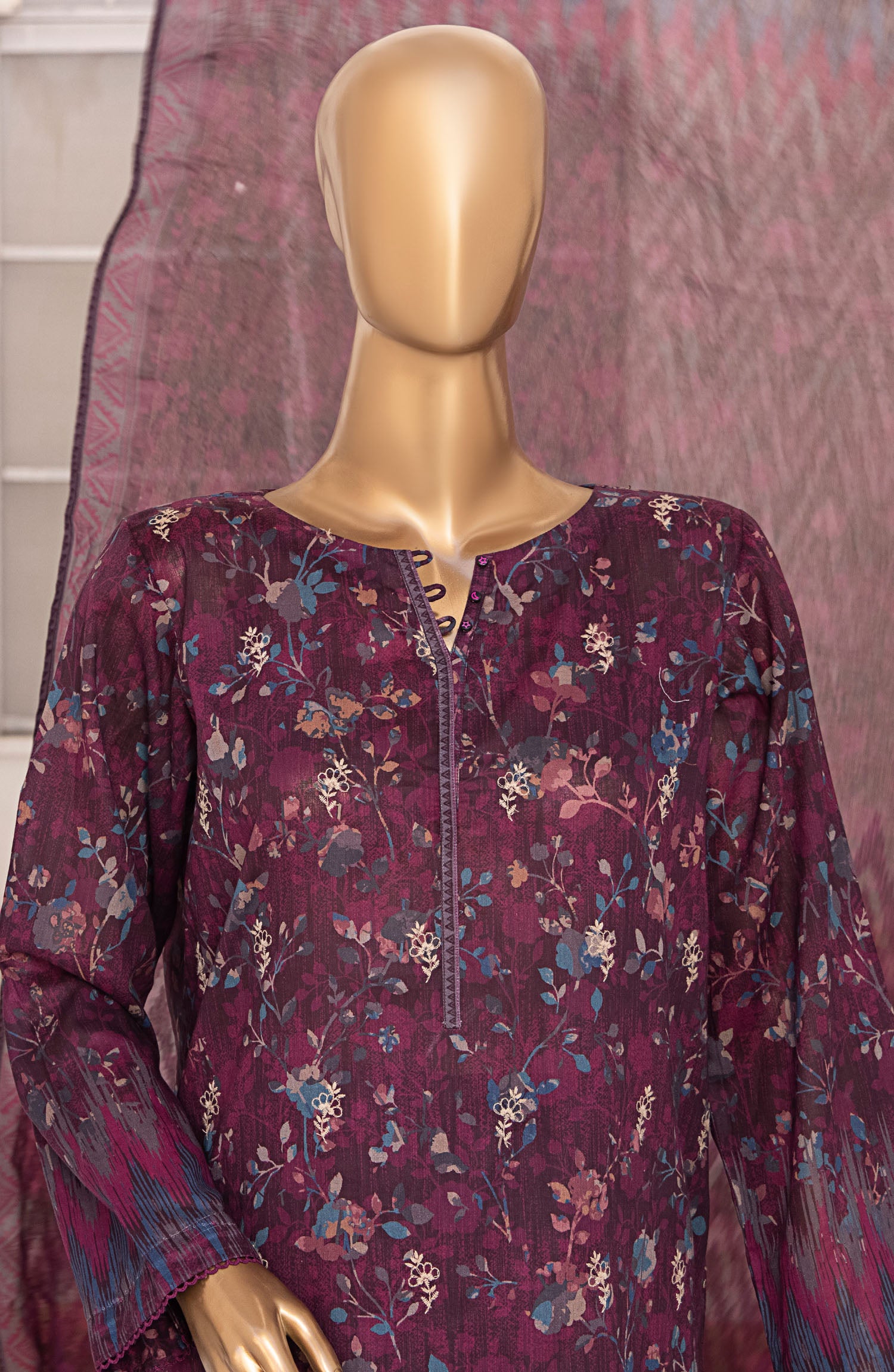HZ Textile Digital Printed Linen Slub Unstitched 3 Piece Suit - LSD-305 - HZ25LNSL - Pink - Winter Collection