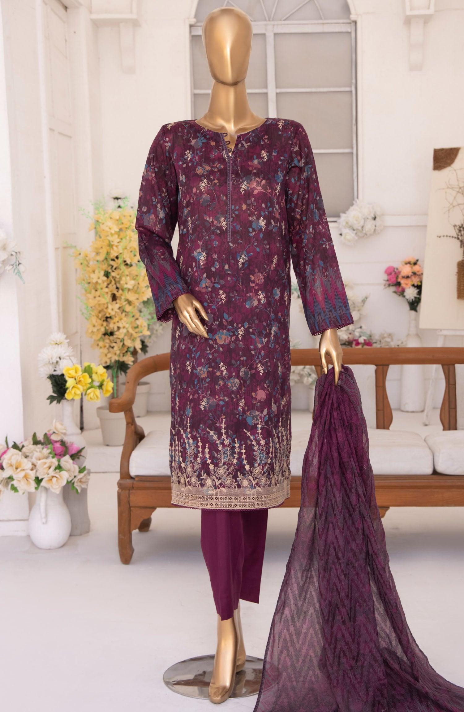 HZ Textile Digital Printed Linen Slub Unstitched 3 Piece Suit - LSD-303 - HZ25LNSL - Pink - Winter Collection