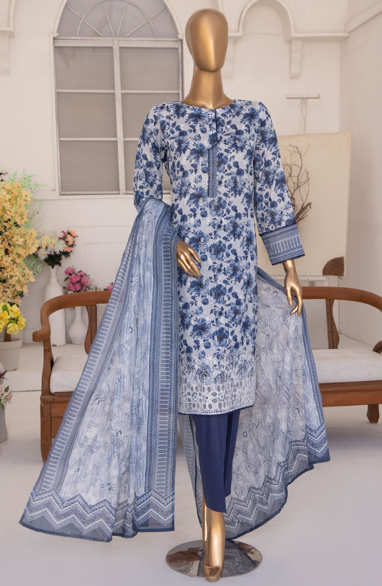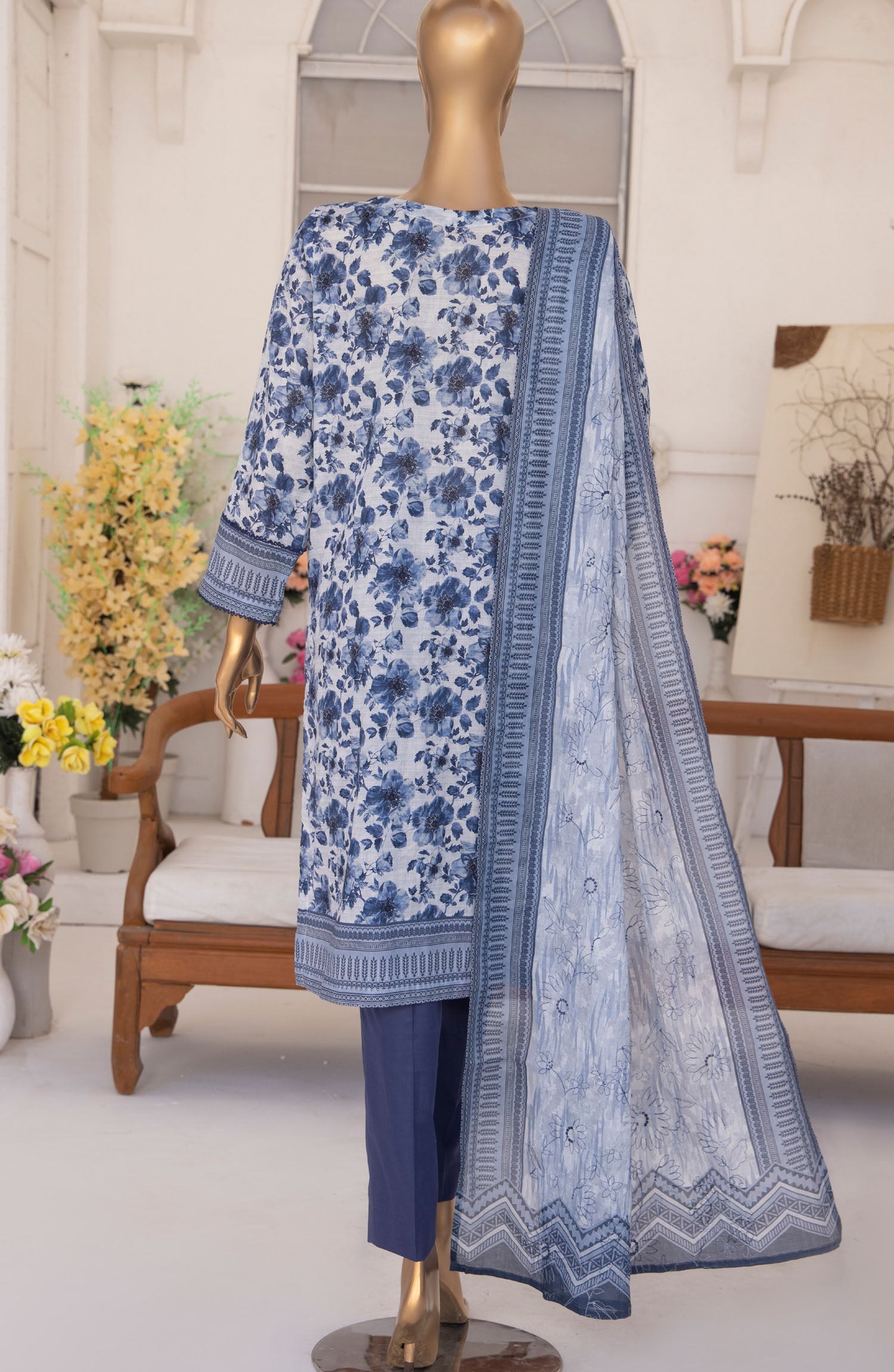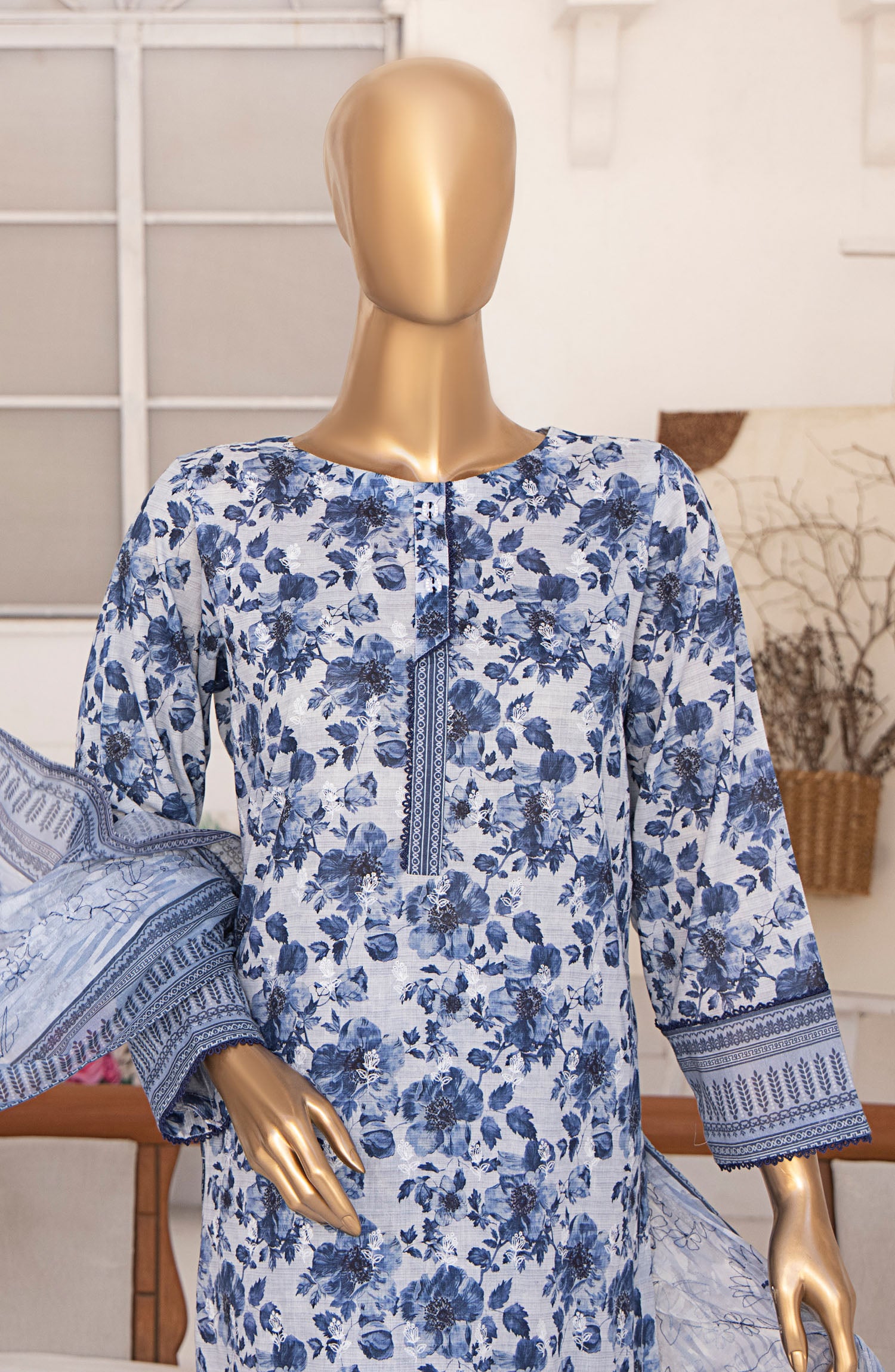 HZ Textile Digital Printed Linen Slub Unstitched 3 Piece Suit - LSD-308 - HZ25LNSL - Blue - Winter Collection