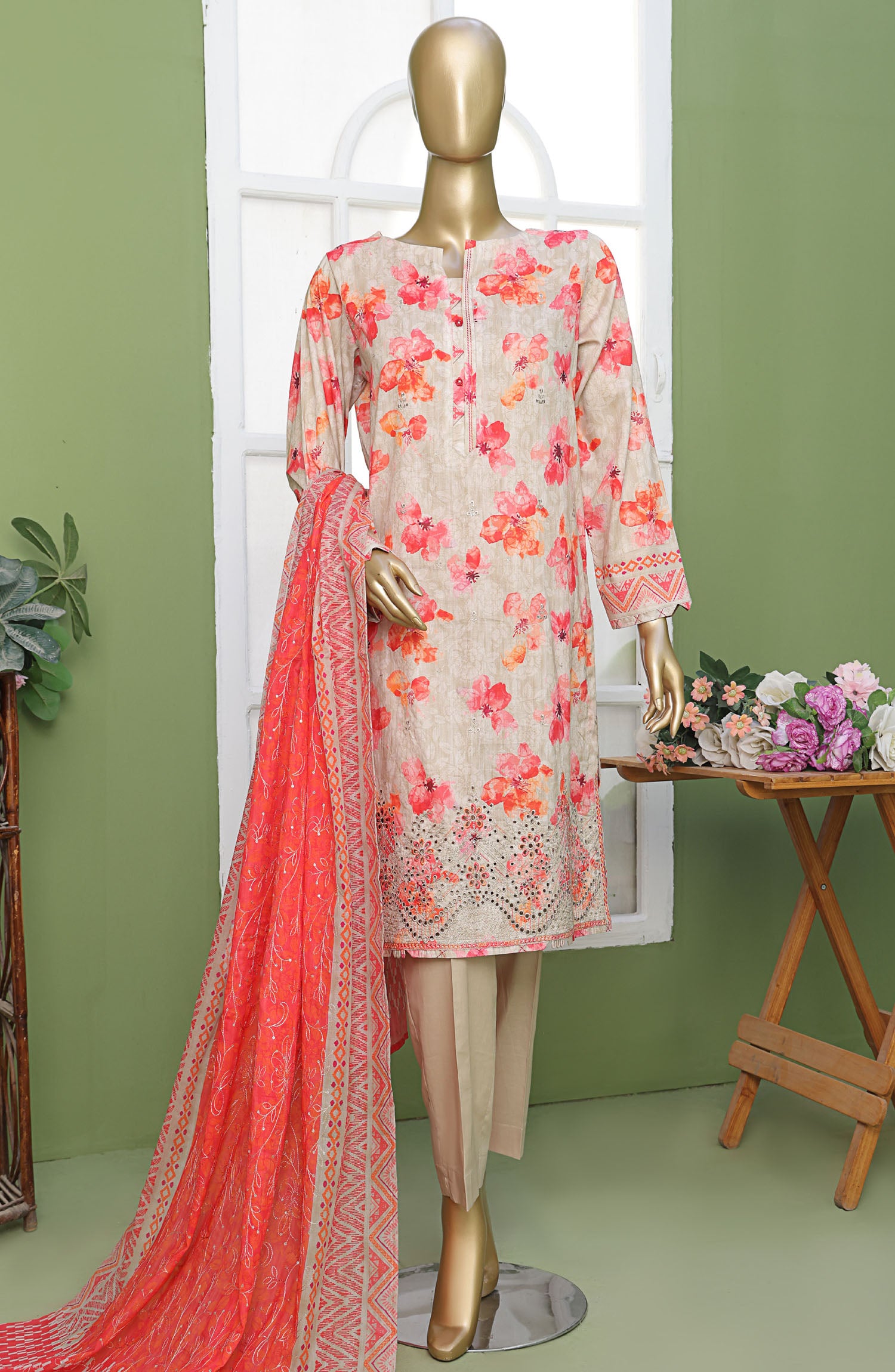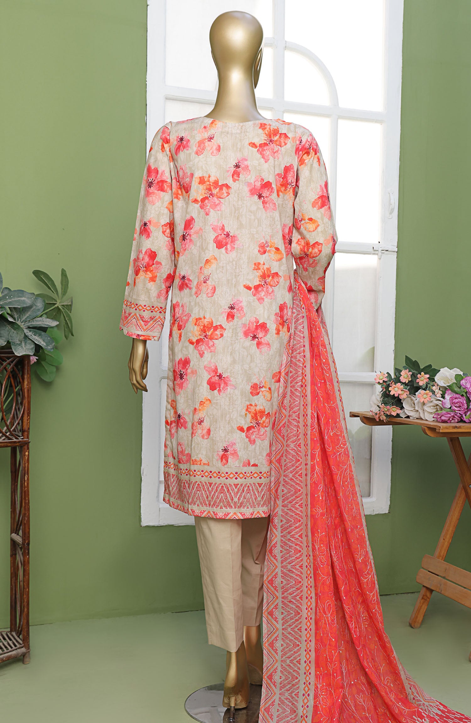 Modest Printed Cotton Stitched 3 Piece Suit - 9705-Wht - MOD25PRF - White - Festive Girls Collection