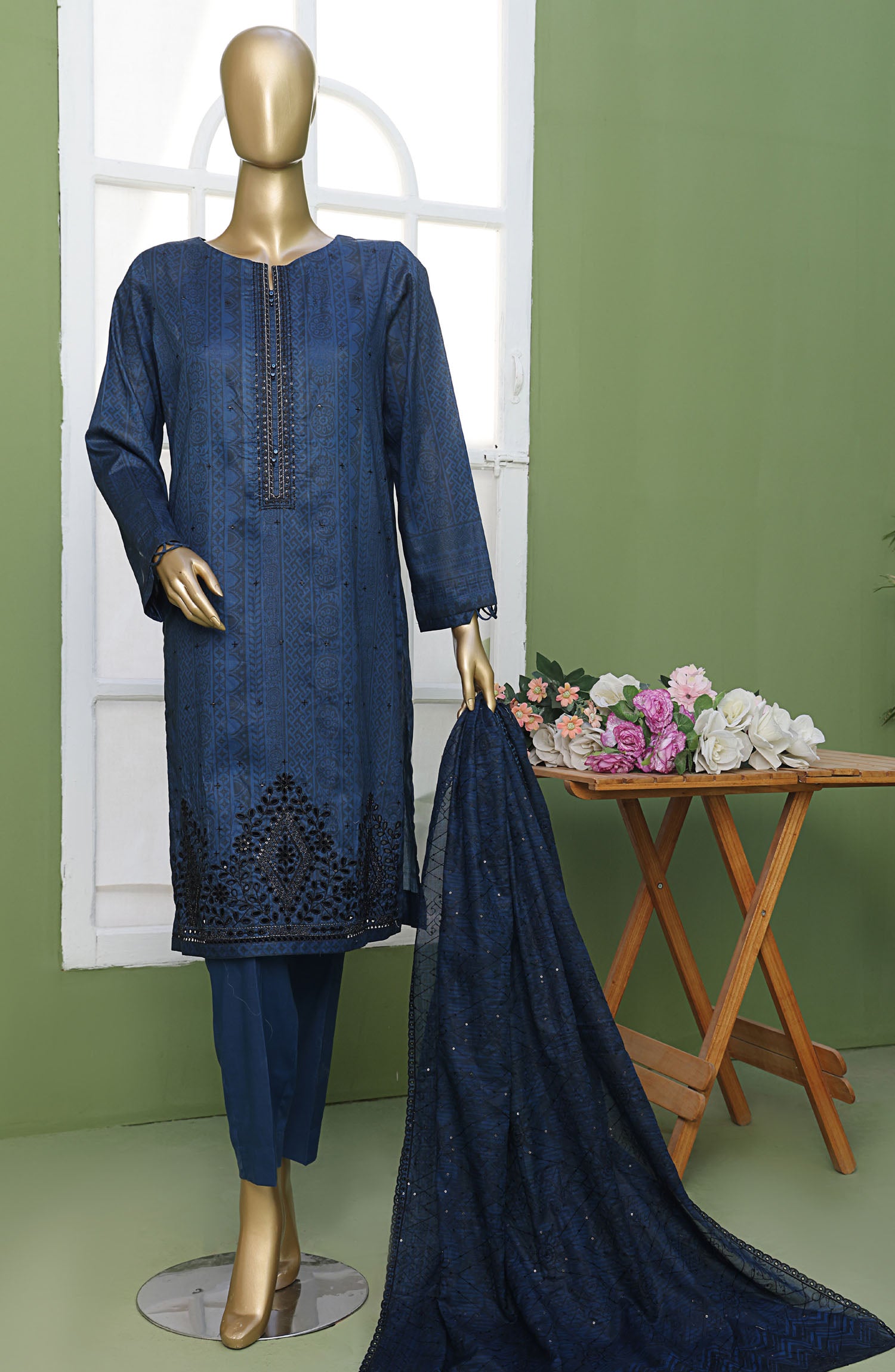 The standard style comes as a long-sleeved kameez with dupatta and trouser/shawlar.