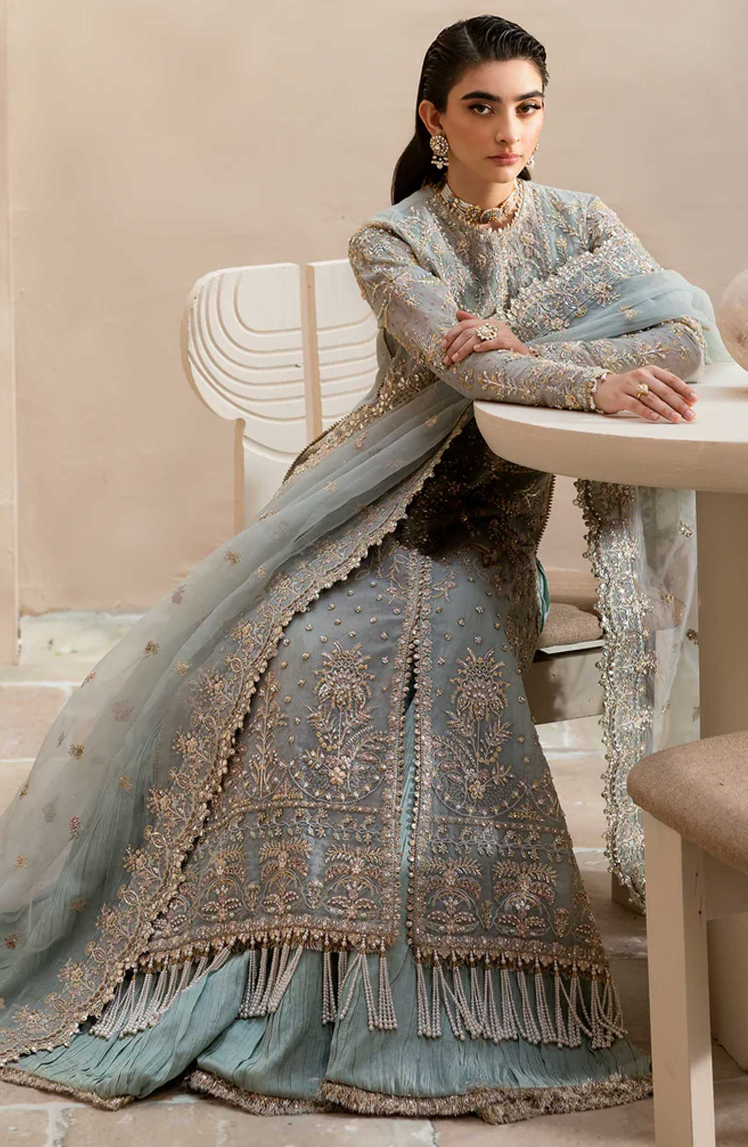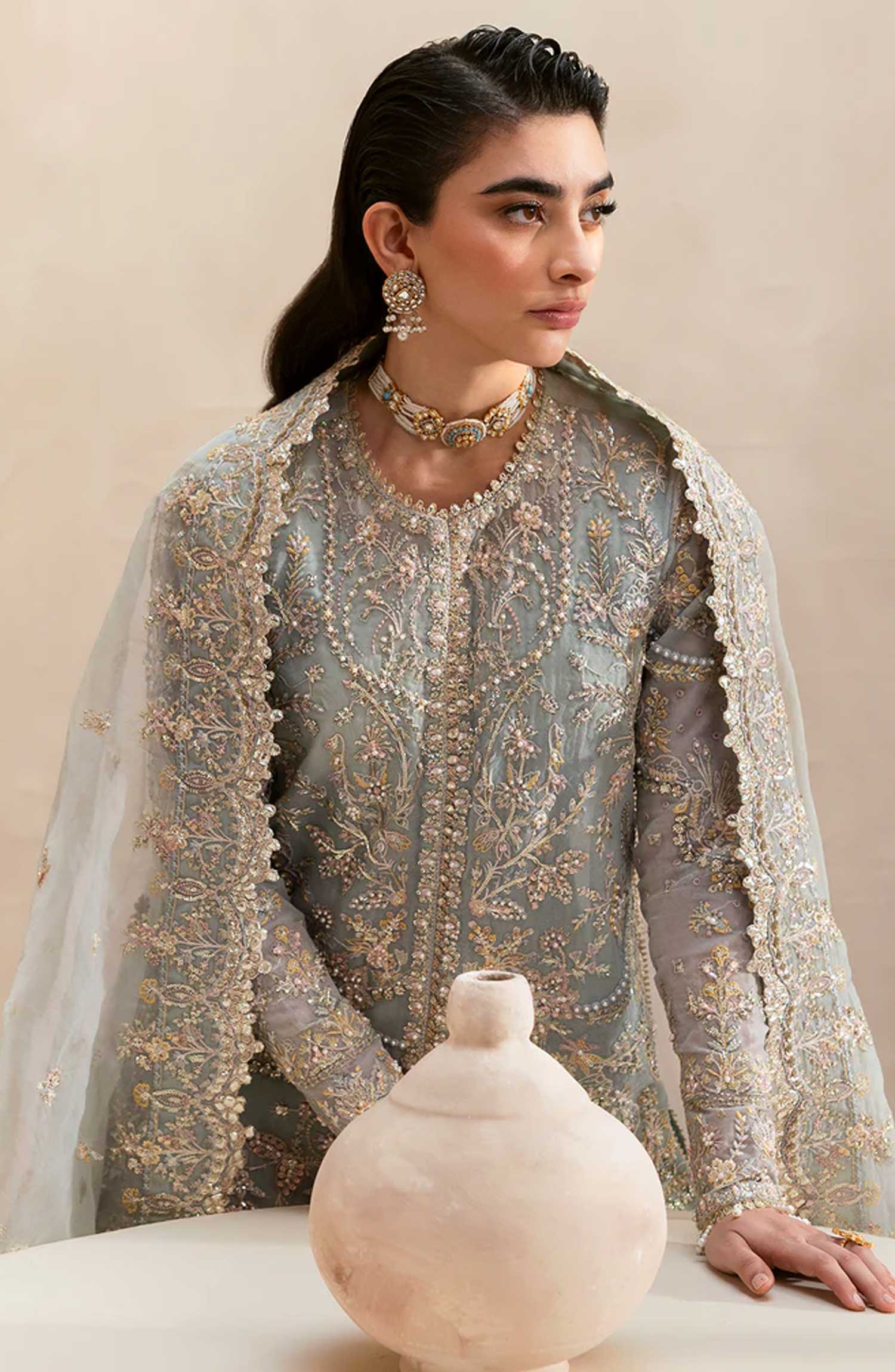 Clay and Couture Luxury Unstitched Collection By Emaan Adeel has been styled in the image for photography and illustrative purposes.