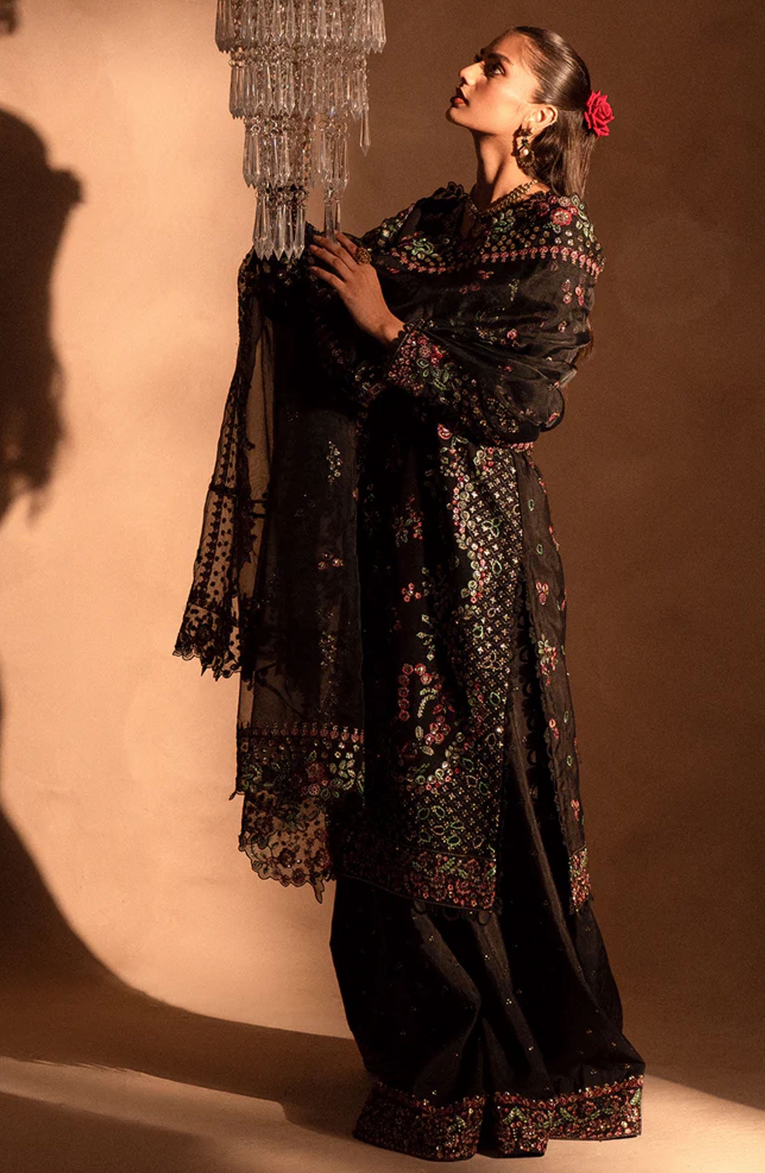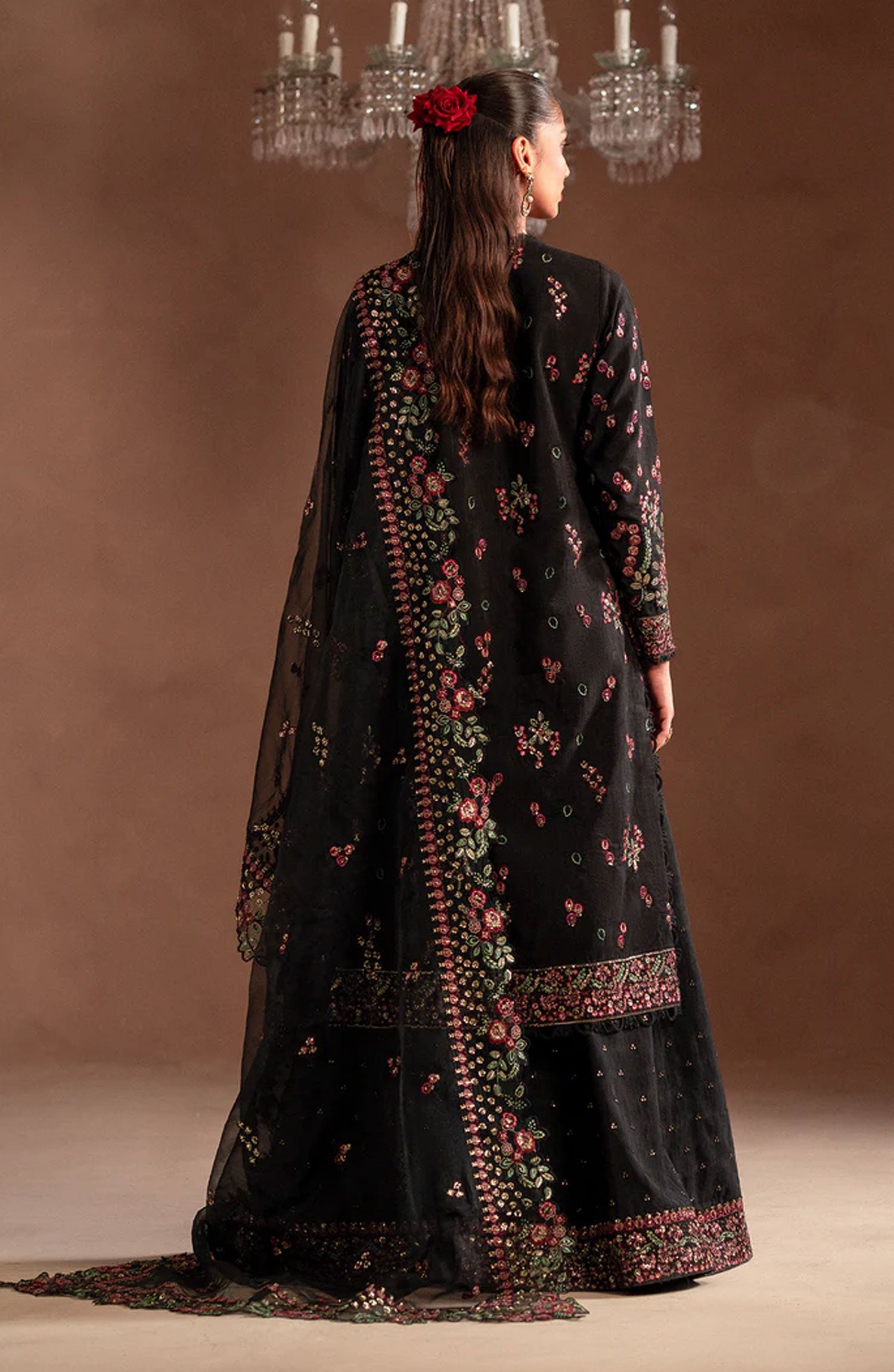 Emaan Adeel Selene Unstitched Raw Silk Collection has been styled in the image for photography and illustrative purposes.