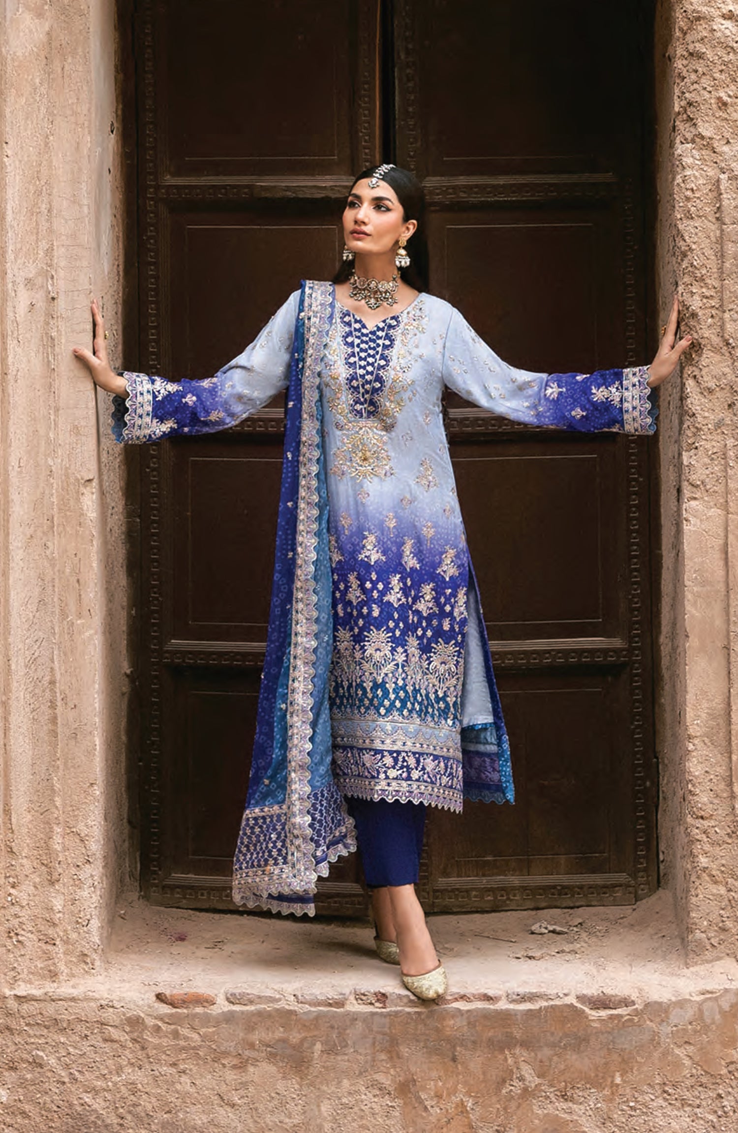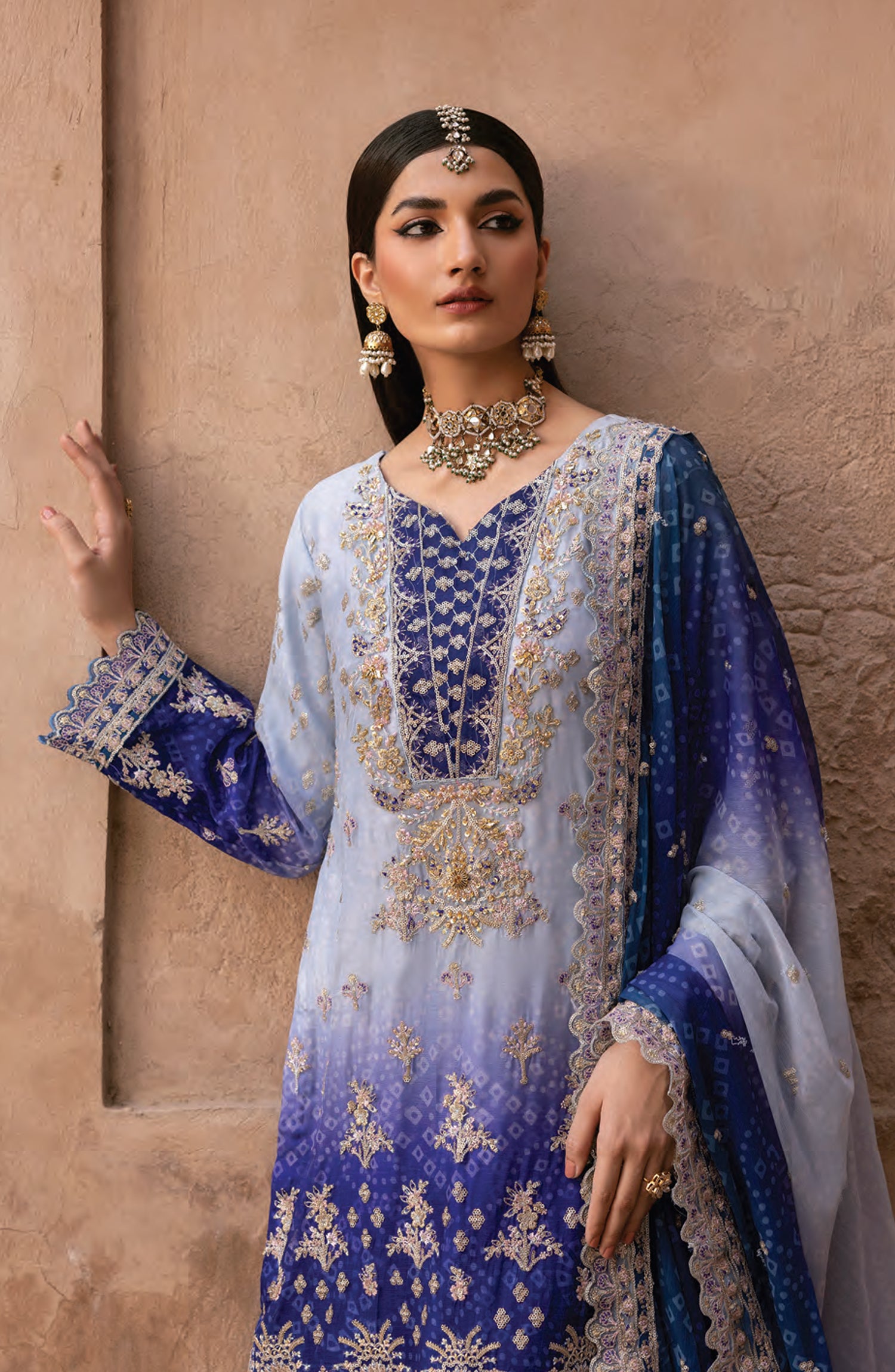 Digital Print Chiffon Embroidered Hand Made Neck Line.