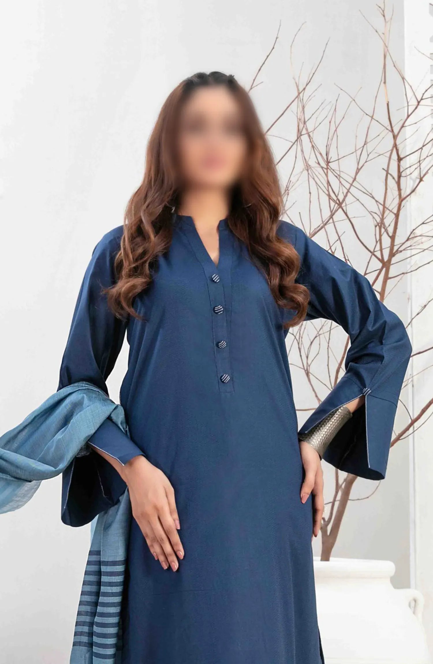 Sadabahar Premium Embroidered Cross Texture Stitched 3 Piece Suit - Design-03 - SBD25FEST - Blue - Winter Collection