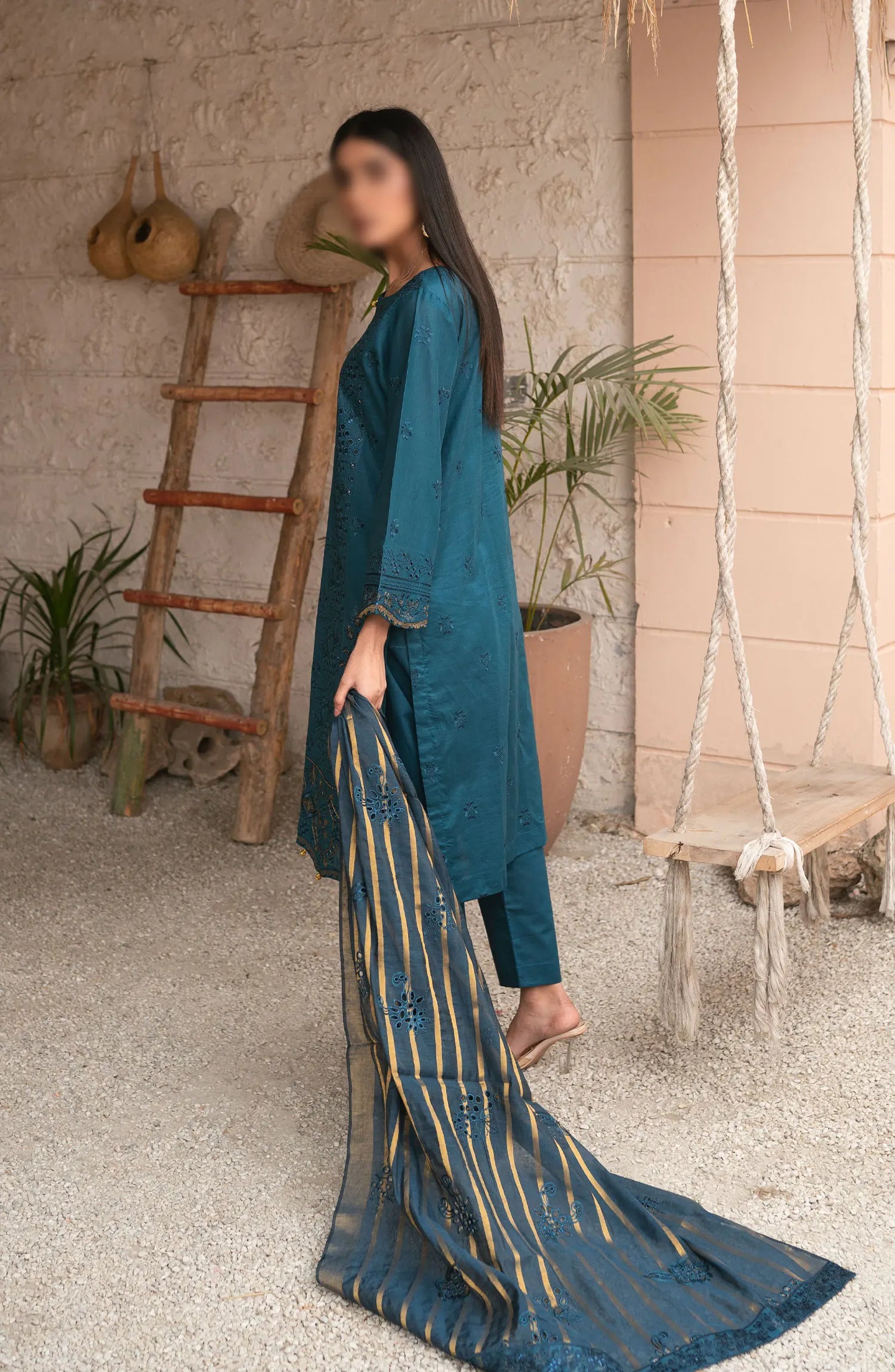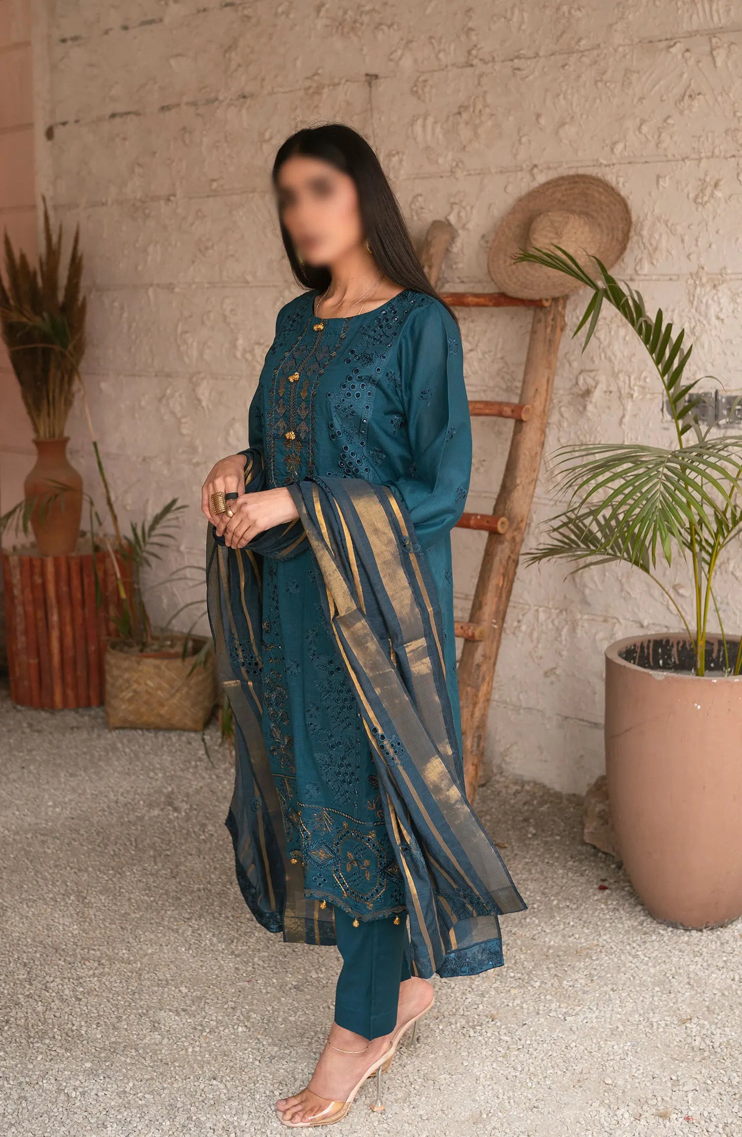 Modest Embroidered Chiffon Stitched 3 Piece Suit - 9615-Nblu - MOD25PRF - Blue - Festive Girls Collection
