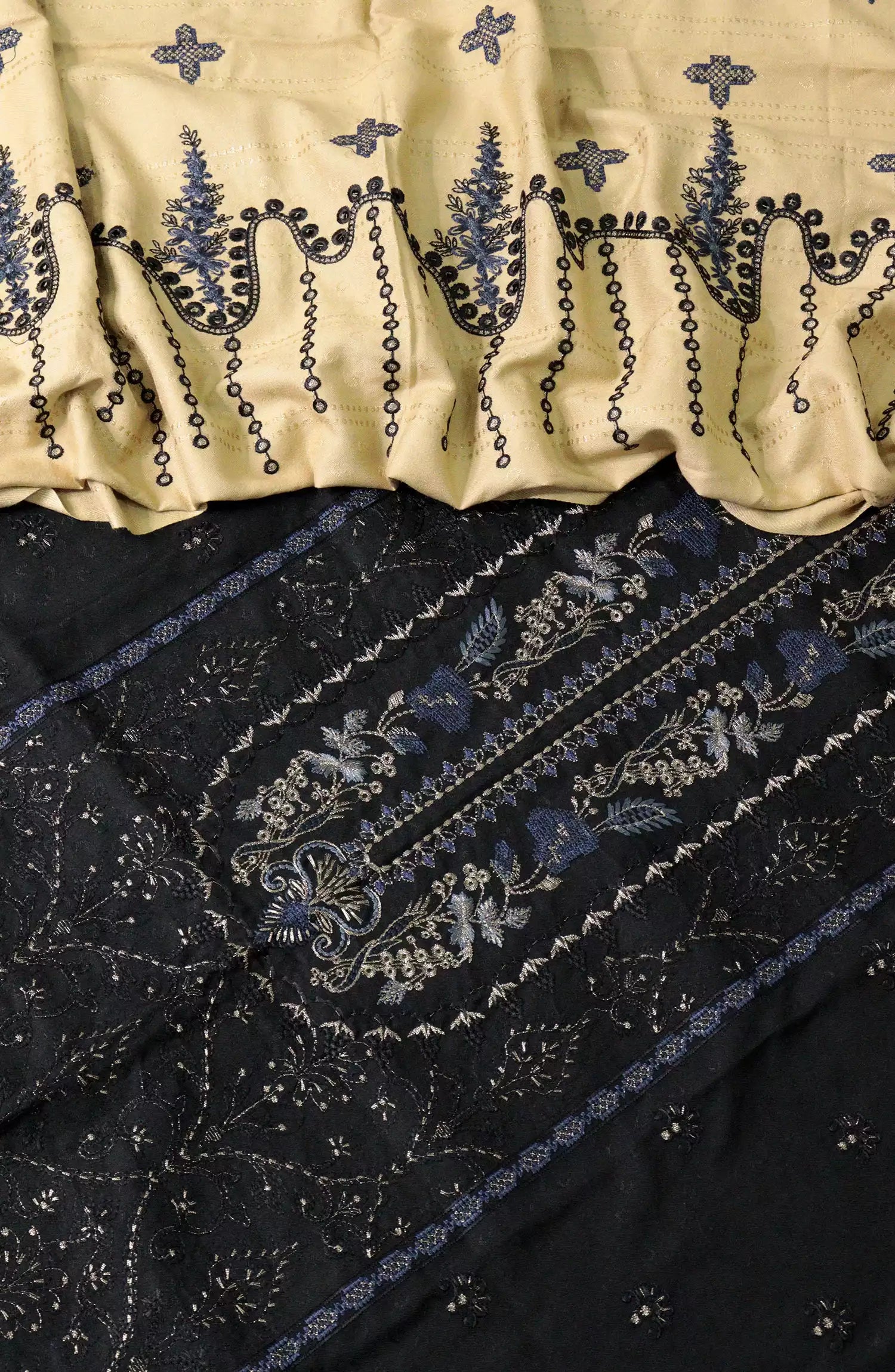 Embroidered Jacquard Wool Collection by Marjjan has been styled in the image for photography and illustrative purposes.