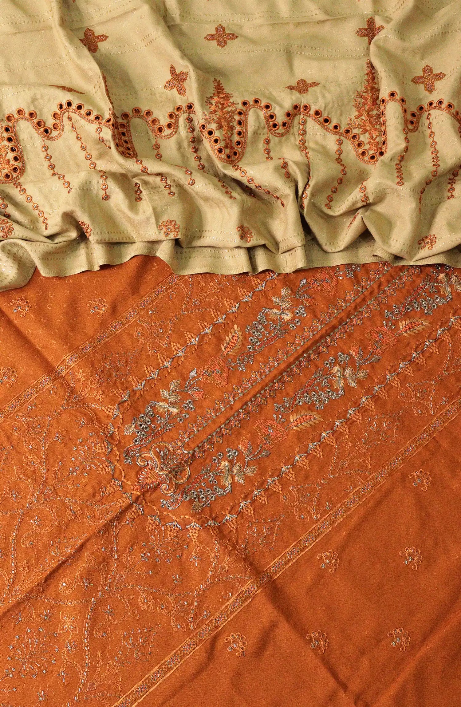 Embroidered Jacquard Wool Collection by Marjjan has been styled in the image for photography and illustrative purposes.