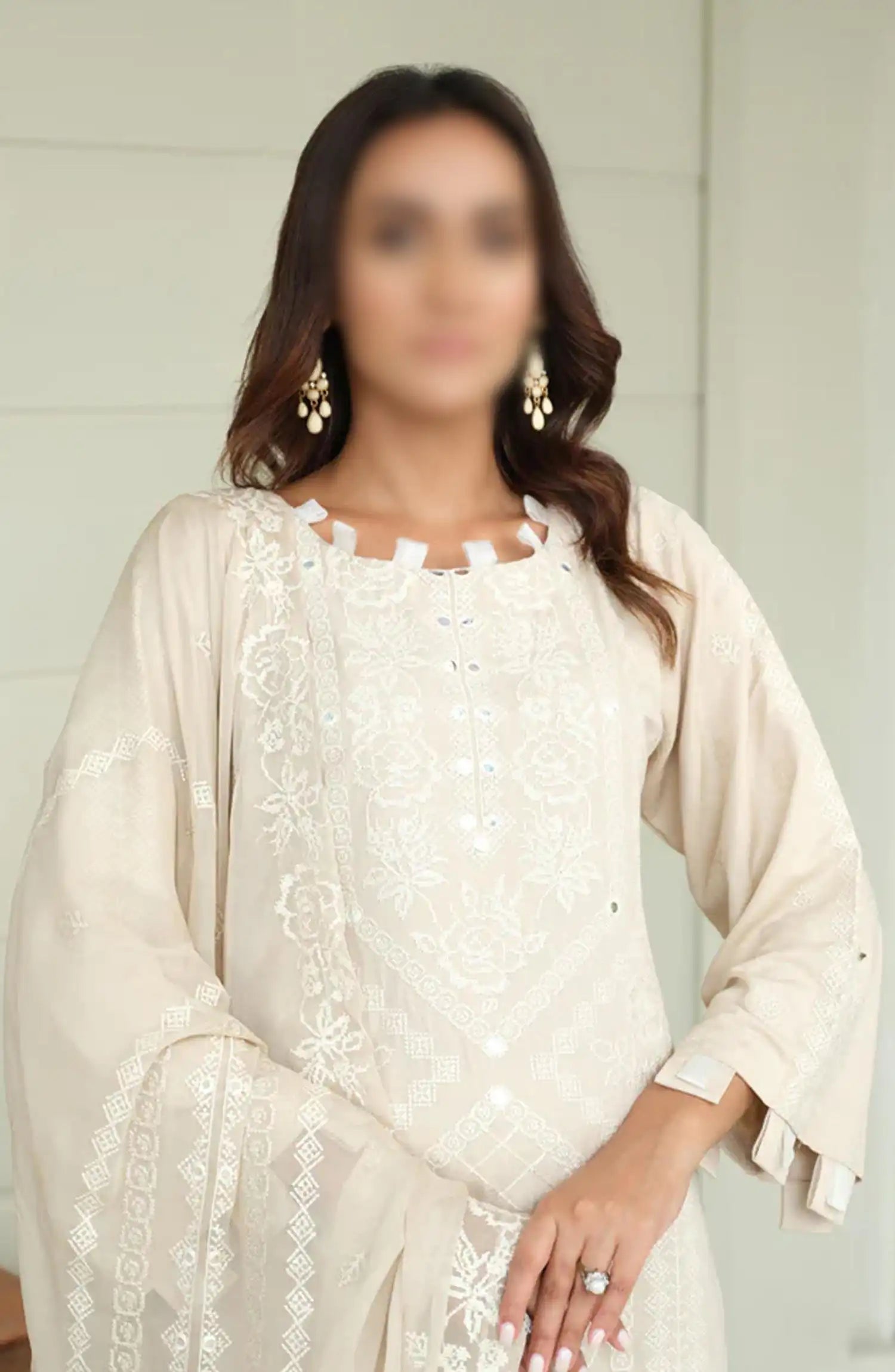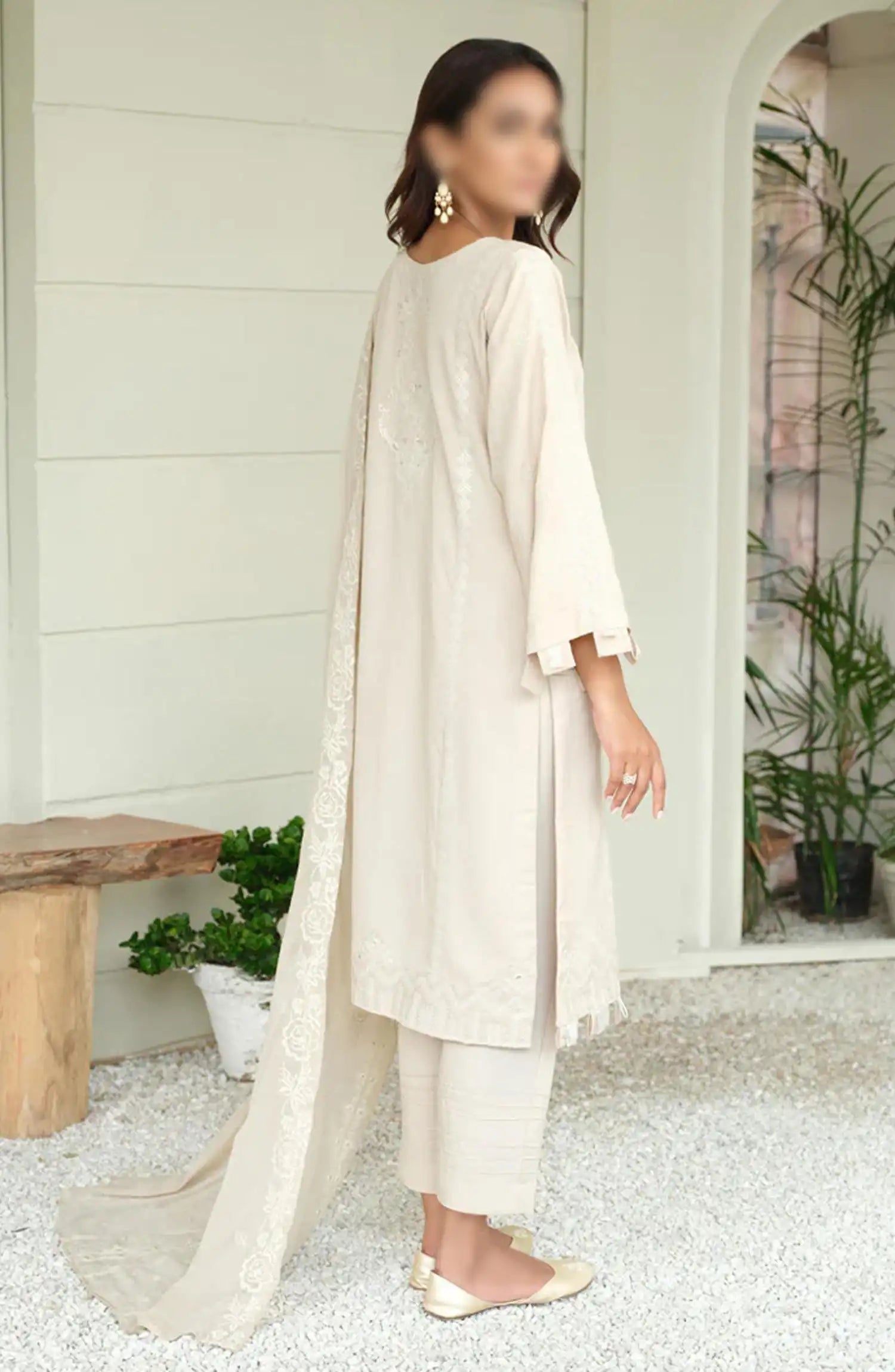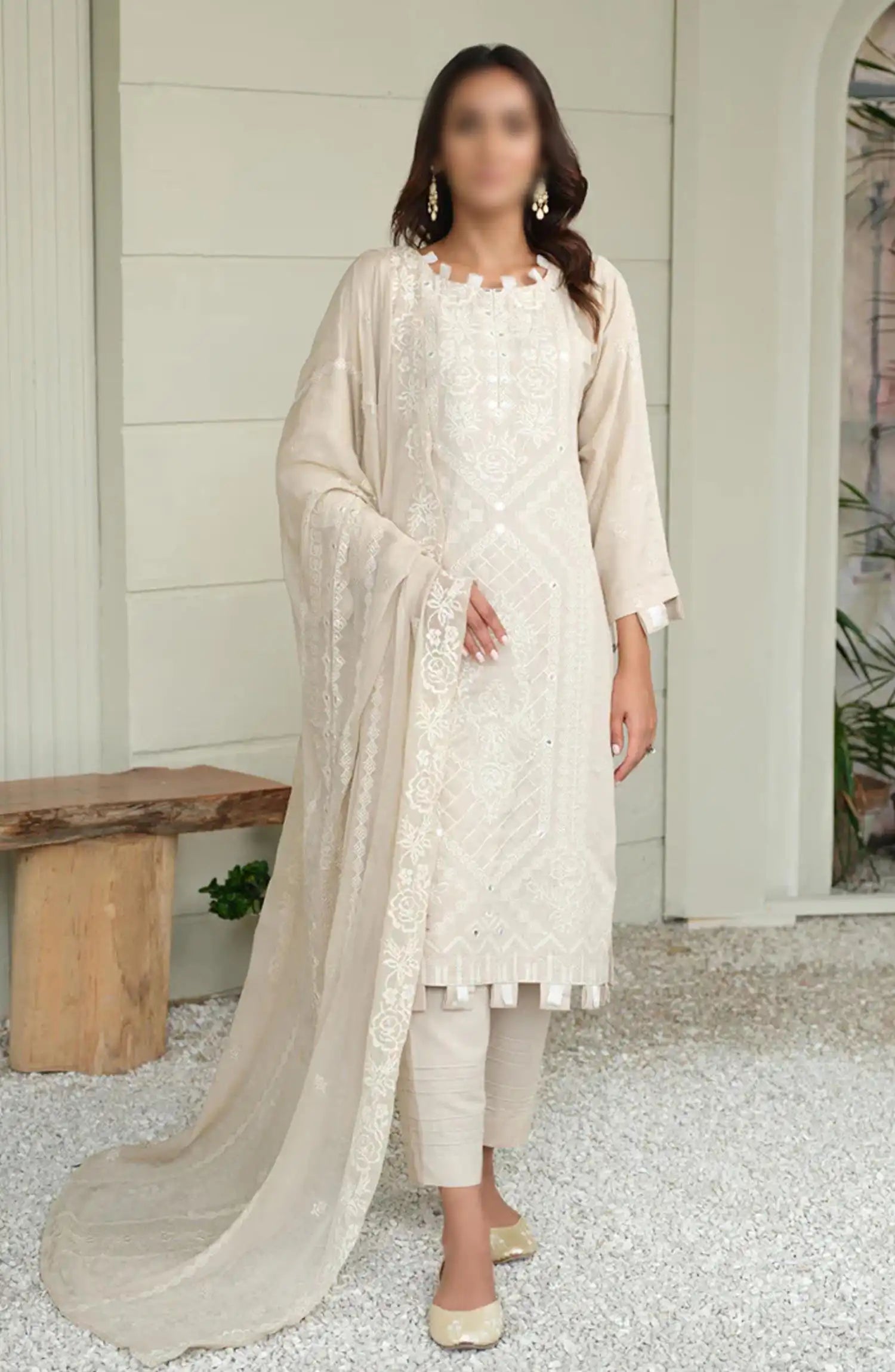 Embroidered Karandi Collection with Embroidered Chiffon Dupatta by Marjjan - SKC-101 (OFF WHITE)