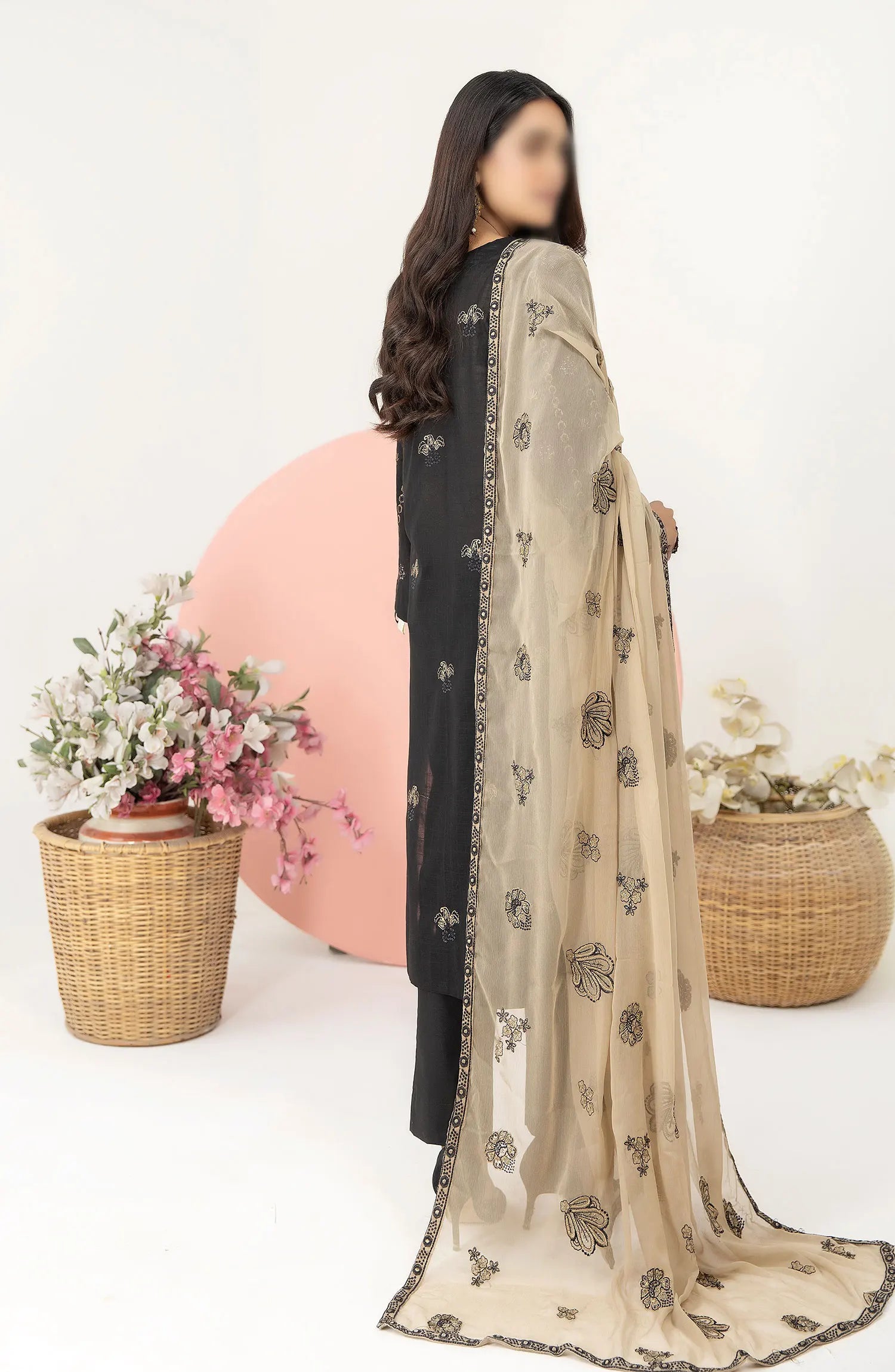 Embroidered Lawn Collection with Emb Chiffon Dupatta by Marjjan has been styled in the image for photography and illustrative purposes.
