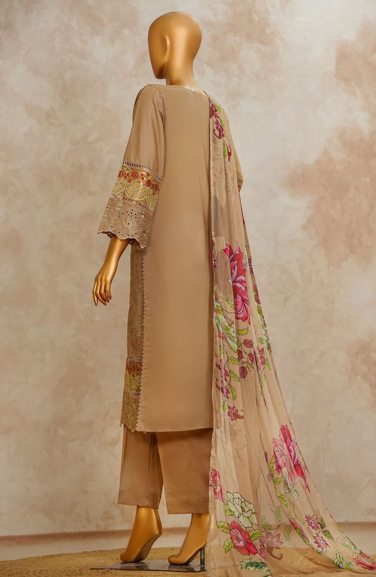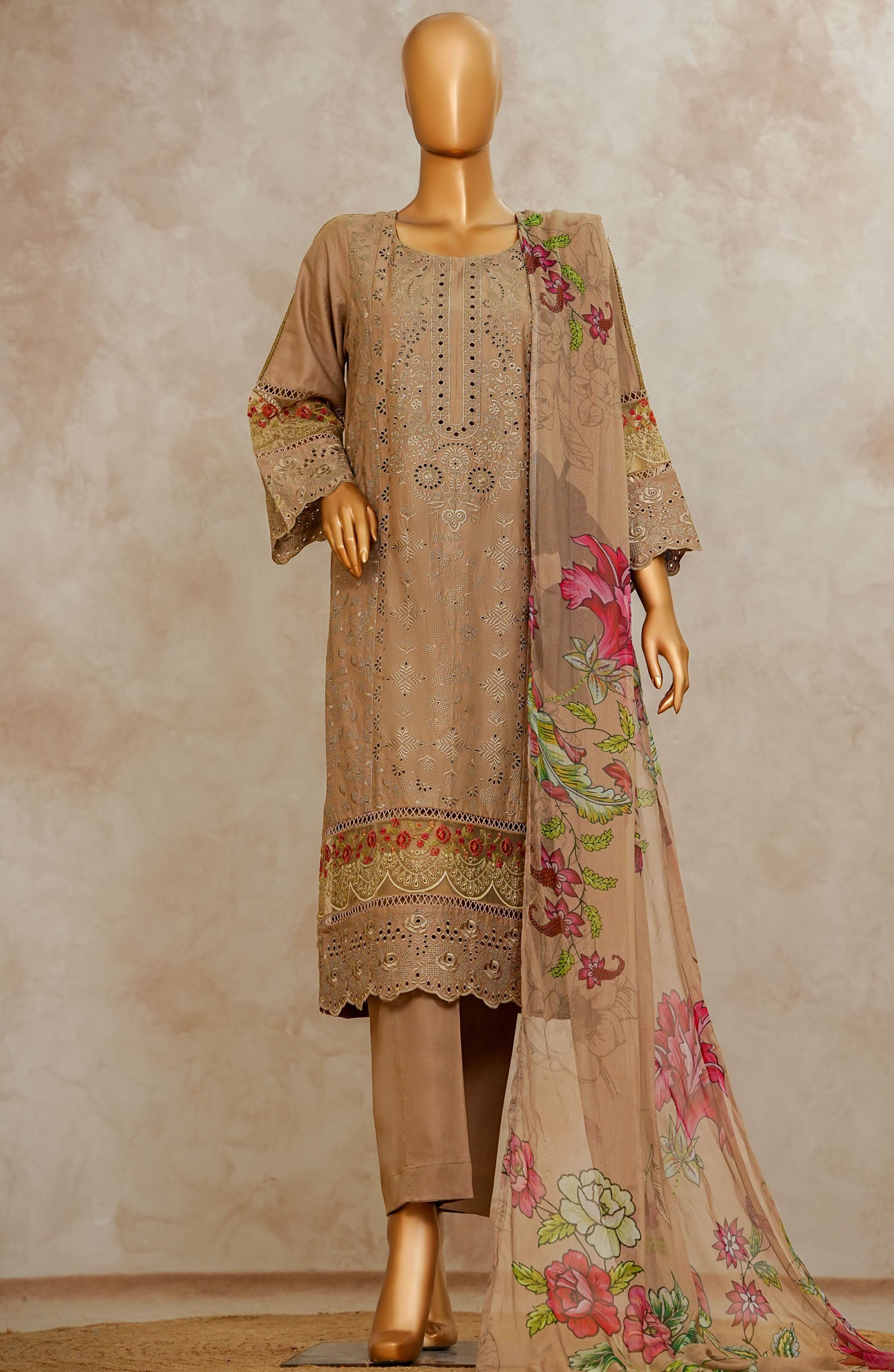 The standard style comes as a long-sleeved kameez with dupatta and trouser/shawlar.