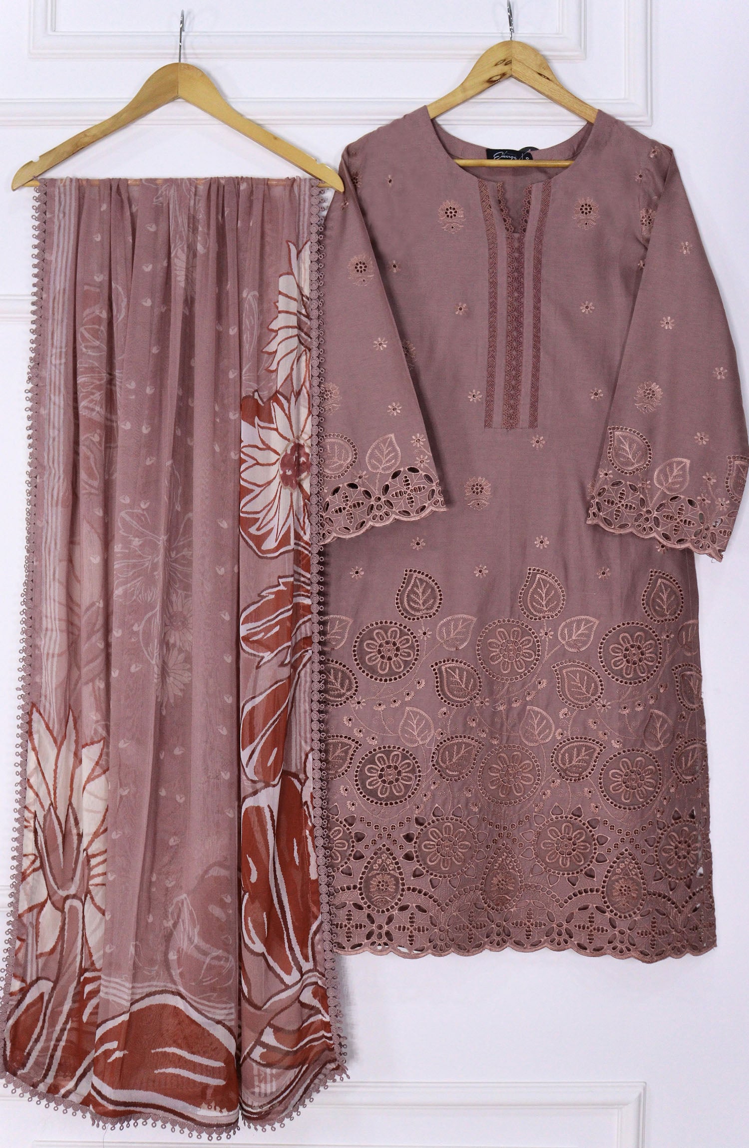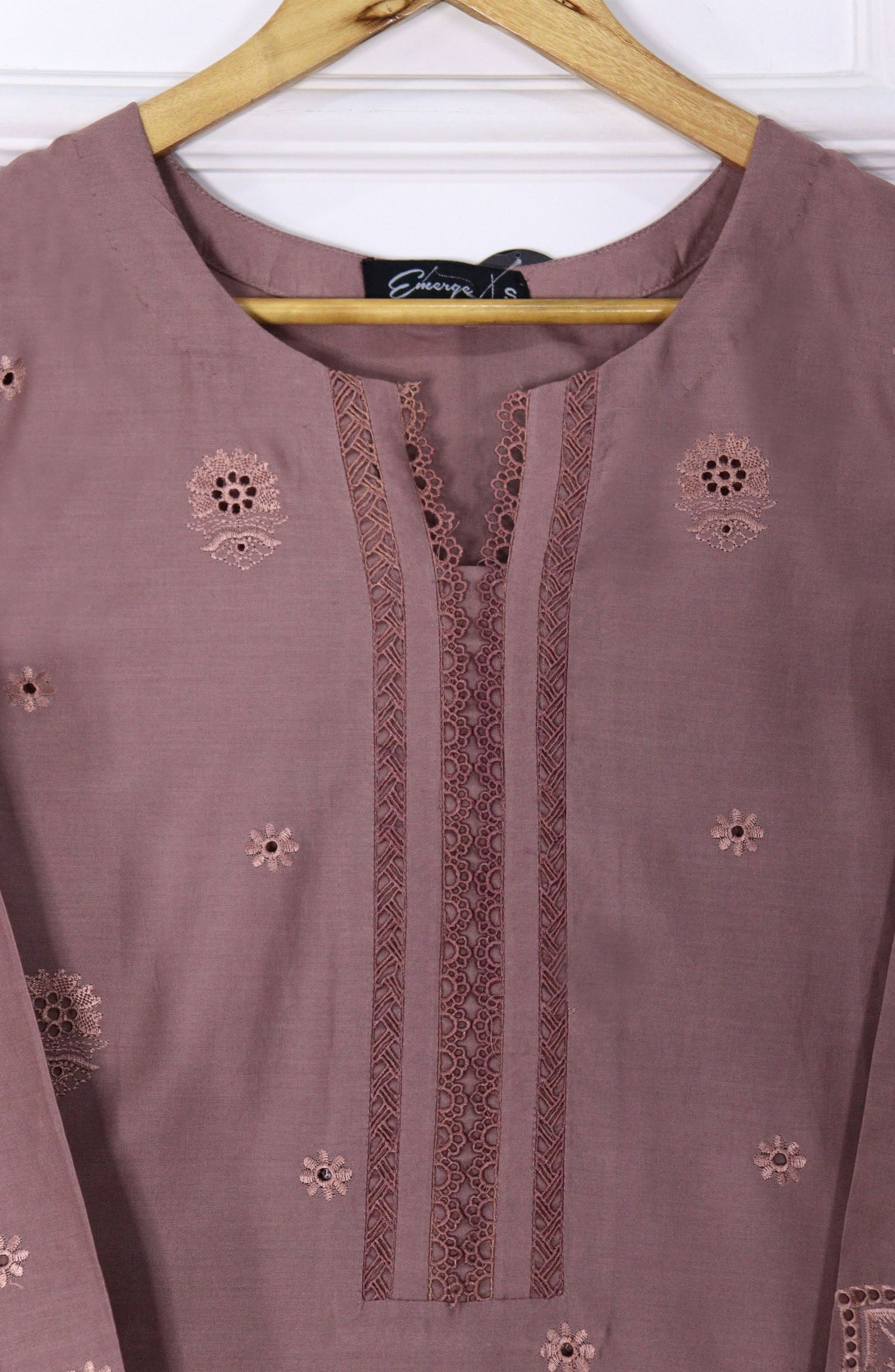 Schiffli Embroidered Fine Lawn stitched shirt with embellishments