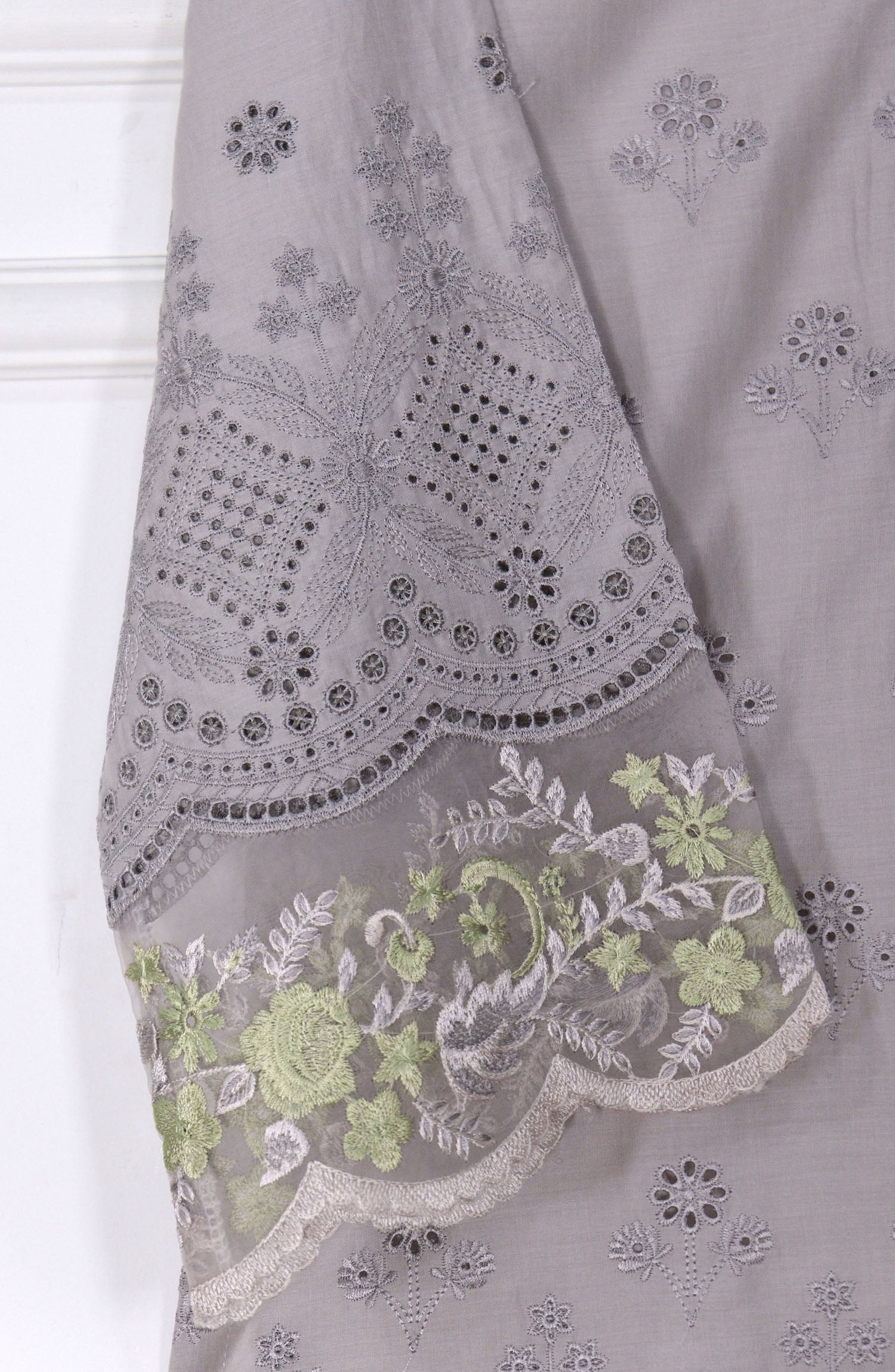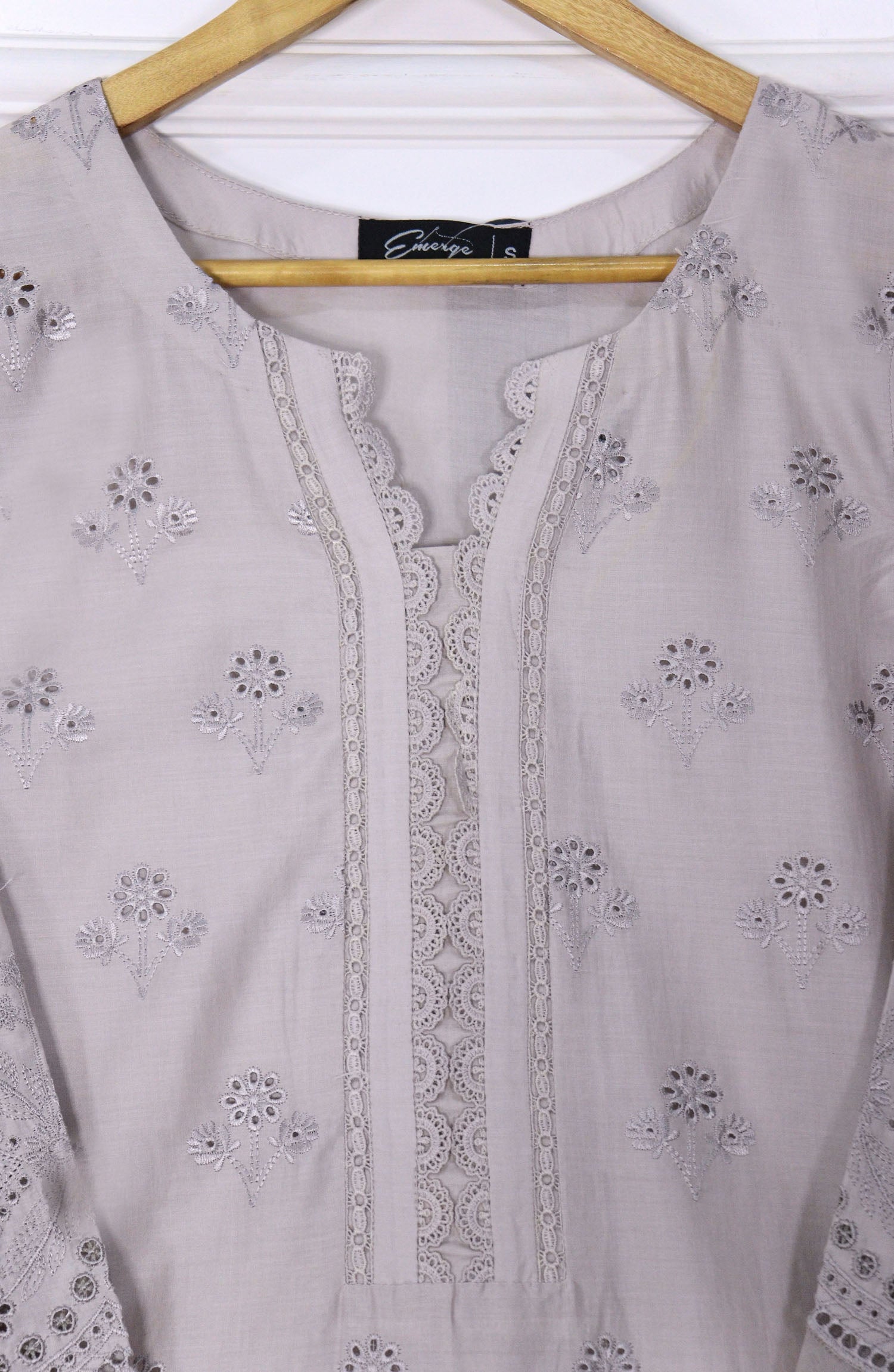 Schiffli Embroidered Fine Lawn stitched shirt with embellishments
