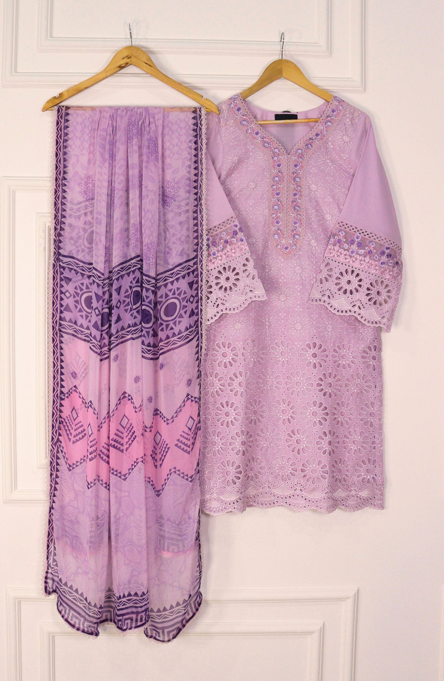 Schiffli Embroidered Fine Lawn shirt with embellishments