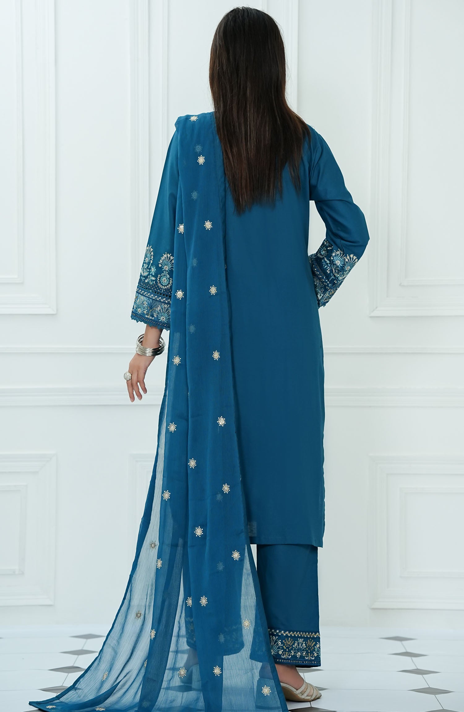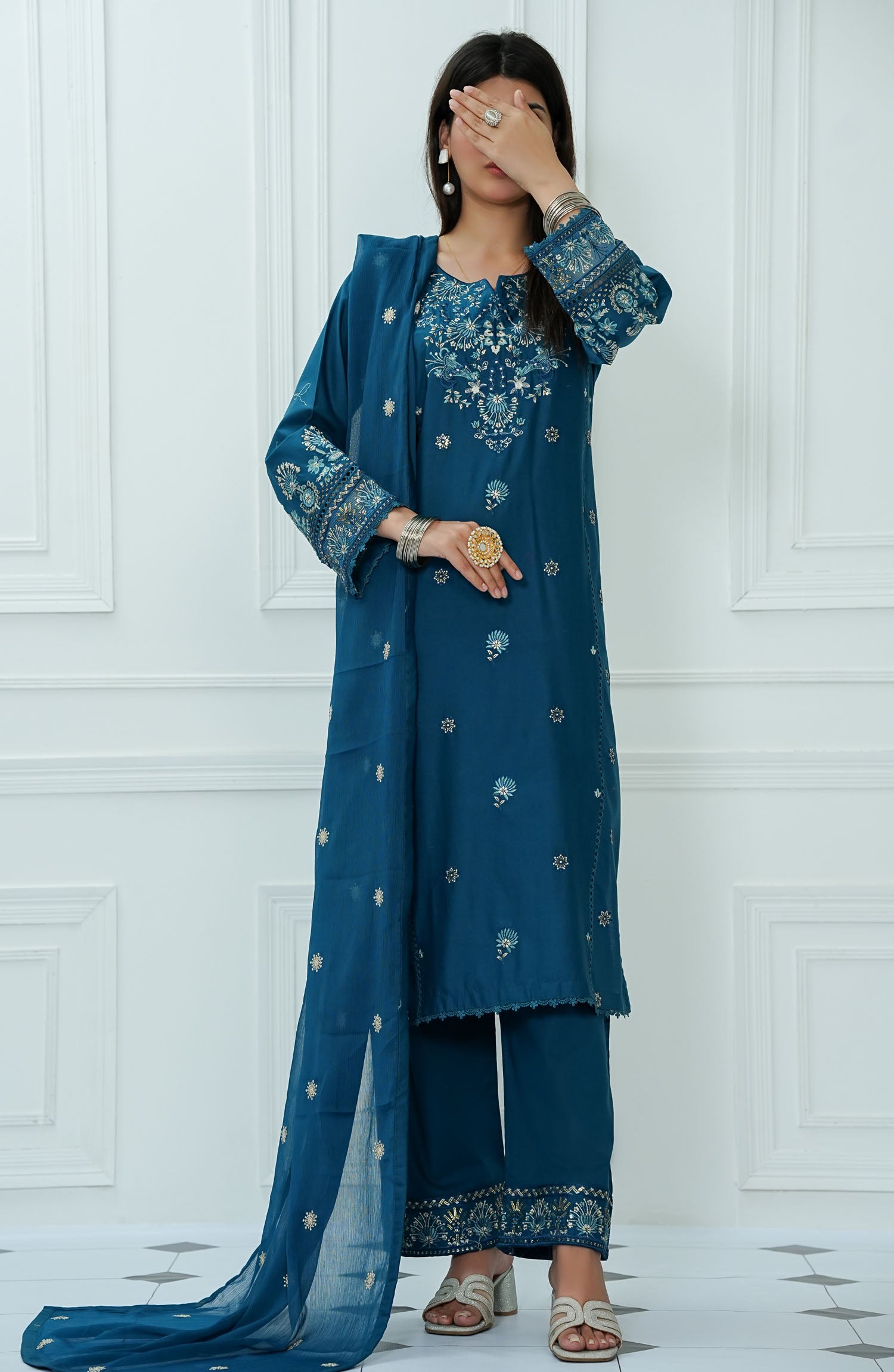 The standard style comes as a long-sleeved kameez with dupatta and trouser/shawlar.