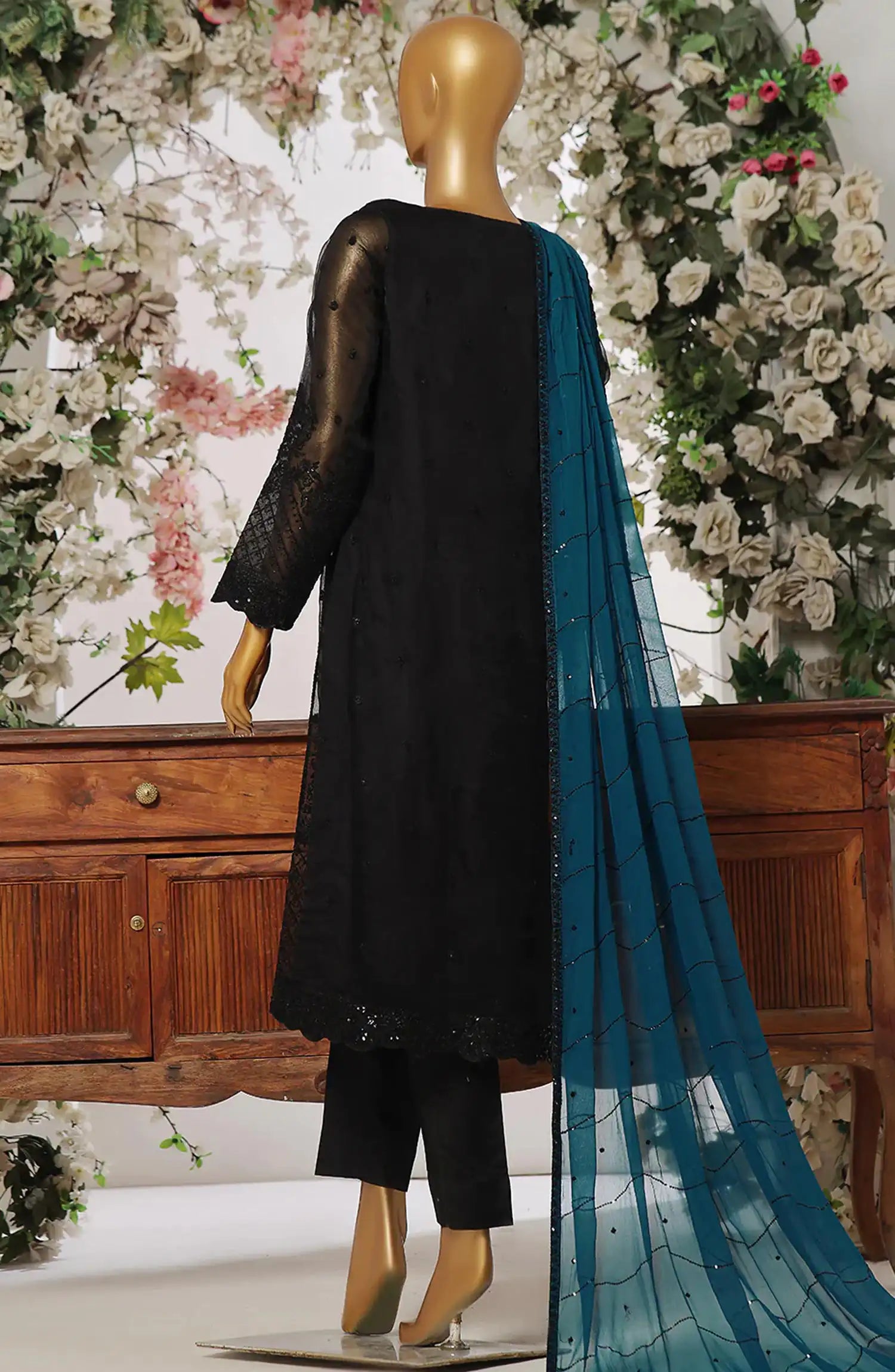 Mahpara by Sadabahar Embroidered Net Stitched 3 Piece Suit - Design-01 - SBD25PRLM - Black - Luxury Festive Collection