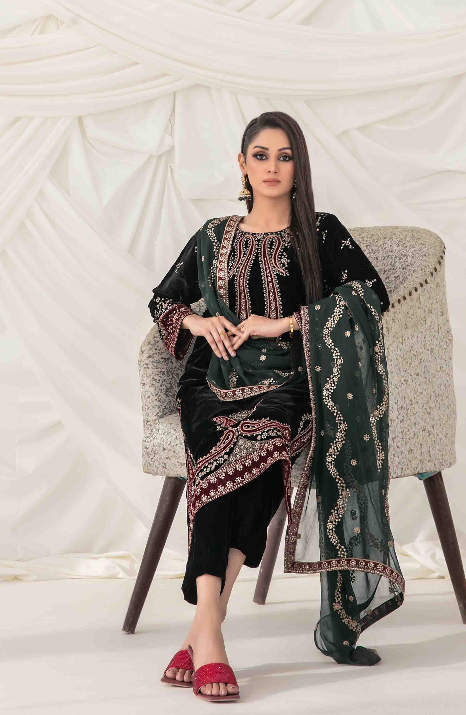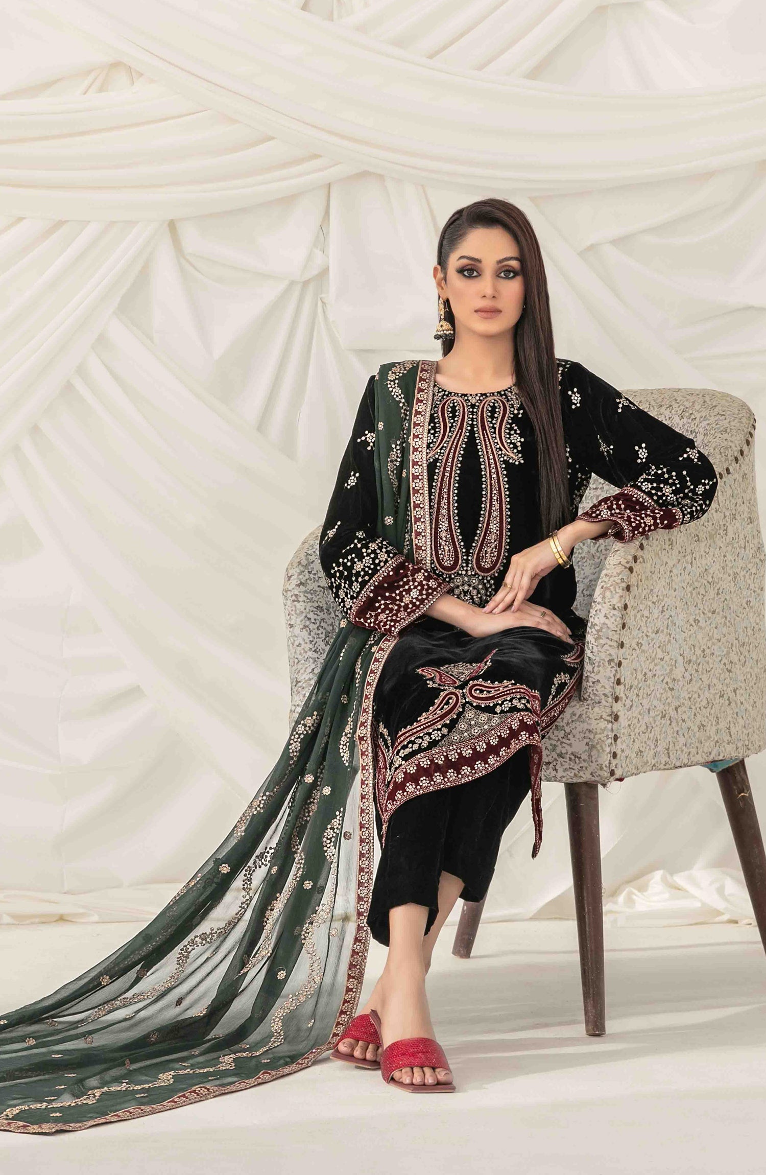 Unstitched Fancy Heavy Embroidered Velvet Shirt